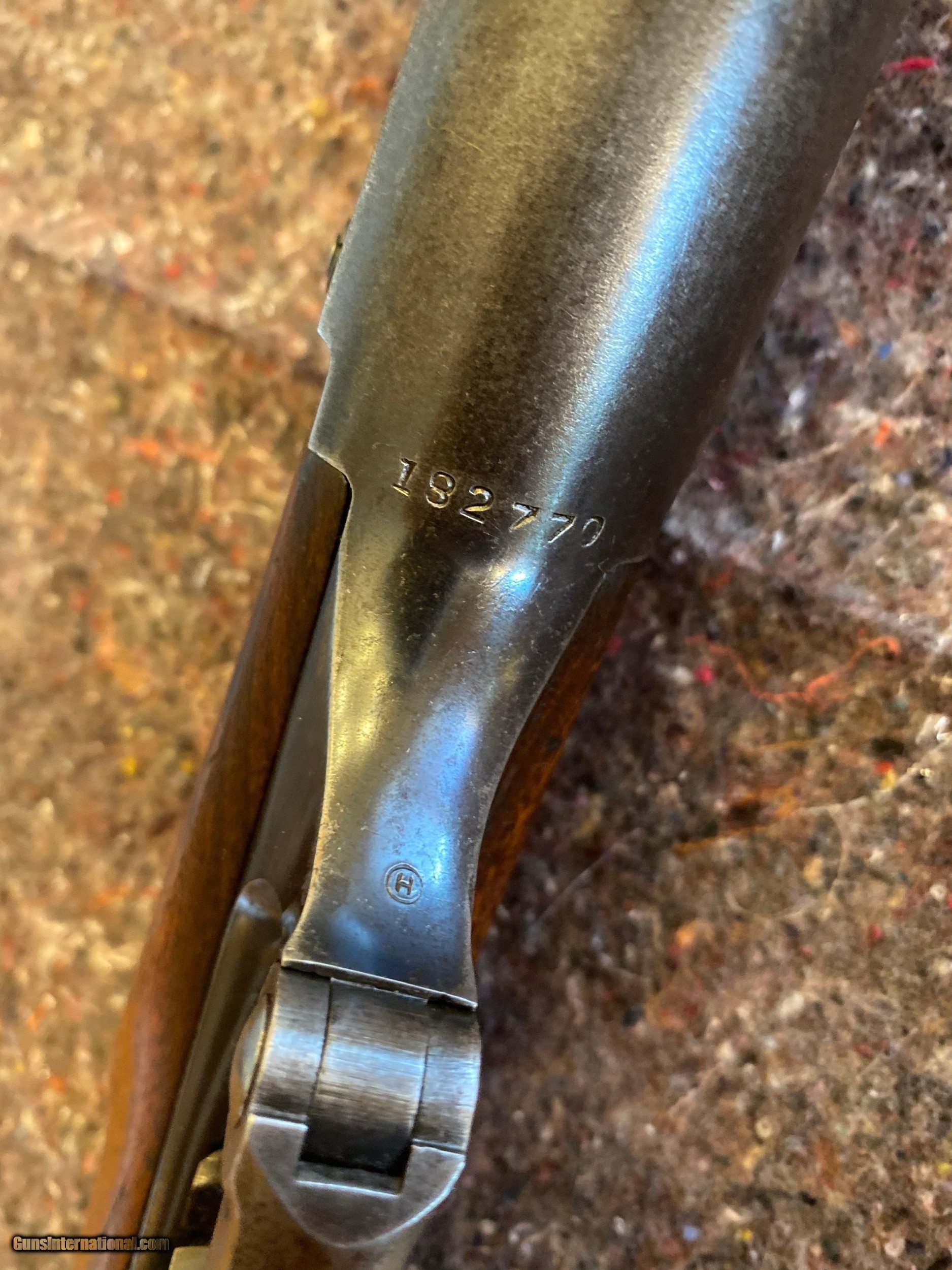 Description: For sale is a 1915 Savage Model 99 in 250-300. 182770 serial number. Barrel marked with the two line address/patent date marking ahead of rear sight and two line hi-pressure steel/model marking and "250-3000 SAVAGE" on the left barrel side. Cocking indicator, upper tang tapped for sight mounting. Fancy checkering on the forearm with a smooth buttstock featuring a hard rubber grip cap and serrated steel buttplate stamped with the Savage Indian logo. SOLD Manufacturer: Savage Arms Co. Model: 1899 Serial Number: 182770 Caliber Info: 250-3000 Manufacture Date: 1915 Item Location: Grand Island, NE |
