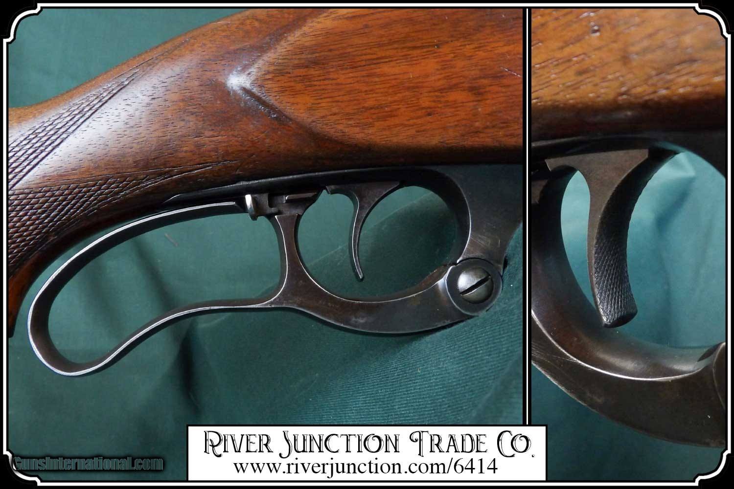 Description: The Savage 99 is a very interesting rifle and many enthusiasts enjoy collecting the Savage 99. Here you will see many features that Savage collectors look for. The Savage Takedown Model are particularly of interest. This is a very early Model 99 Light Weight Take Down Rifle. DOM is 1915. This was the original saddle carbine. It has the brass cartridge counter, and the original front white metal bead sight, and the original rear flat top sporting sight. It has a checkered trigger which feels good. The bore is shiny and perfect. The forearm, butt plate, and stock all have the same serial number. The metal is in good shape with some hunting marks. The stock has hole where the sling swivel was removed. For a 107 year old rifle it is in great shape and would make a fine hunting rifle. I am an FFL and will ship to a FFL or C&R Any questions please ask. Price: $1295.00 Curio/Relic: Yes Rifle Caliber: .250-3000 Savage Manufacturer: Savage Model: 99F Serial Number: 172304 Barrel Length: 22 inches Condition: Good Metal Condition: Good Wood Condition: Fair Bore Condition: Excellent Action: Lever Stock: Walnut Butt Pad: Original Metal LOP: 13 1/2 inches Weight: 6lbs 13oz Sights: Open adjustable rear Manufacture Date: 1915 Extras: Take down Payment: Item, can be ordered on line with a credit card or paypal on our sight. Just Google (riverjunction) and type in the River Junction Trade Co. item number (6414) in the search box. Before you checkout you will see shipping cost and total. OR If you prefer: Pay by cash, postal money order, cashiers check, personal & business checks. We wait for checks to clear. We always answer questions and entertain offers. Have questions? Call me 563-880-4588. Jim SOLD |