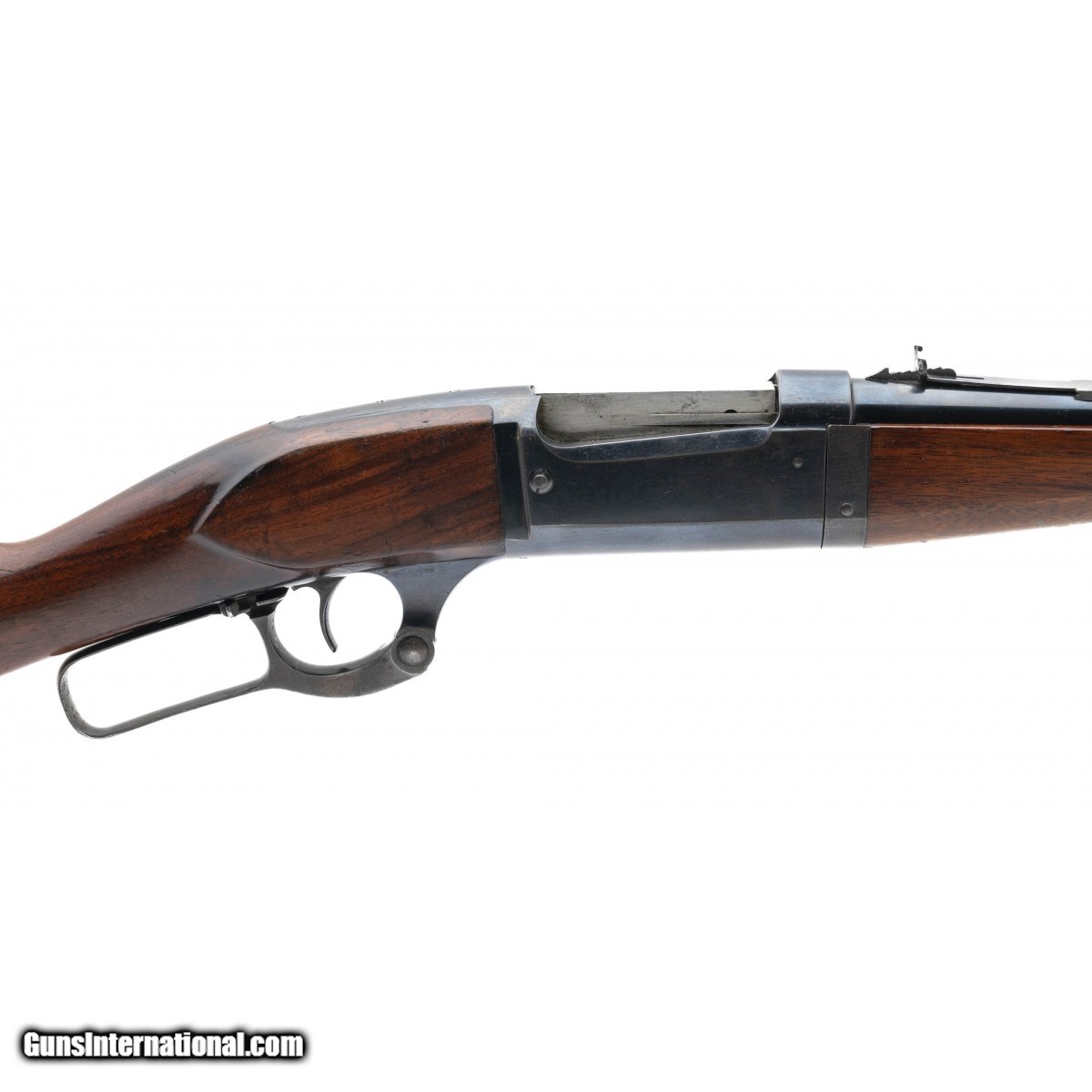 Description: " SN:133320. Manufactured circa 1899, 30-30 Winchester with a 18"" barrel. Bore is in excellent condition. Pre-war lever action rifle with blued receiver-barrel, adjustable rear sight and walnut stock. Overall condition is very good. SOLD |