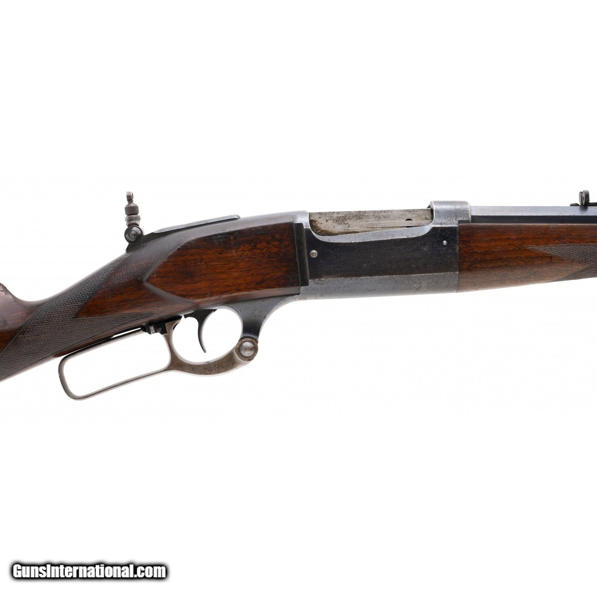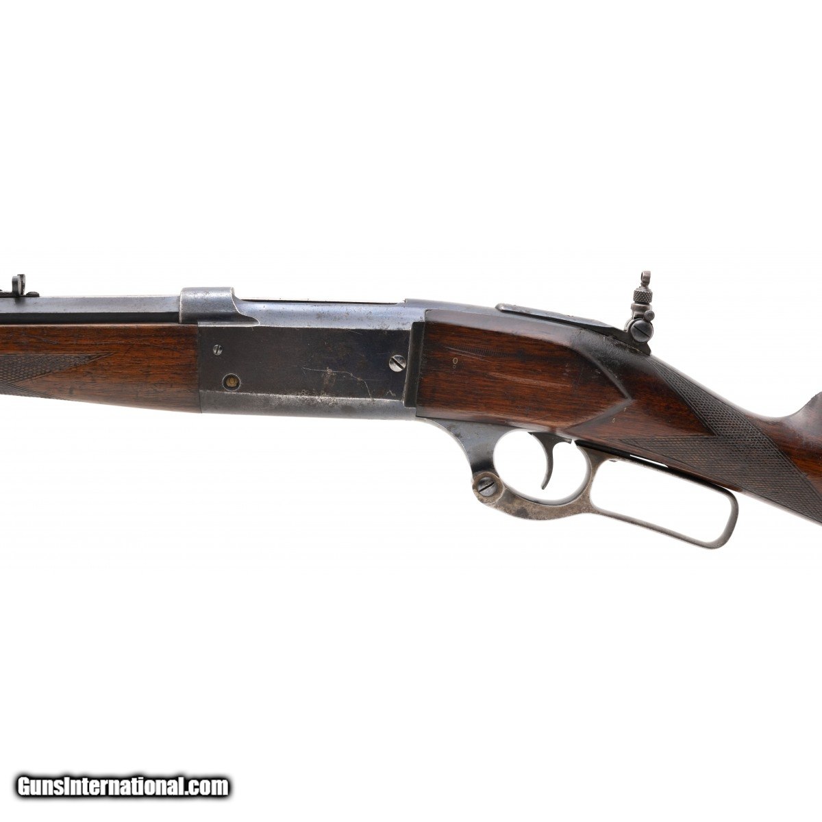 Description: " SN:84.455. Manufactured in 1909. Barrel is 26"". Rear tang peep sight. Bore is excellent. Butt pad is a later replacement. Fair overall condition. Reasonably priced. SOLD |
