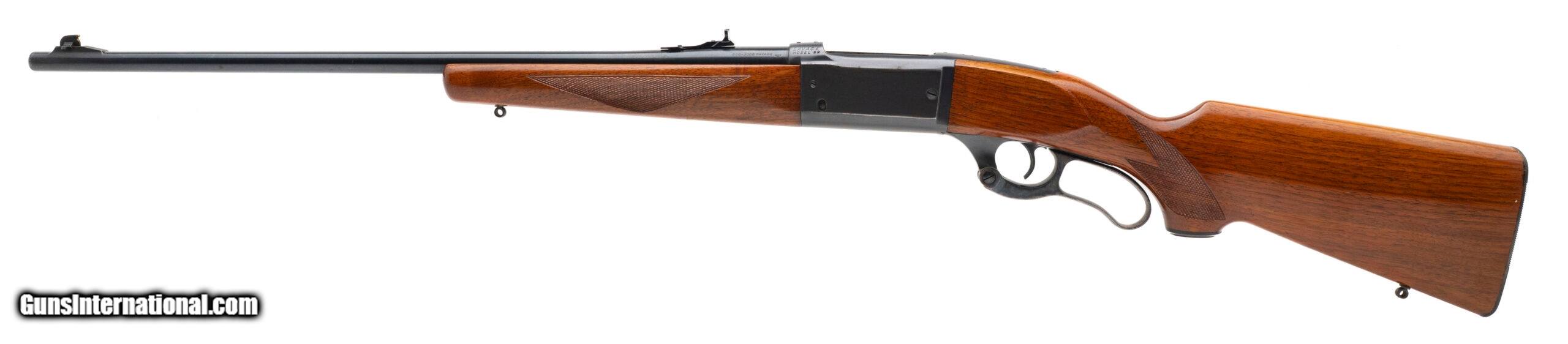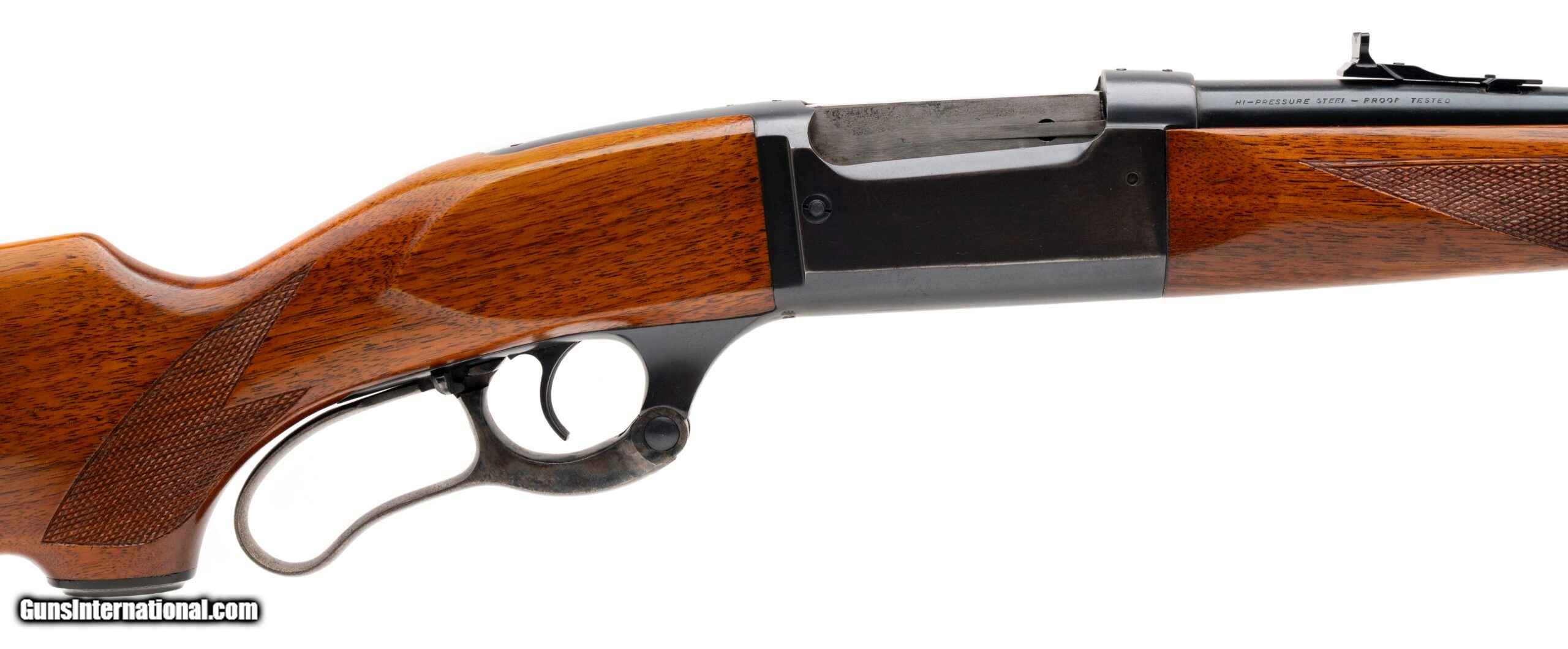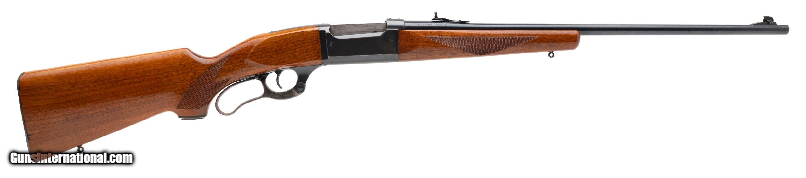 Description: "SN: 602124. 1950s vintage .250 Savage with a 24"" barrel. Bore is excellent. Deluxe lever action rifle with checkered walnut stock and cartridge counter. The stock has been refinished with a gloss varnish, looks great. Overall very good condition. Very desirable .250 Savage caliber. SOLD |