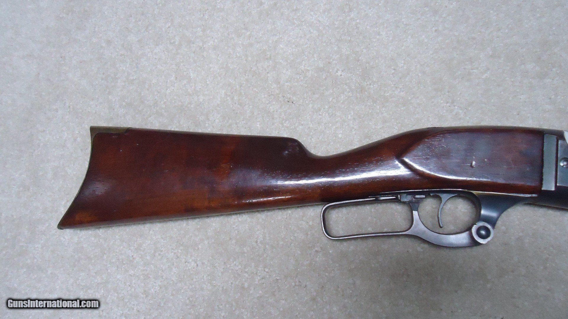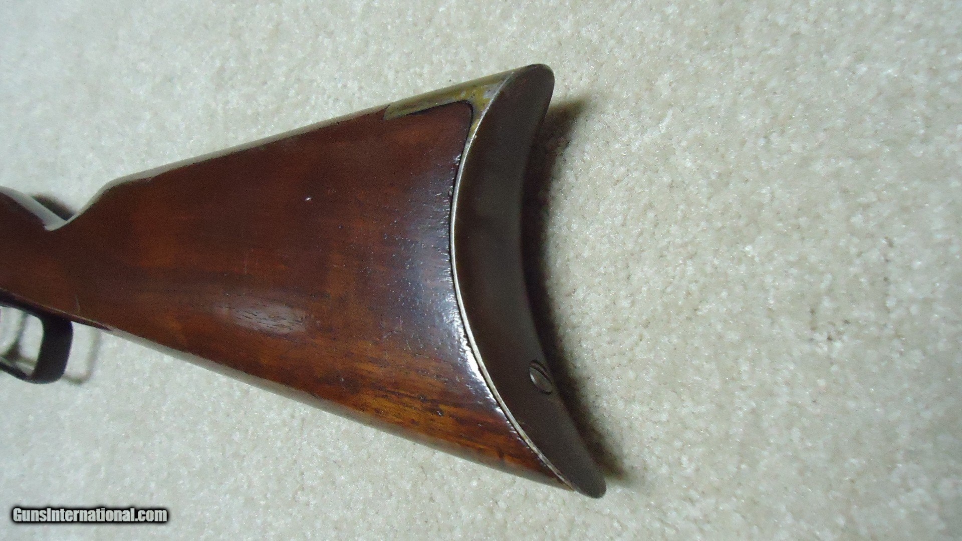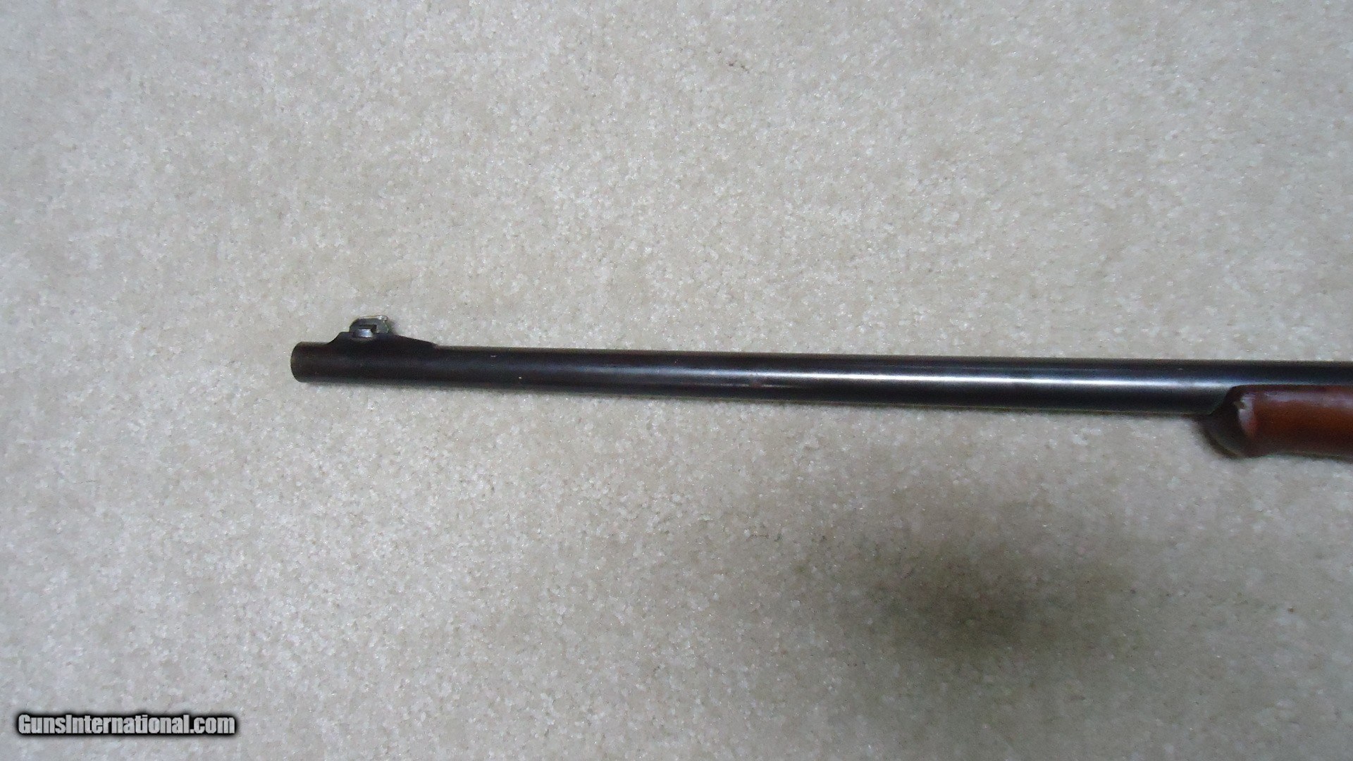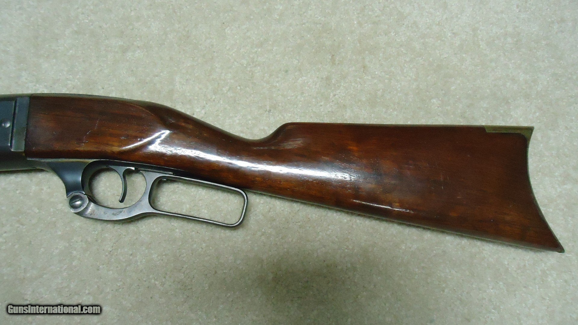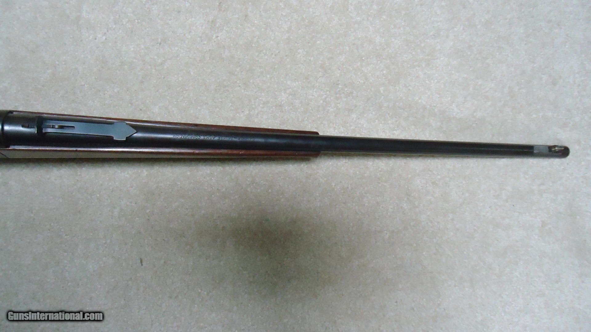 Description: GREAT DEPRESSION ERA SAVAGE MODEL 99 IN DESIRABLE .30-30 CALIBER WITH STRAIGHT STOCK, CRESCENT BUTT PLATE AND CORRECT 24" BARREL, #325XXX, MADE 1930. An attractive example that still retains about all the blue on the receiver that is a little dulled from age, but all there. Also shows some light case color on the lever. Fine barrel blue, that also shows a little age with exc. markings, buckhorn rear sight with correct blade/bead front sight in ramp. Fine forend and butt stock with one very small chip and short hairline crack at the upper tang- typical as the stock is secured to the receiver with a long cross bolt under the butt plate that is tightened at the factory. Normal temperature and humidity changes cause the wood to swell/shrink and eventually these chips and cracks form on almost all M-99s. No extra holes, tight action and bright excellent bore. Some stock finish was added as a preservative at some time without sanding or refinishing etc. which comes off very easily with #0000 steel wool. Has the brass rotor magazine with little window on the left side of the receiver with brass cartridge counter. This one must have been in storage for a long time as it still shows dried grease on the top of the butt plate etc. Good, solid example from a hard time in U.S. history. SOLD Rifle Caliber: .30-30 Winchester Manufacturer: SAVAGE Model: MOD. 99 Serial Number: 325XXX Barrel Length: 24 Condition: FINE+ Bore Condition: EXCELLENT |