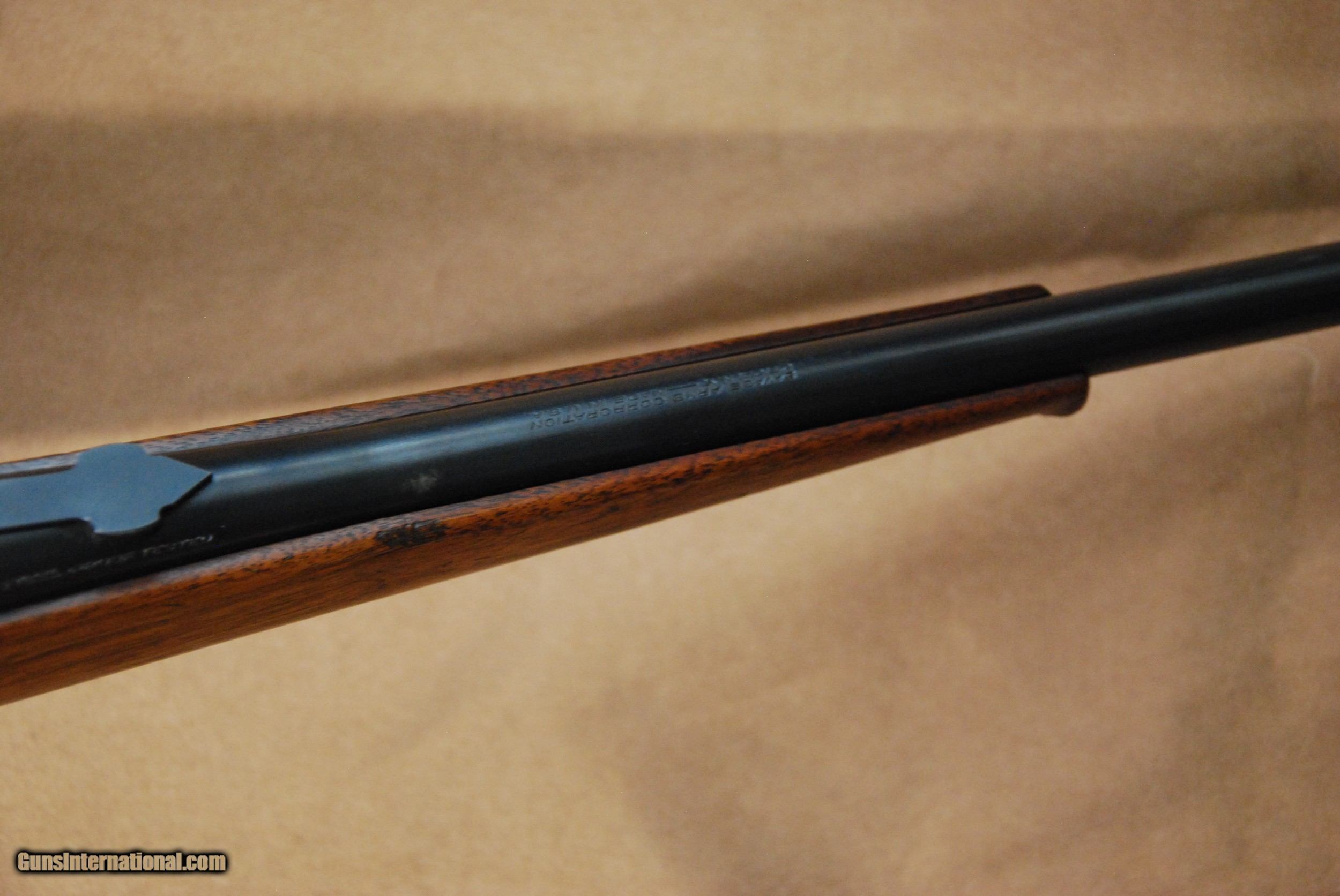 Description: **This rifle is sold pending funds** Another hard to find firearm from my private collection, a pre-war 99 EG in 30-30. This is the earlier uncheckered version but is very near the serial number cutoff at 385,xxx. It has a 22" barrel, uncheckered walnut stocks, no extra holes in metal or wood, original finishes. The buttplate looks original as well, although I've never disassembled the firearm to check all the numbers. I could for an interested buyer. The buttstock is in great condition, the forearm shows a little more handling, including a small chip missing at the schnable flare. Overall, a hard to find variant in 90% or so condition, nothing to be ashamed of that's for sure. *If a person wanted to use this rifle with a scope, I have a Lightfoot mount available (for extra $) that allows scope mounting using existing tang site holes and dovetail for the front sight. I also have several tang sights available. Payment is USPS money orders ONLY. Shipping is usps insured $55 to the lower 48. SOLD |