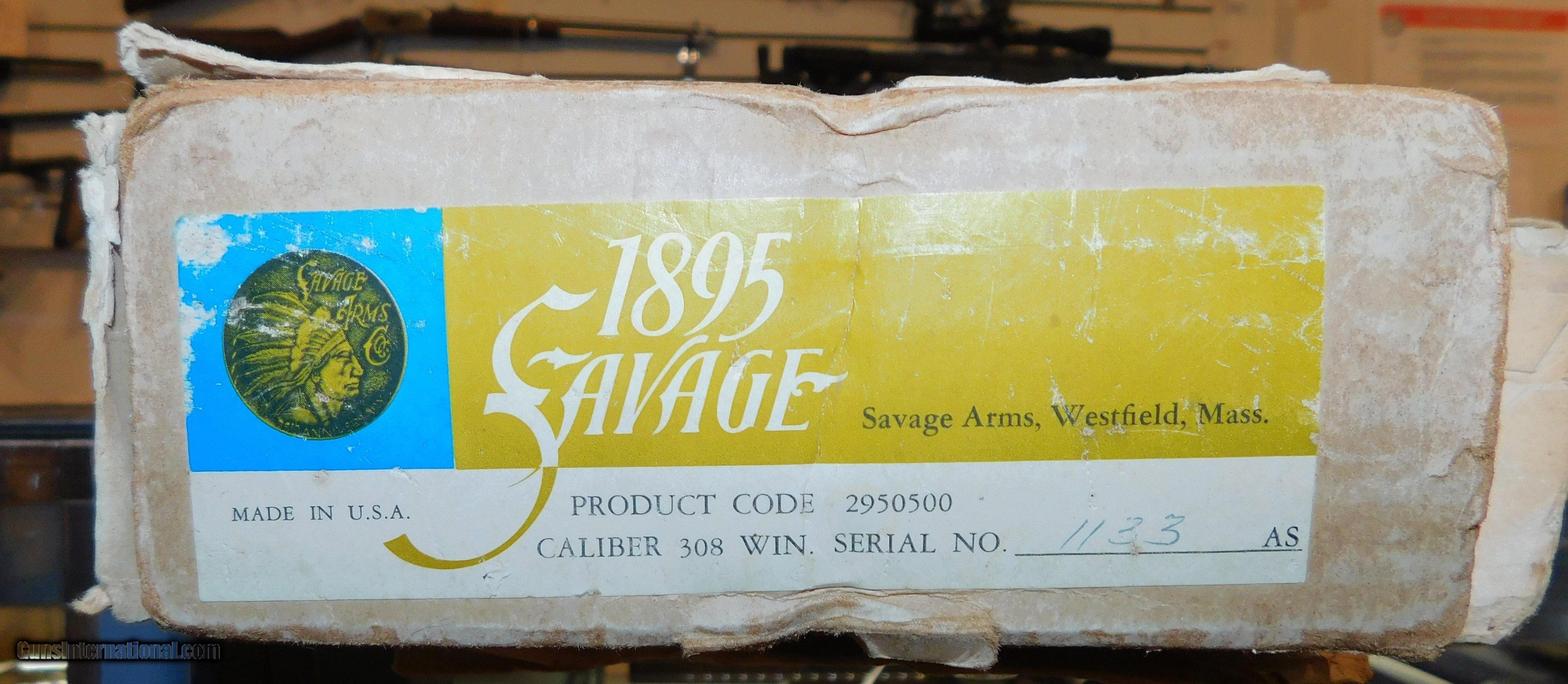 Description: SAVAGE 1895 ANNIVERSARY IN .308 CAL., WITH 24" BARREL. COLOR BLUE. CONDITION NEW IN BOX. SERIAL NUMBER 1133AS. SAVAGE MODEL 1895 (BUILT IN WESTFIELD MASSACHUSETTS) 75 TH ANNIVERSARY EDITION, IN .308 CALIBER, ONE OF THE LAST WITH SHELL COUNTER, ENGRAVED RECEIVER, OCTAGON BARREL, MEDALION IN WALNUT STOCK, TATTERED BOX, NEW IN BOX OVERALL CONDITION, OUR STOCK # D6154 SOLD |