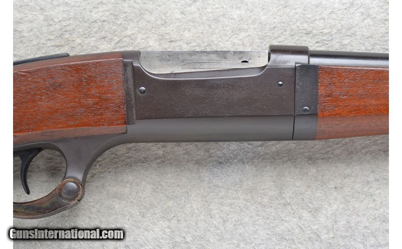 Description: This Savage Model 1899 is a right hand lever action rifle in .25-35 Win. Cal. It has a 26 inch barrel. A ring front sight, folding notch middle sight and an adjustable aperture rear sight. It has a smooth walnut straight grip butt stock and a smooth grip walnut forearm. The lever is case colored. The gun has been reblued. S/N 78.447 .25-35 Winchester SOLD Chambers: Lever Action internal rotary magazine. Metal Condition: Good. Has been reblued. Wood Condition: Good with some handling marks. Bore Condition: Fair. Very minor pitting. Barrels: 26 inch. Stock Dimensions: LOP 13 inches. Fore End: Smooth grip walnut. The black inset is missing in the tip. Butt Pad: Smooth steel crescent. Weight: 8 lb. 5 oz. Sights: Circular front. Folding notch middle. Adjustable aperture rear. Item Location: Richfield, WI |