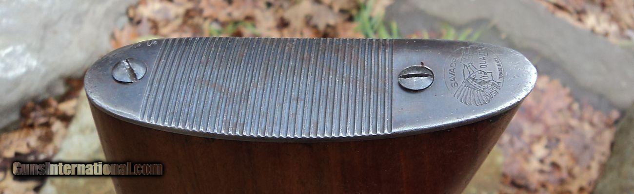 Description: *** SOLD *** SOLD *** 1918 Savage Model 1899 250-3000 caliber (serial # 203175) with 22" tapered lightweight take-down barrel with a shiny bore, made from 1914 to 1921. This 100 year old Savage remains in amazing shape with all matching serial numbered parts. It does have a 100 years worth of hunting and handling marks, but still not bad at all for it's age. It also has the full thread take-down barrel, unlike the quarter turn interrupted thread of the introduction version. This is the predecessor to the Model G Deluxe which was made from 1922 to 1941 in the 238,000 to 407,000 serial number range. If you would like to hunt with one of the early Savage classics, take a look at this rifle. $50 S&H to most of the lower 48. Eight far west states at $60 S&H. Post office money orders for payment. No warranty stated or implied by the seller. Consignment gun-no return. Lay-a-way is available! SOLD Curio/Relic: Yes Manufacturer: Savage Model: 1899 Serial Number: 203175 Caliber Info: 250-3000 Metal Condition: good Wood Condition: good Bore Condition: good Barrel Type: lightweight take-down Action: lever Extras: good shape, being 100 years old |
