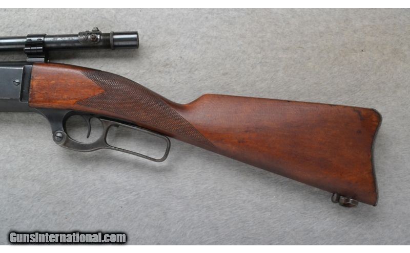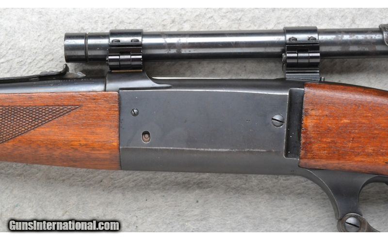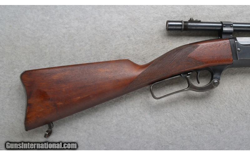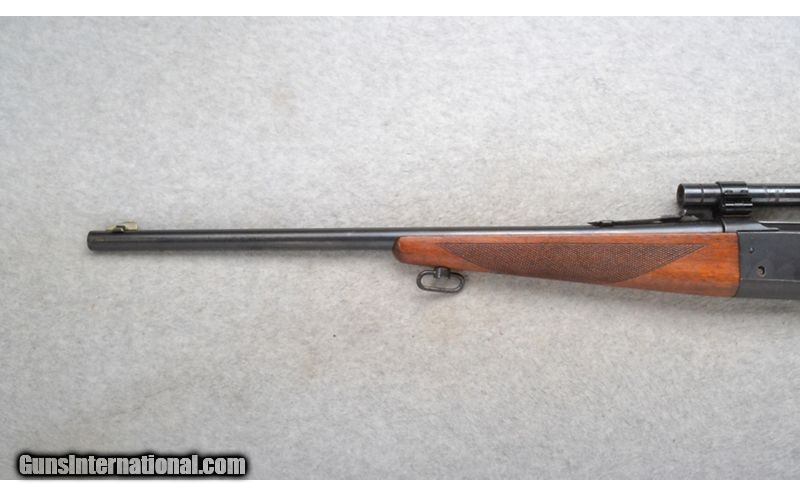 Description: This Savage Model 1899 is a right hand lever action repeating rifle in .303 Savage Cal. It has a 20 inch barrel. A blade front sight and an adjustable notch middle sight. It is outfitted with a (cheap) Weaver scope. The butt stock is a checkered grip walnut straight grip. The forearm is a checkered grip walnut. Serial Number 266442 (1924). .303 Savage SOLD Chambers: 4 shot internal magazine. Metal Condition: Good. Has some blue wear spots. Wood Condition: Good. Has some light handling marks and appears to have been refinished. Bore Condition: Very Good. Barrels: 20 inch. Stock Dimensions: LOP 13 inches. Fore End: Checkered grip walnut. Butt Pad: Smooth curved steel. Weight: 7 lb. 4 oz. Sights: Blade front. Adjustable notch middle. Weaver Scope. Item Location: Richfield, WI |