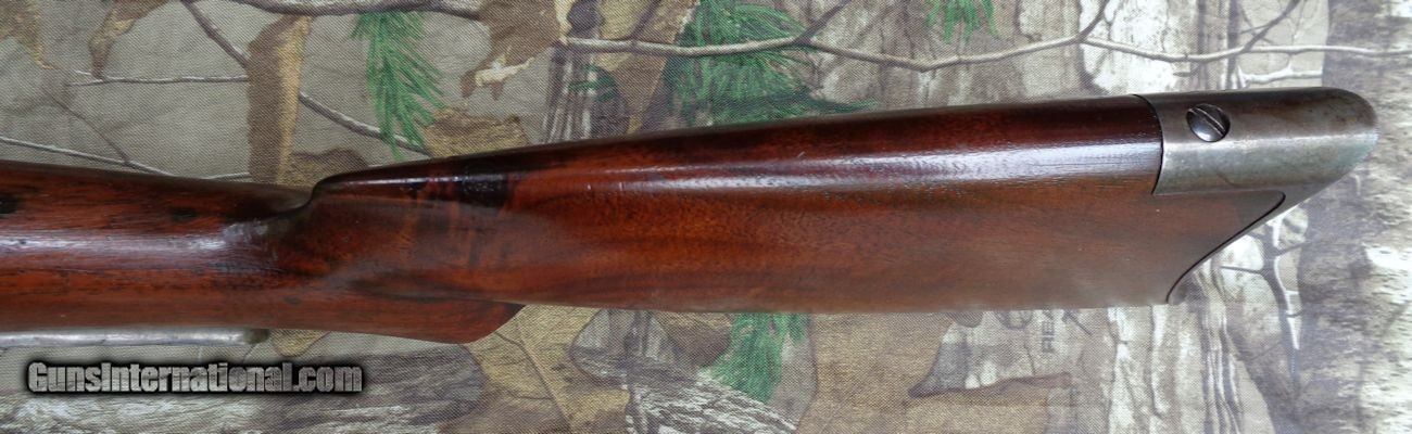 Description: *** SOLD *** SOLD *** 1905 Savage 1899-A Short Rifle (serial # 49012) in the desirable 32-40 Winchester caliber with 22" round barrel, long beautifully shaped 11 1/8" schnabel forearm, optional perch belly pistol grip stock, steel rifle butt plate, the early bolt cocking indicator and early square back bolt with matching serial numbers on all parts. to make this old classic yours, for a hunt this fall or take it to your next cowboy action shoot. This Savage 1899A is in very good condition with a good bore. $50 S&H to most of the lower 48. Eight far west states at $60 S&H. Post office money orders preferred for payment, checks will take 2 or 3 days to clear. No warranty stated or implied by the seller. Consignment gun-no return. Layaway is available ! SOLD Curio/Relic: Yes Rifle Caliber: .32-40 Winchester Manufacturer: Savage Model: 1899-A Short Rifle Serial Number: 49012 Metal Condition: very good Wood Condition: good Bore Condition: good Action: lever Manufacture Date: 1905 Extras: desirable 32-40 |