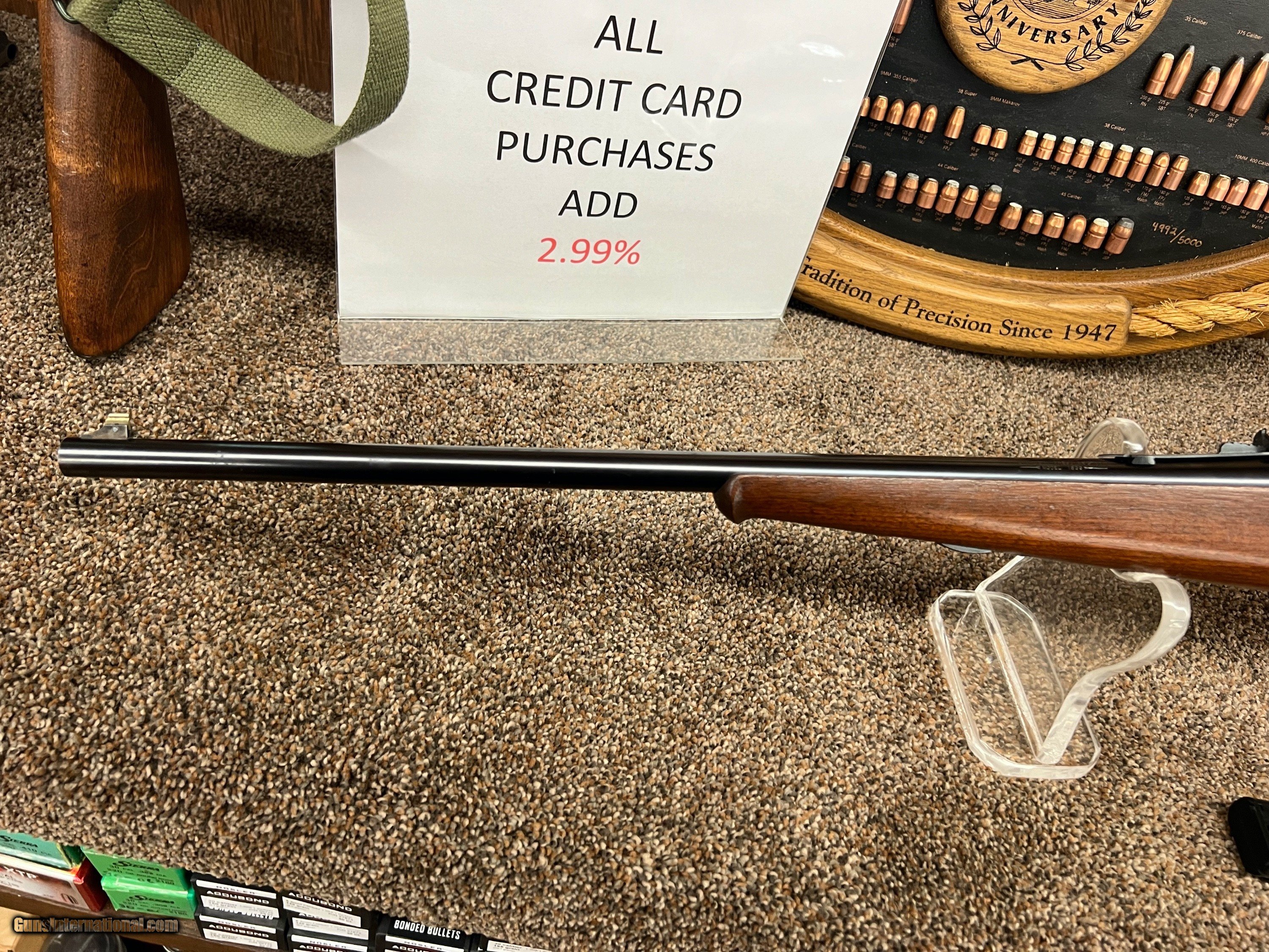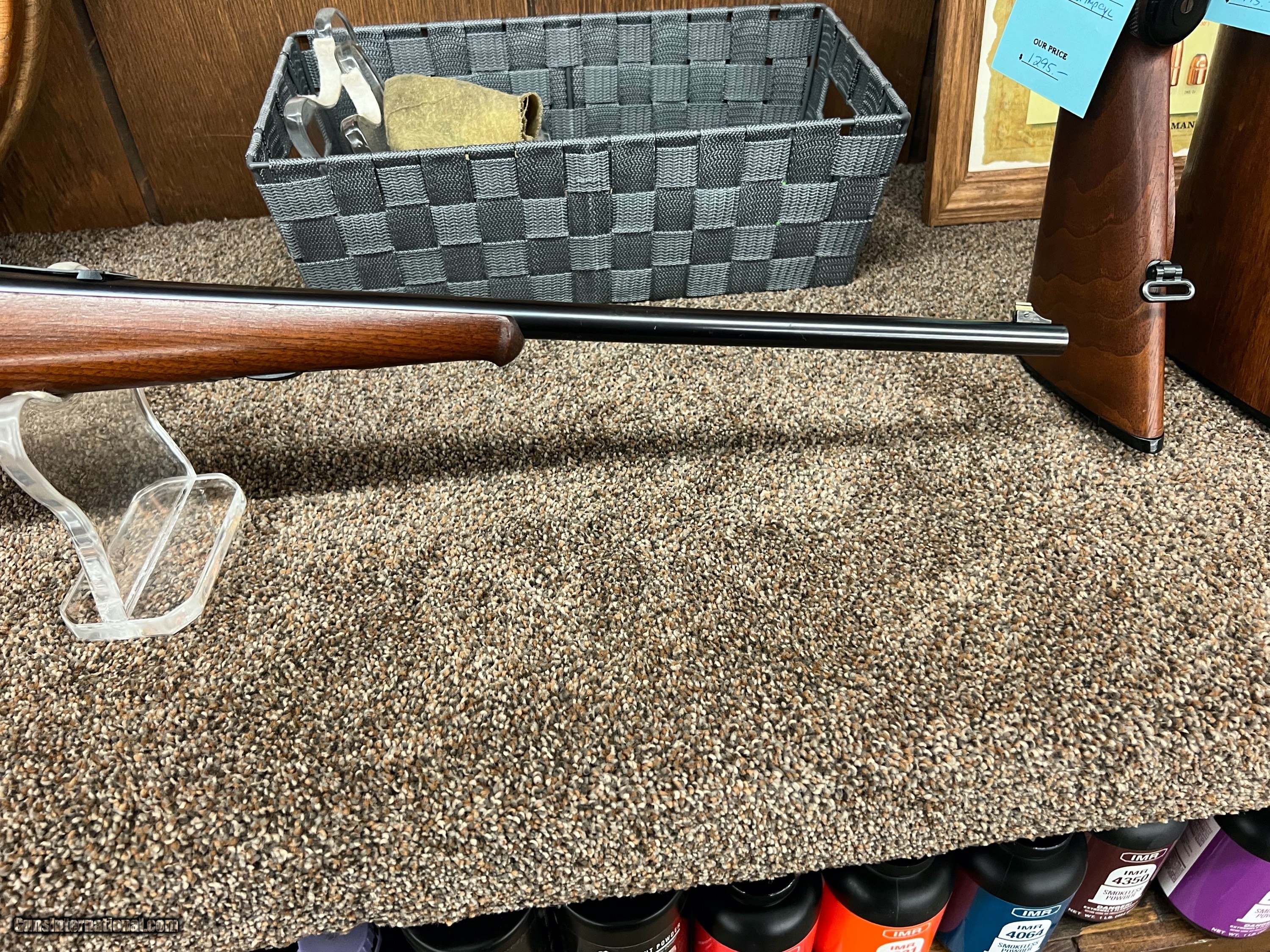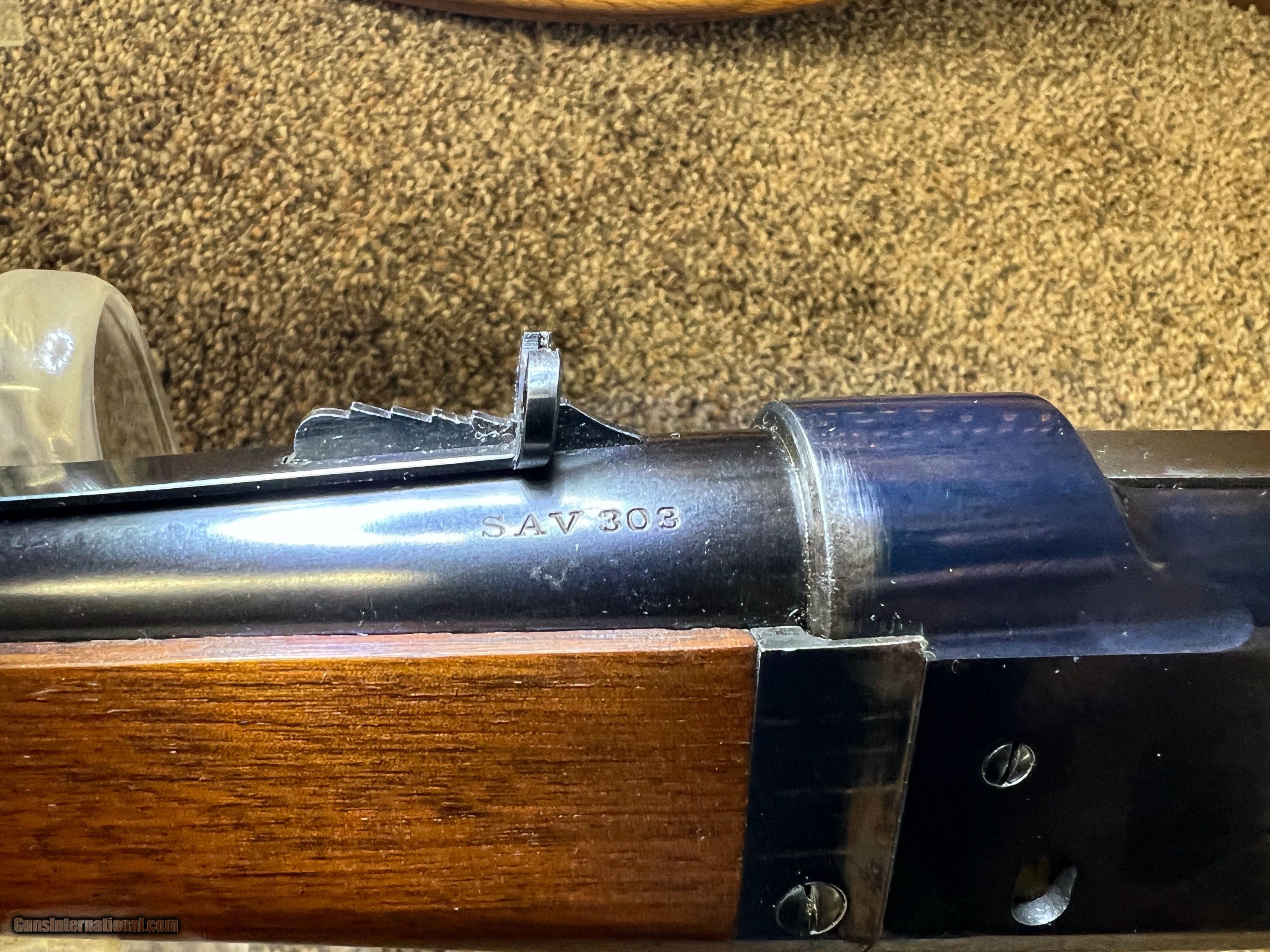 Description: REDUCED TO $2695.00 Here's a really nice high condtion Savage 1899 Takedown 303 Savage, exc bore, 20" barrel, open sighrs, straight stock, plastic butt, brass rotor, lever safety, still has case hardening on the lever, takedown has some light wear as pictured, serial #113xxx, would make a great addition to any 99 collection! 2.99% credit card fee, 50.00 shipping, PA residents add 6% sales tax. SOLD Rifle Caliber: .303 Savage |