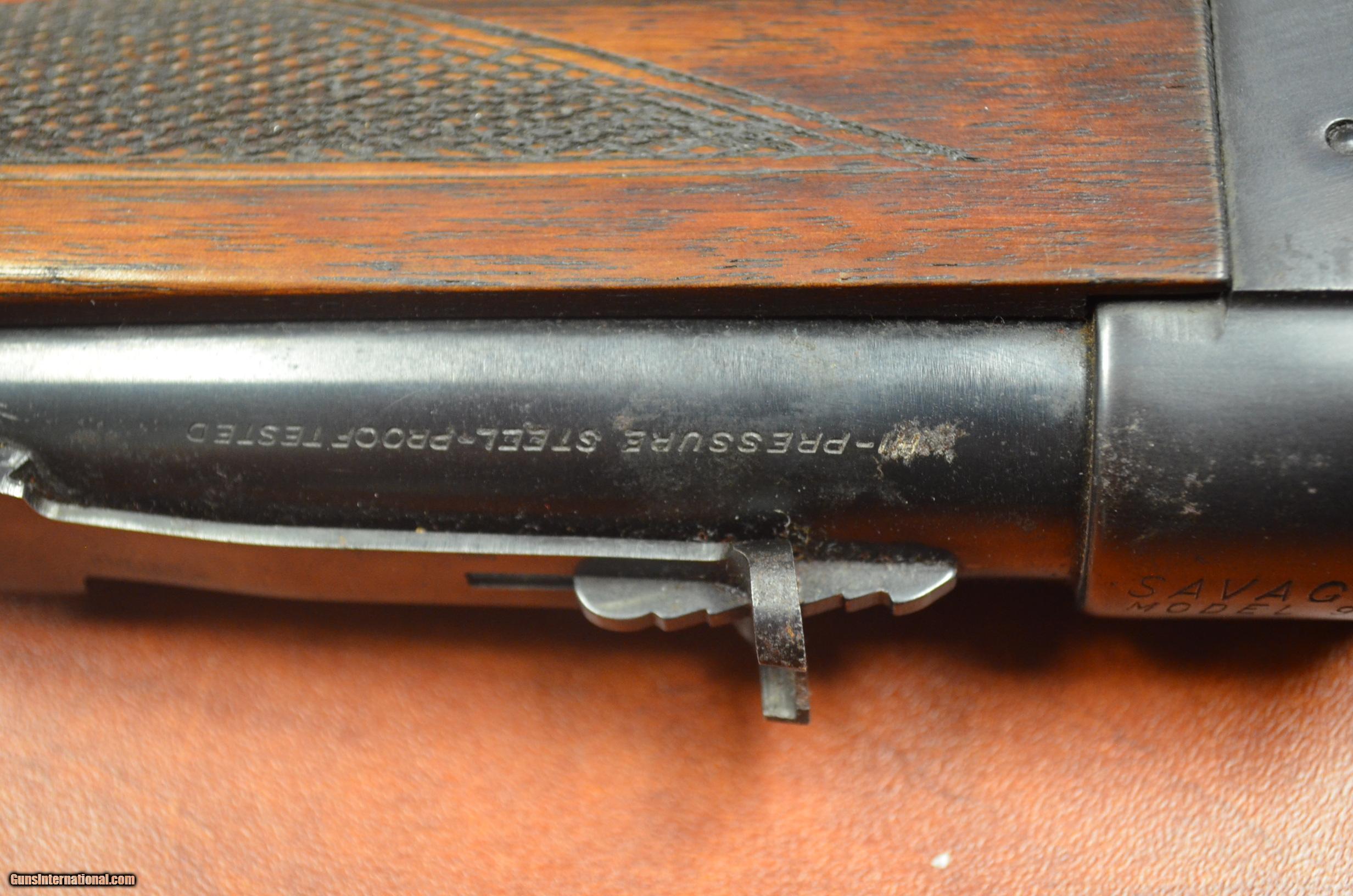 Description: Savage 99 300 Savage 22” barrel- this rifle is a Savage Model 99 chambered in 300 Savage and made in 1950. Rifle has original finish and checkered wood stock. The receiver has some pitting from age and stock has wear from use. Rifle has adjustable rear sight and bullet counter on side. Rifle has good bore and grooves. Please call and ask for Tom in sales at 610.258.5500 Tuesday through Friday 10am-5pm. All guns subject to sale in our retail location. SOLD Curio/Relic: Yes Manufacturer: Savage Model: 99 Caliber Info: 300 Savage Bore: good Manufacture Date: 1950 |