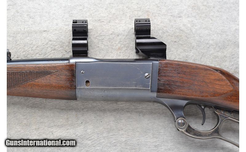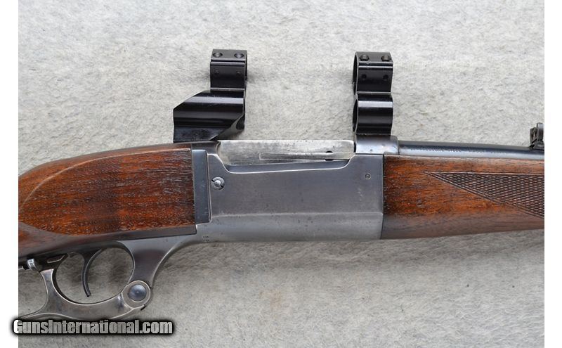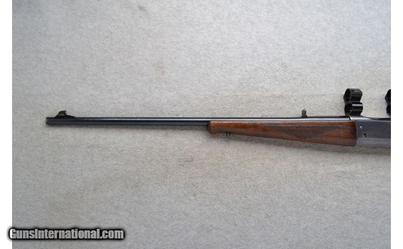 Description: This Savage Model 99 is a right hand lever action repeating rifle in .300 Savage Cal. It has a 24 inch barrel. A blade front sight and folding adjustable notch middle sight. It has see through scope rings attached. The butt stock is a checkered grip walnut pistol grip with a black cap and a small compass inset on the top near the butt plate. The forearm is a checkered grip walnut. S/N 656329. .300 Savage SOLD Chambers: Lever Action with an internal rotary magazine. Metal Condition: "Good. A little blue wear, light freckling and minor handling marks. Wood Condition: Very good with some minor handling marks. Bore Condition: Very good. Barrels: 24 inch. Stock Dimensions: LOP13 1/8 inches. Fore End: Checkered grip walnut. Butt Pad: Grooved aluminum plate. Weight: 7 lb. 13 oz. Sights: Raised blade front. Folding adjustable notch middle. See through scope rings attached. Item Location: Richfield, WI |