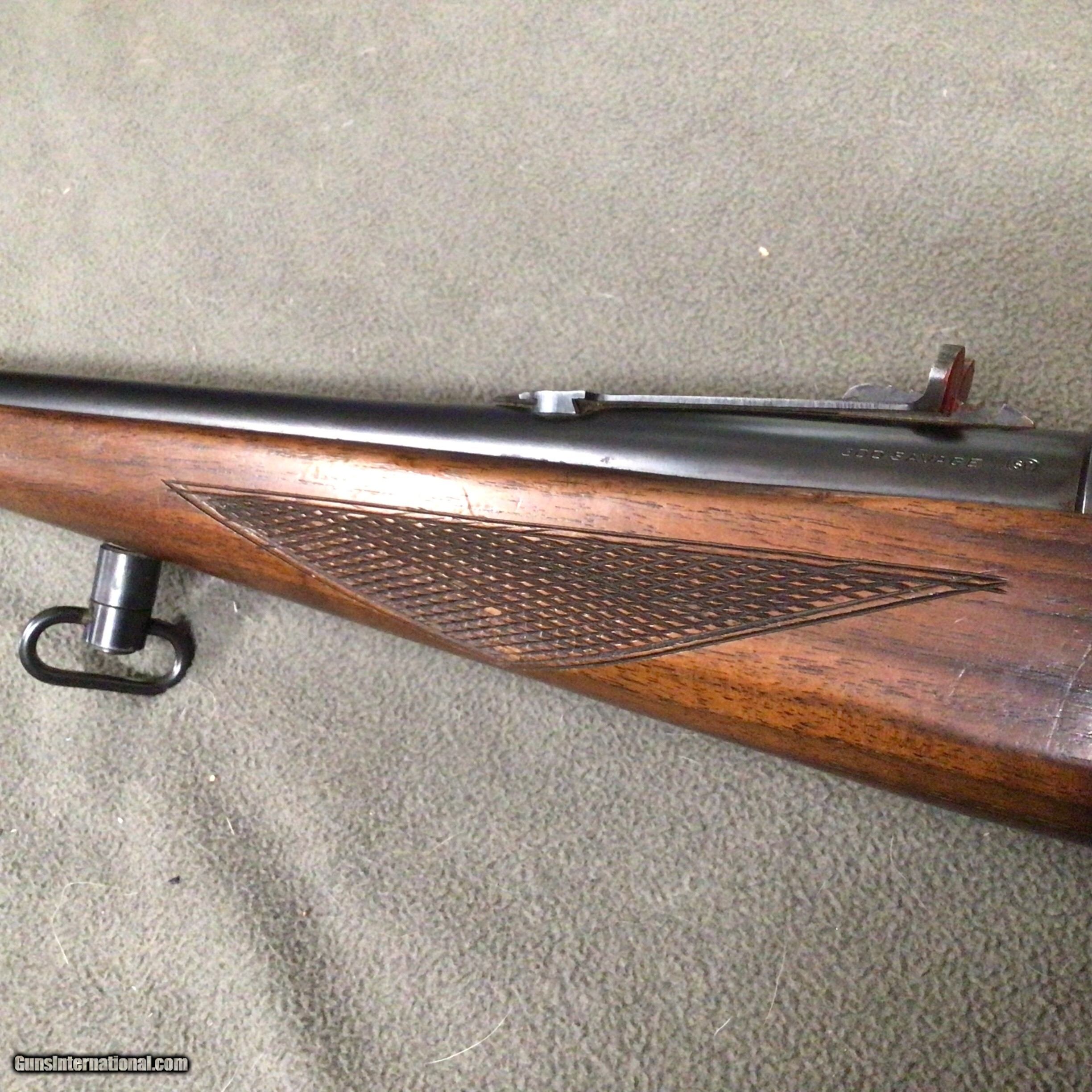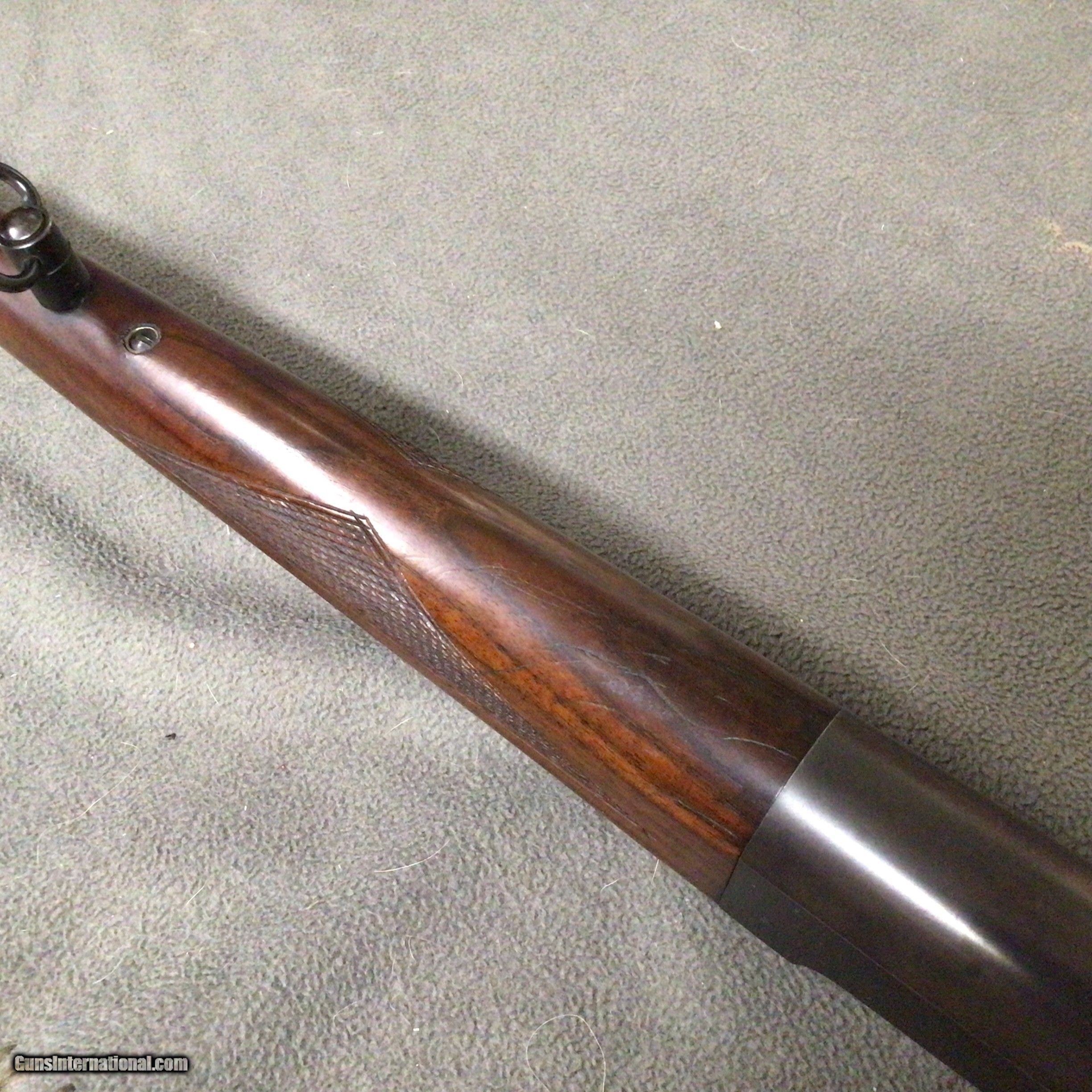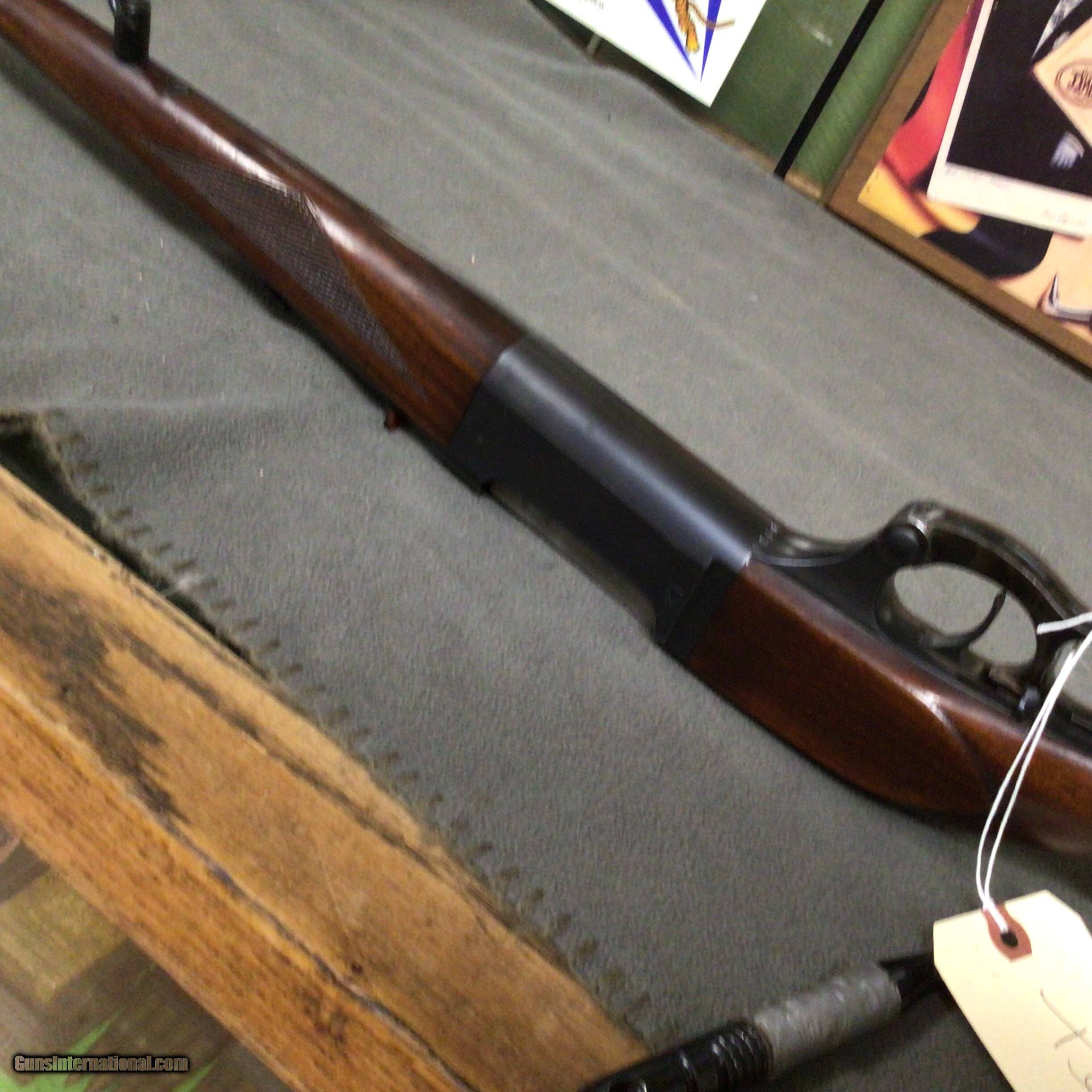 Description: For sale we have a Savage 99 in 300 Savage. Serial number range 415XXX. This 99 is in great condition with plenty of case coloring on the lever. The bluing is nice and the wood has some fine surface scratches. The checkering is still sharp, has brass counter and is a 1941 gun. The butt plate does not match the gun but it fits nice. The only thing wrong with this gun is that someone put these godawful swivels on it and red fingernail polish on the rear sight. The gun is not drilled and tapped. The bore is like new, the guns hasn't been fired very much at all. Any questions give us a call at 412-554-7891 SOLD |