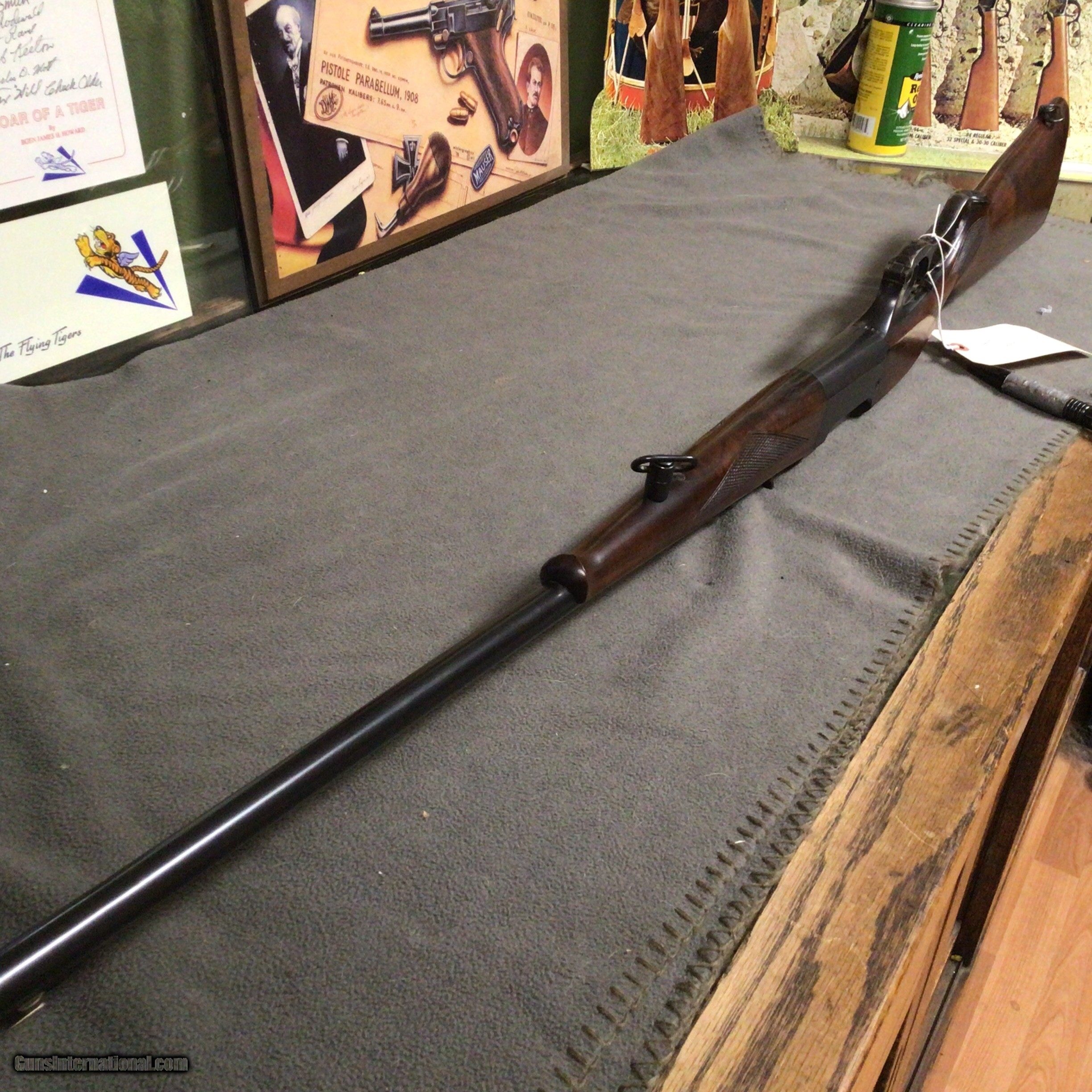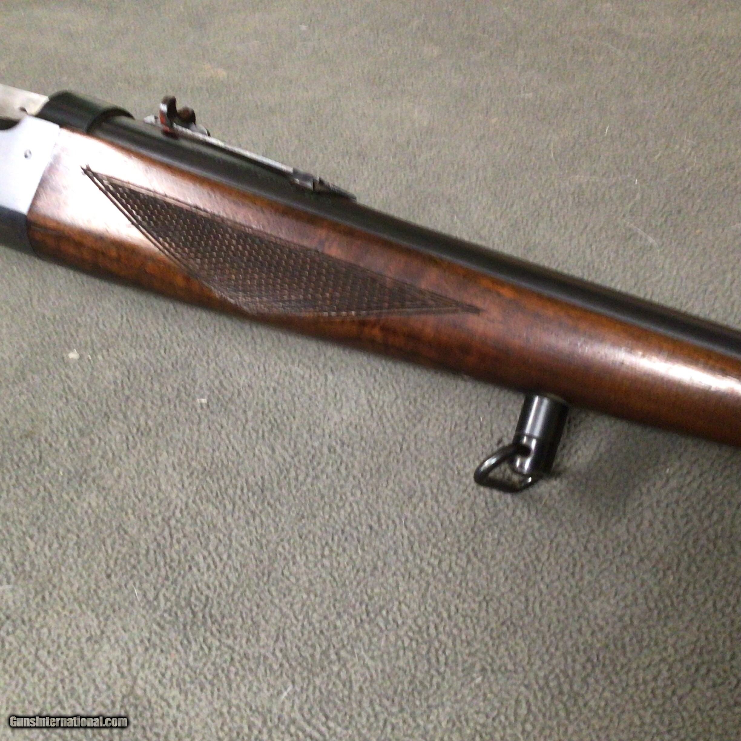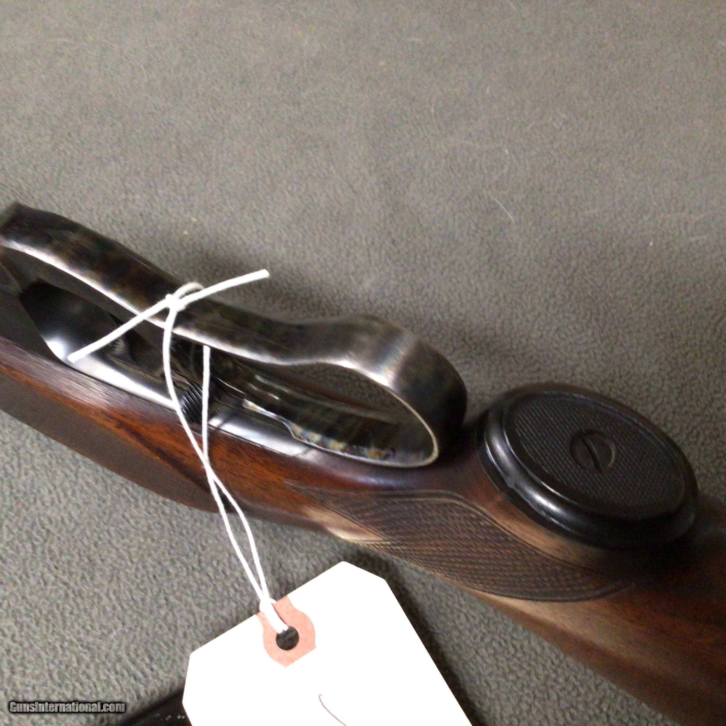 Description: For sale we have a Savage 99 in 300 Savage. Serial number range 415XXX. This 99 is in great condition with plenty of case coloring on the lever. The bluing is nice and the wood has some fine surface scratches. The checkering is still sharp, has brass counter and is a 1941 gun. The butt plate does not match the gun but it fits nice. The only thing wrong with this gun is that someone put these godawful swivels on it and red fingernail polish on the rear sight. The gun is not drilled and tapped. The bore is like new, the guns hasn't been fired very much at all. Any questions give us a call at 412-554-7891 SOLD |