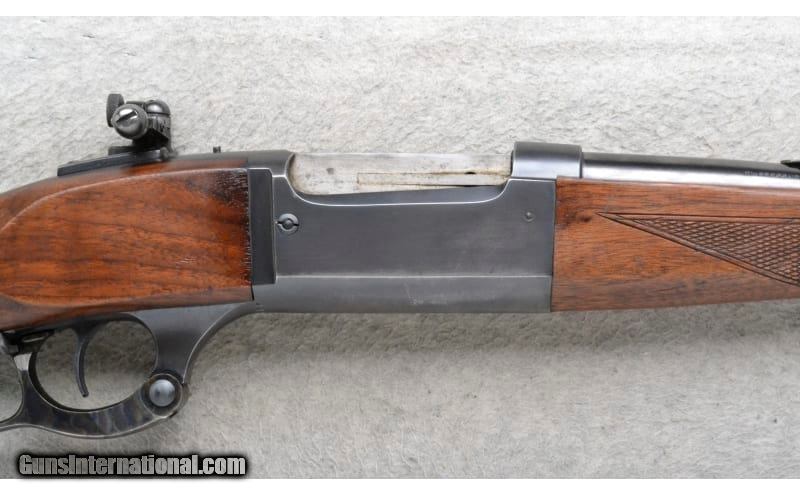 Description: This Savage Model 99 is a right hand lever action repeating rifle in .300 Savage Cal. It has a 24 inch barrel. A raised blade front sight and an adjustable aperture rear sight. The butt stock is a checkered grip walnut pistol grip with a black cap. The forearm is a checkered grip walnut. Serial number 444903 (1946). .300 Savage SOLD Chambers: Internal Magazine. Metal Condition: Good. Shows some wear and use. Wood Condition: Good. Some light handling marks. Bore Condition: Excellent. Barrels: 24 inch. Stock Dimensions: LOP 13 inches. Fore End: Checkered grip walnut. Butt Pad: Grooved steel plate. Weight: 7 lb. 12 oz. Sights: Raised blade front. Redfield adjustable aperture rear. Item Location: Richfield, WI |