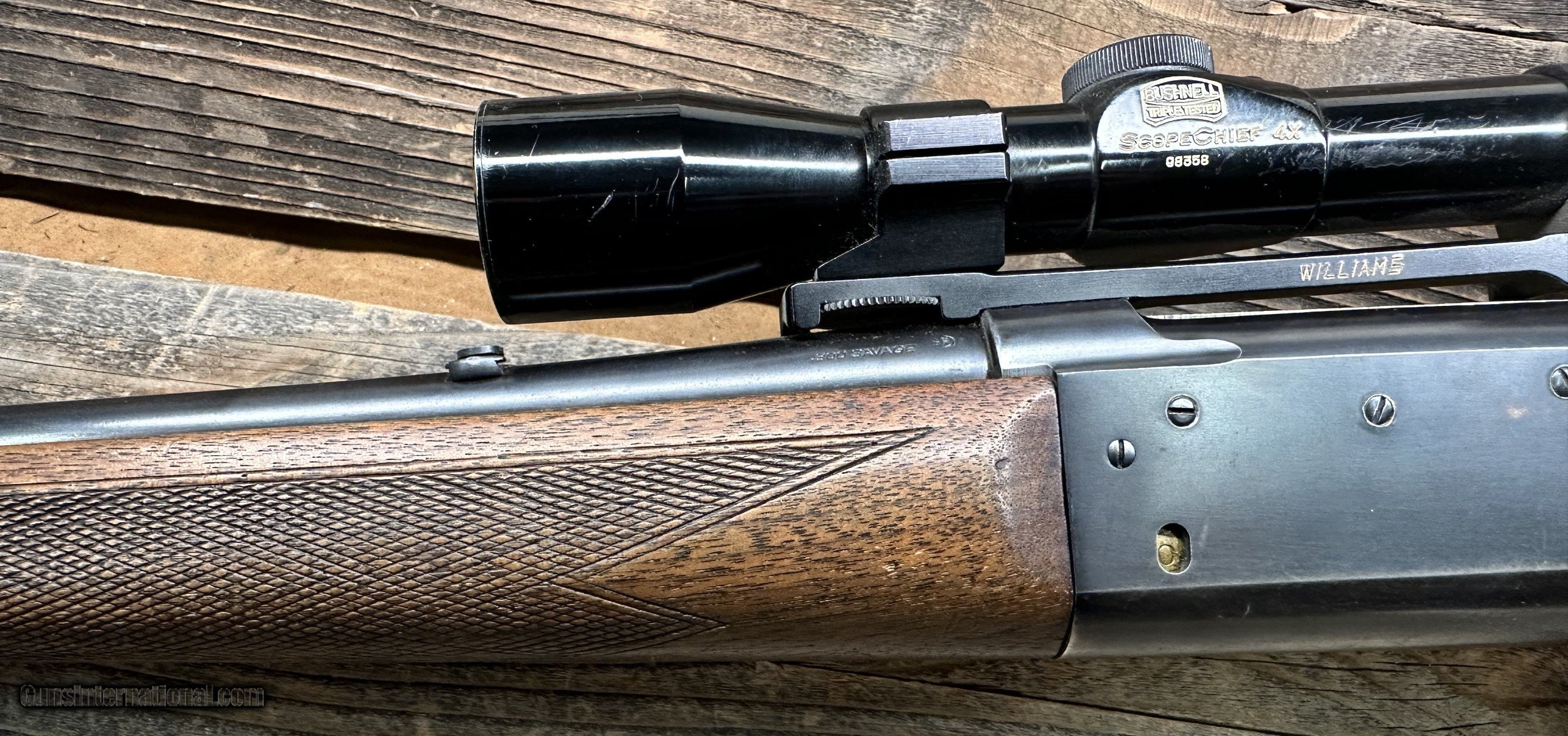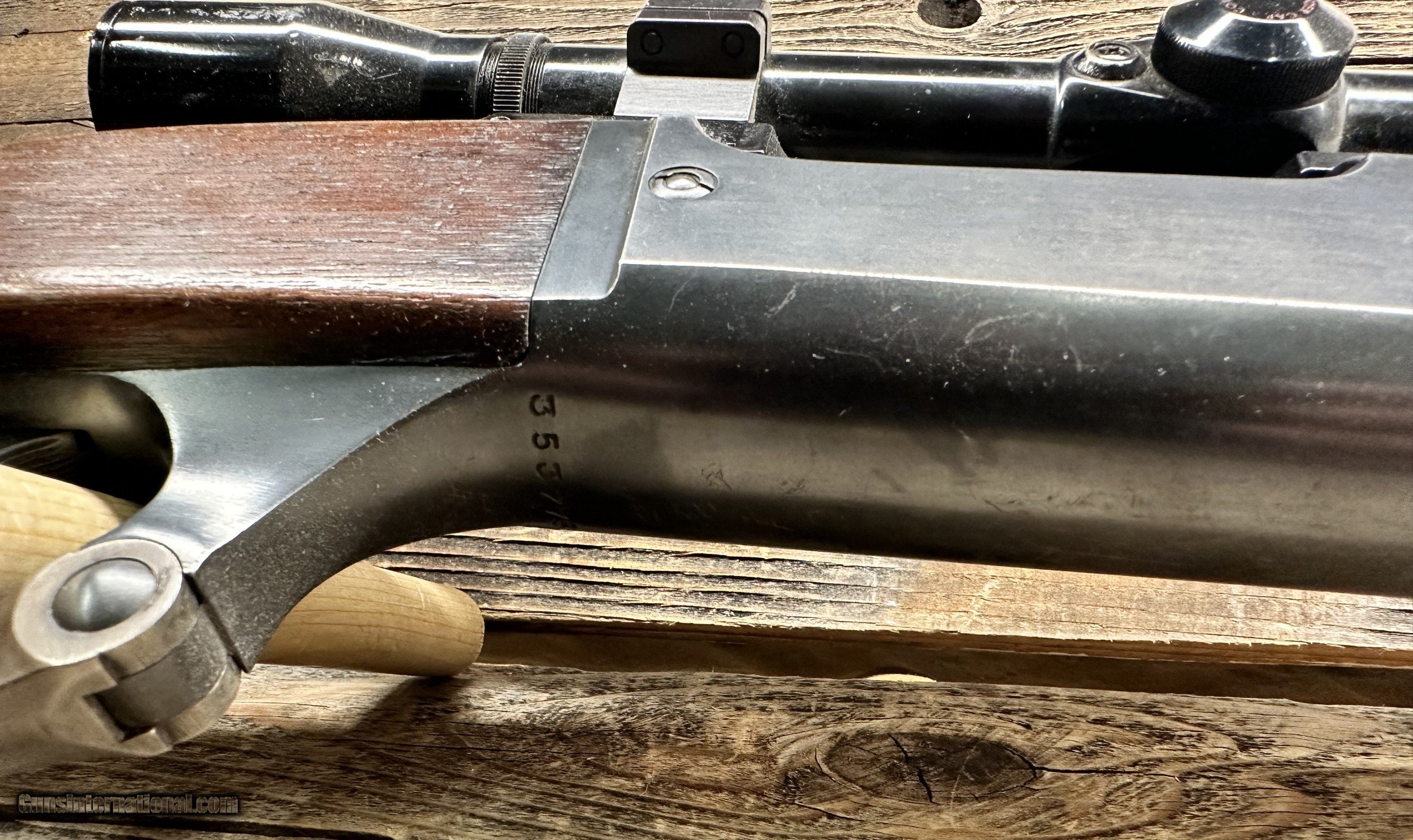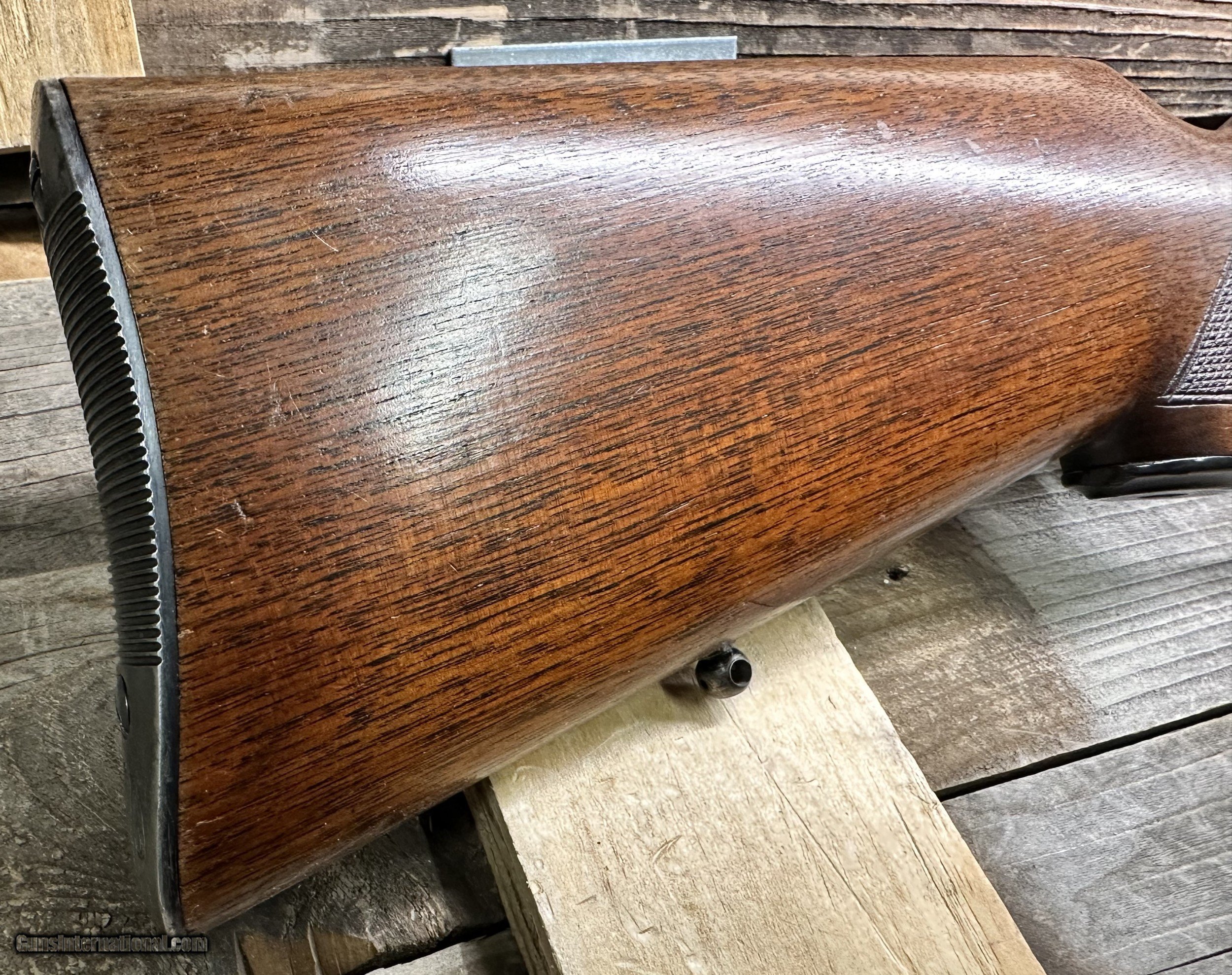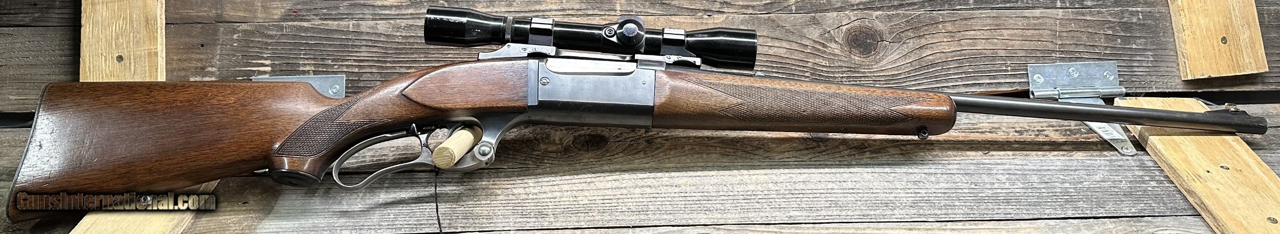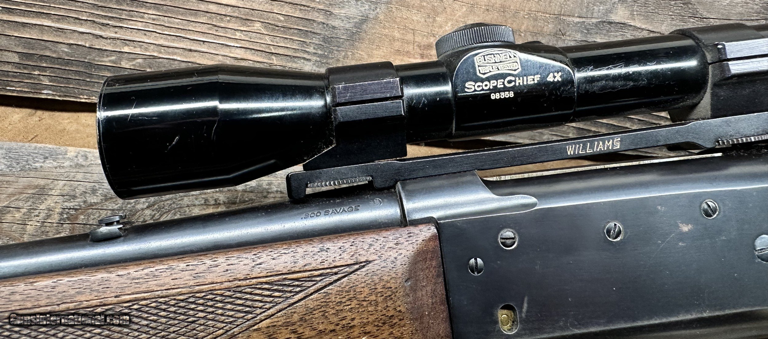 Description: Savage Model 99 chambered in .300Savage, manufactured in 1936 and sold with a Bushnell ScopeChief 4X scope on a Williams mount. $75 for insured shipping No sales or shipping to California, Hawaii, New Jersey, New York SOLD Curio/Relic: Yes Rifle Caliber: .300 Savage Manufacturer: Savage Model: 99 Serial Number: 353776 Barrel Length: 22 |