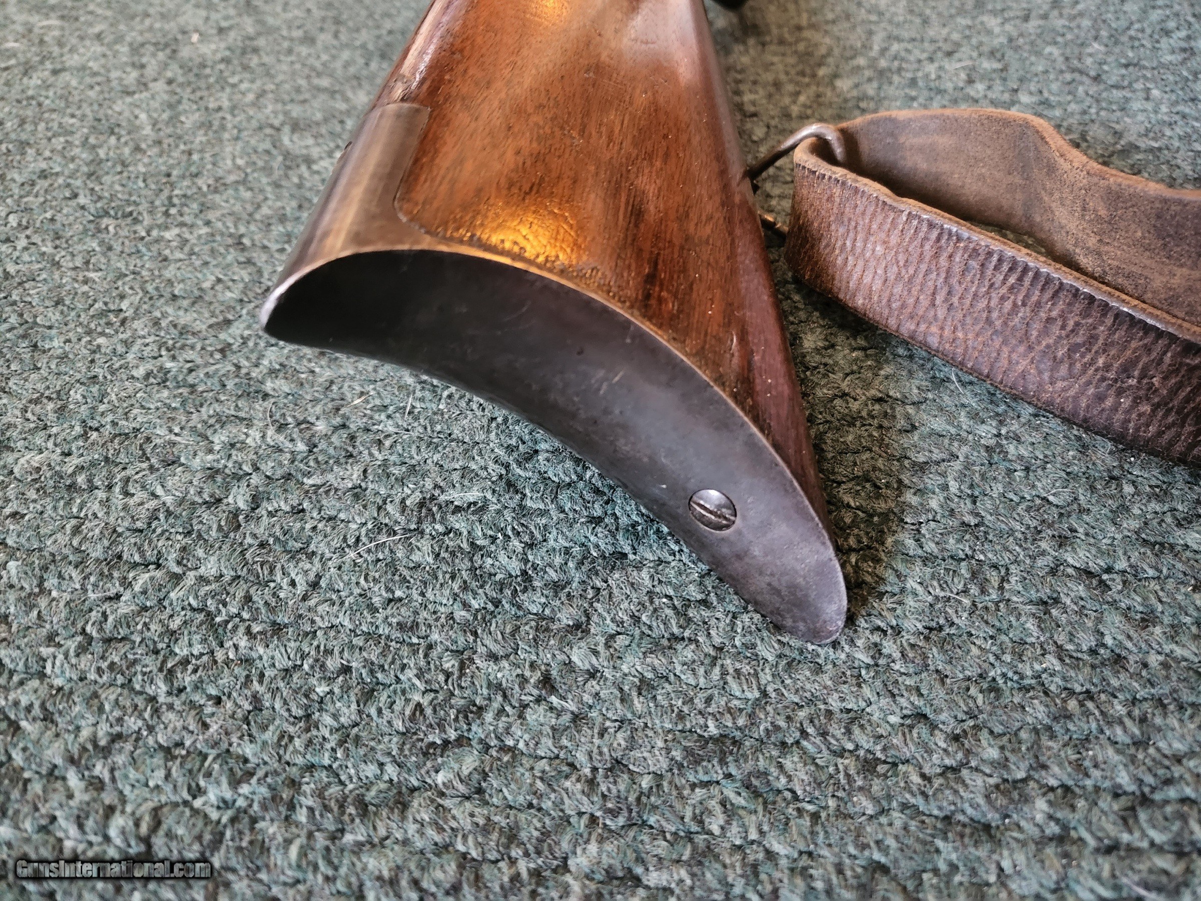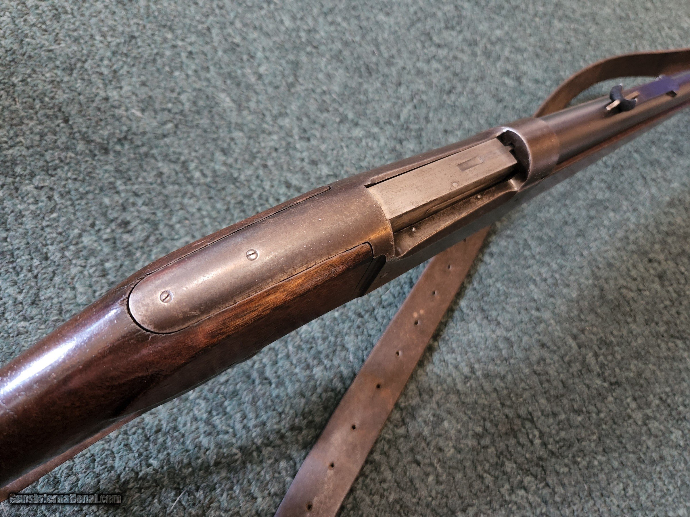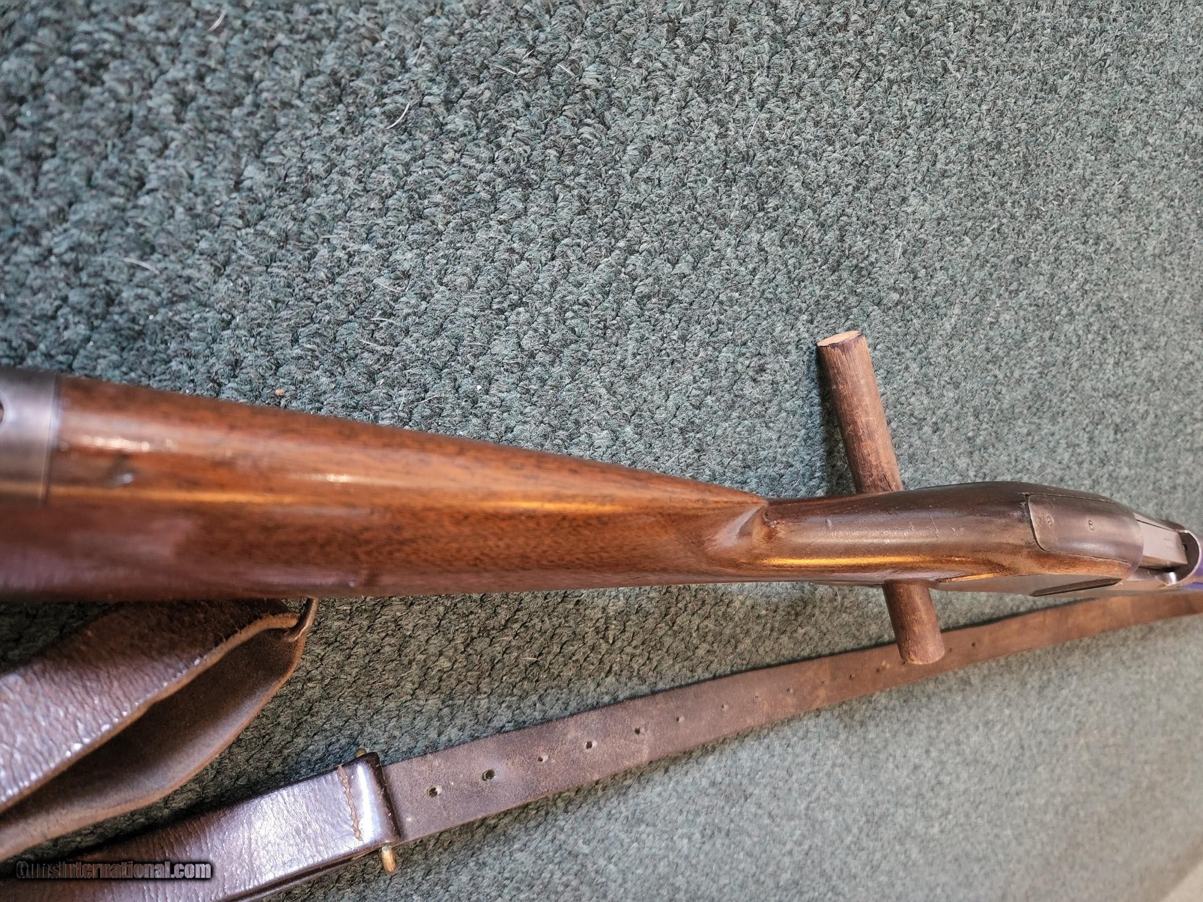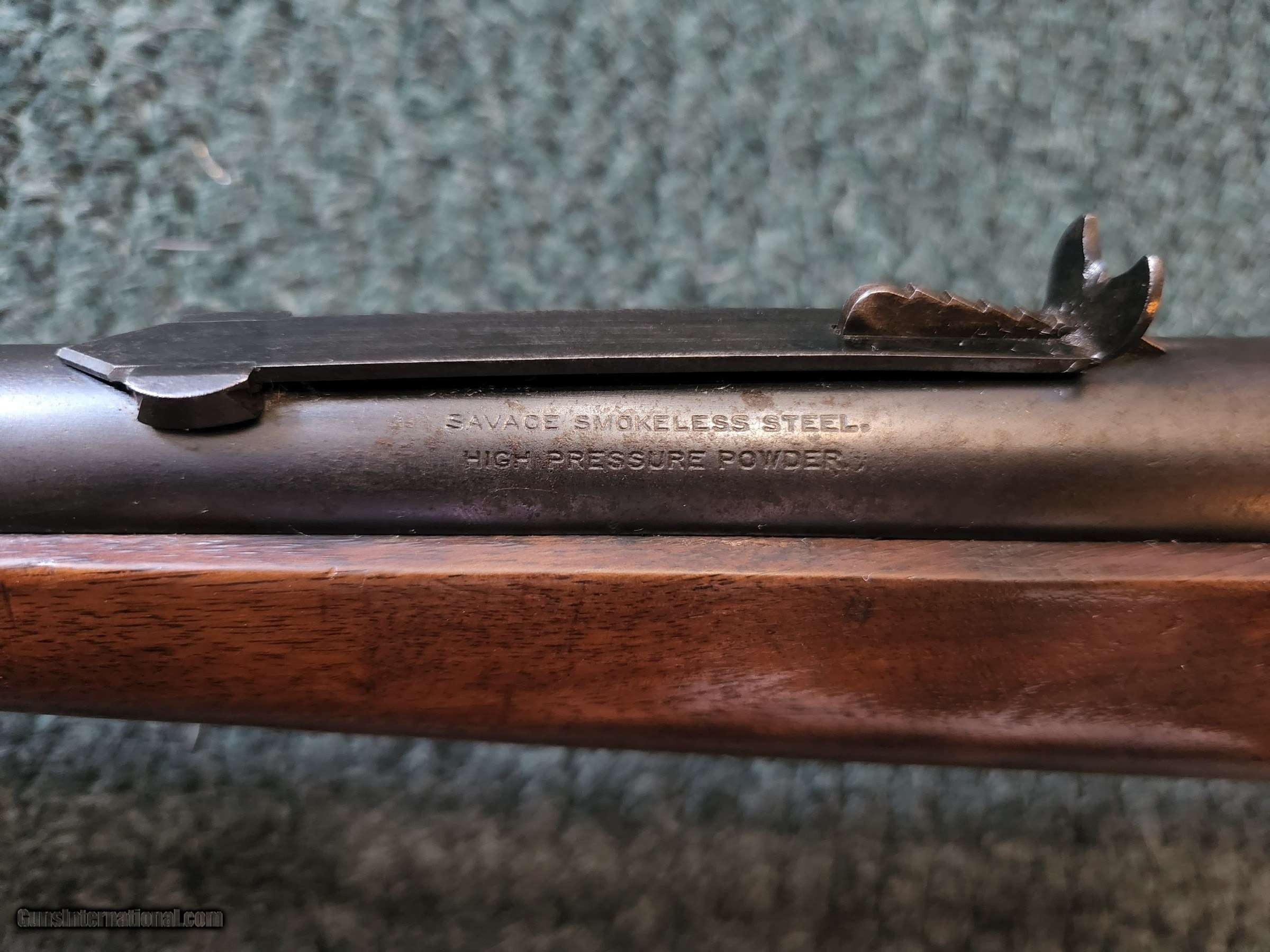 Description: Savage, Model 99, cal. 38-55, 26" barrel, all original, overall condition 80%, buckhorn rear sight, carbine style steel buttplate, straight grip, snobble forearm, bore in good condition. Serial No. 41593. For further assistance and faster service call John at 941-748-7349 or 941-224-5563. SOLD |
