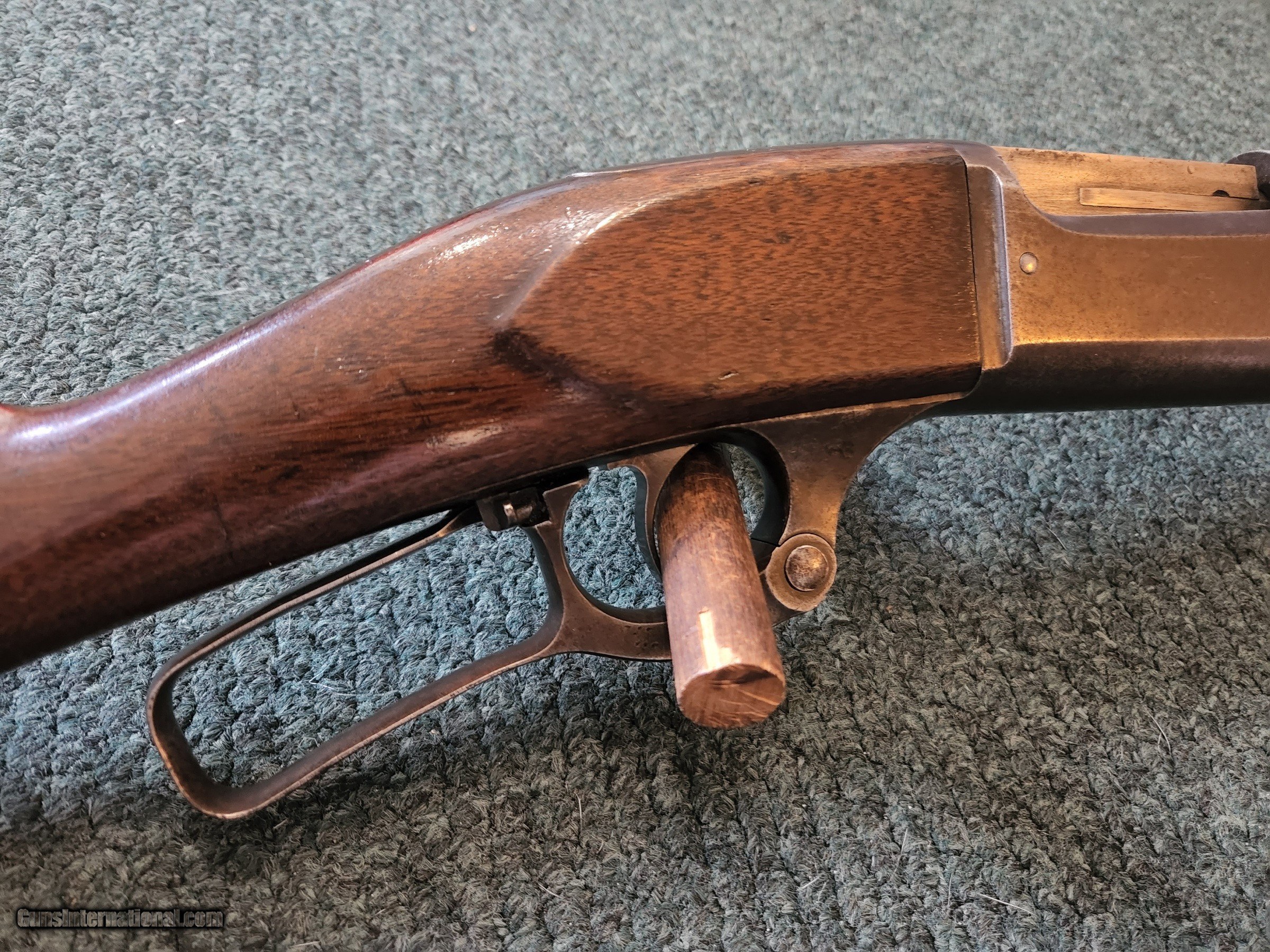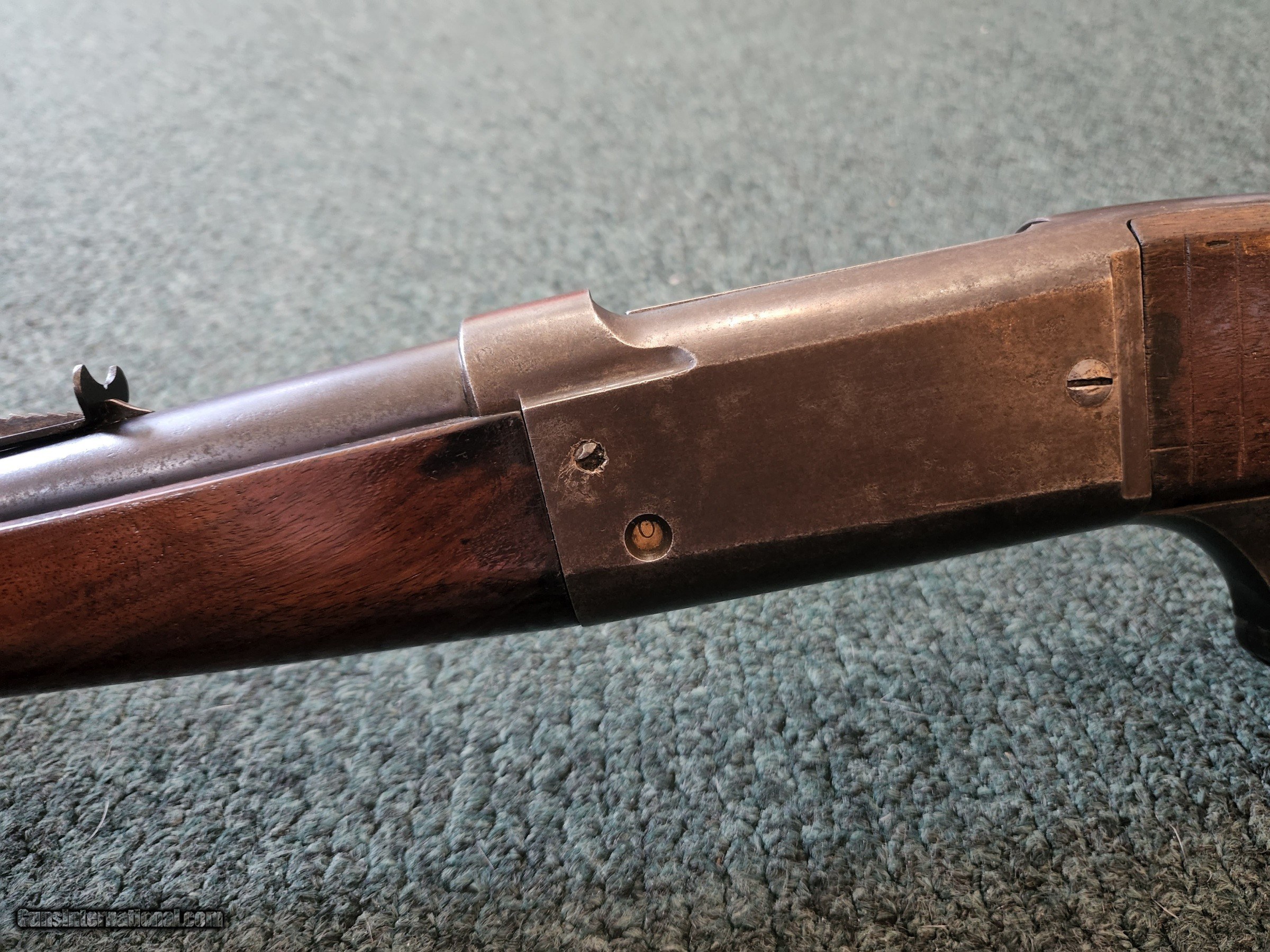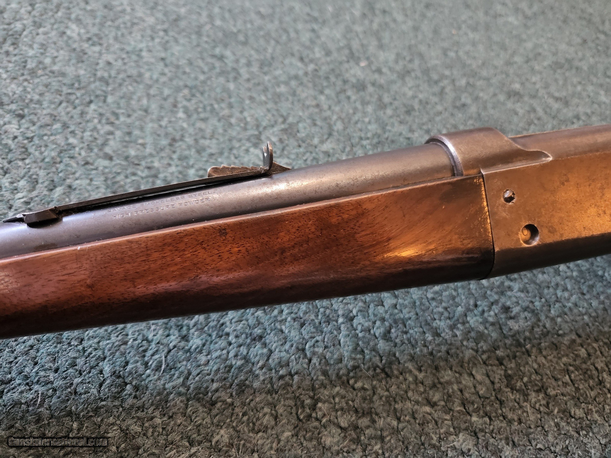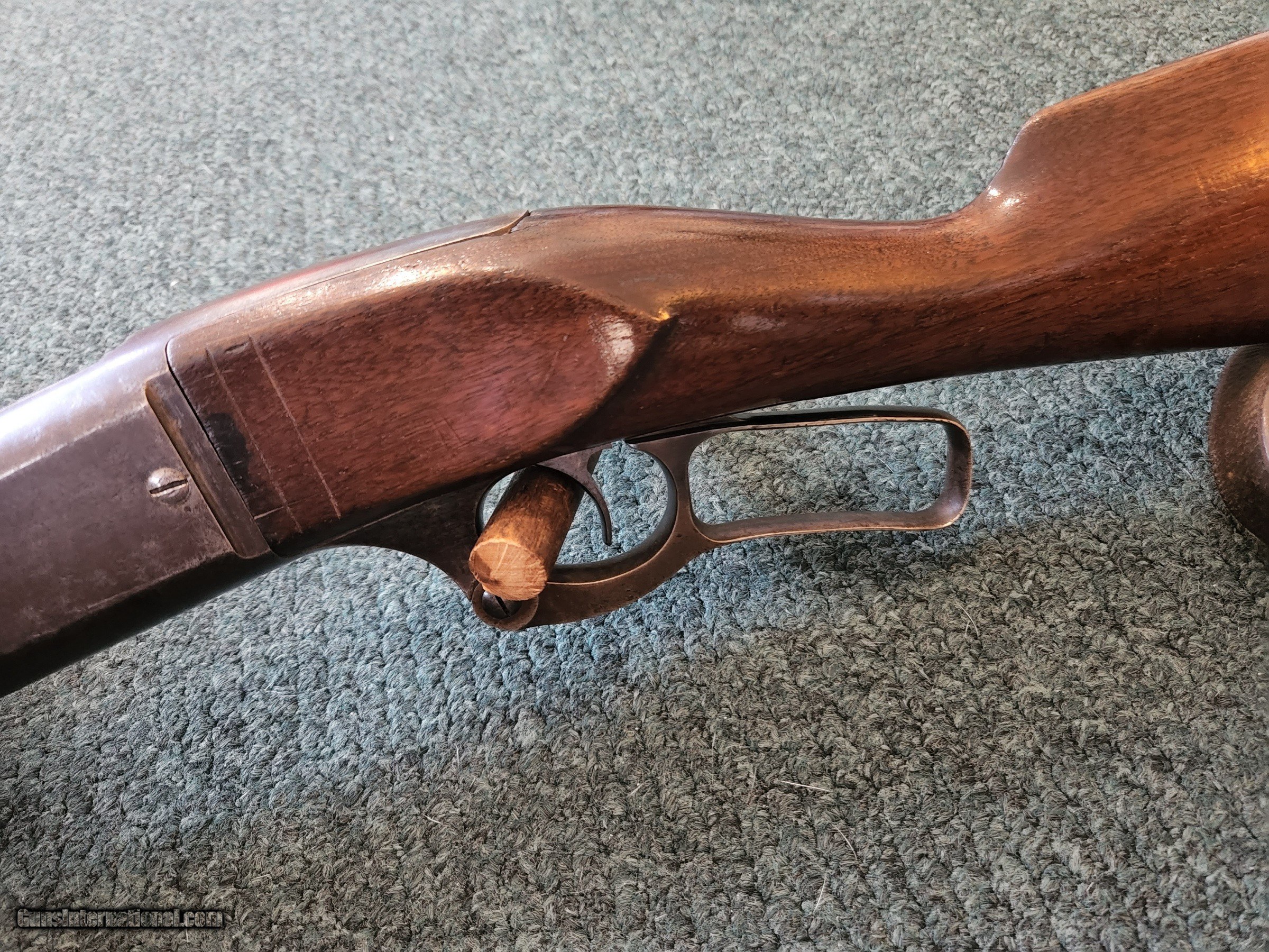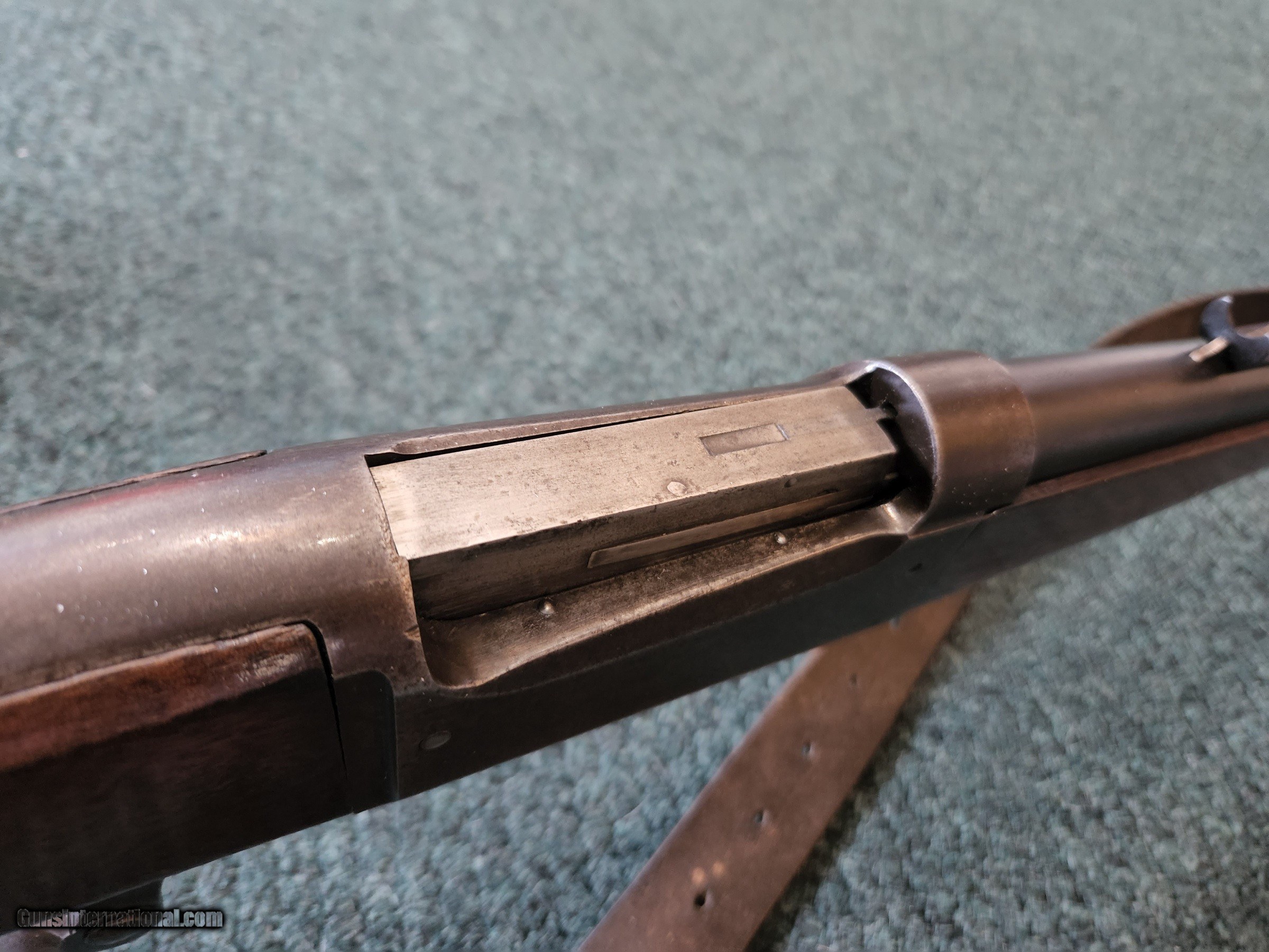 Description: Savage, Model 99, cal. 38-55, 26" barrel, all original, overall condition 80%, buckhorn rear sight, carbine style steel buttplate, straight grip, snobble forearm, bore in good condition. Serial No. 41593. For further assistance and faster service call John at 941-748-7349 or 941-224-5563. SOLD |