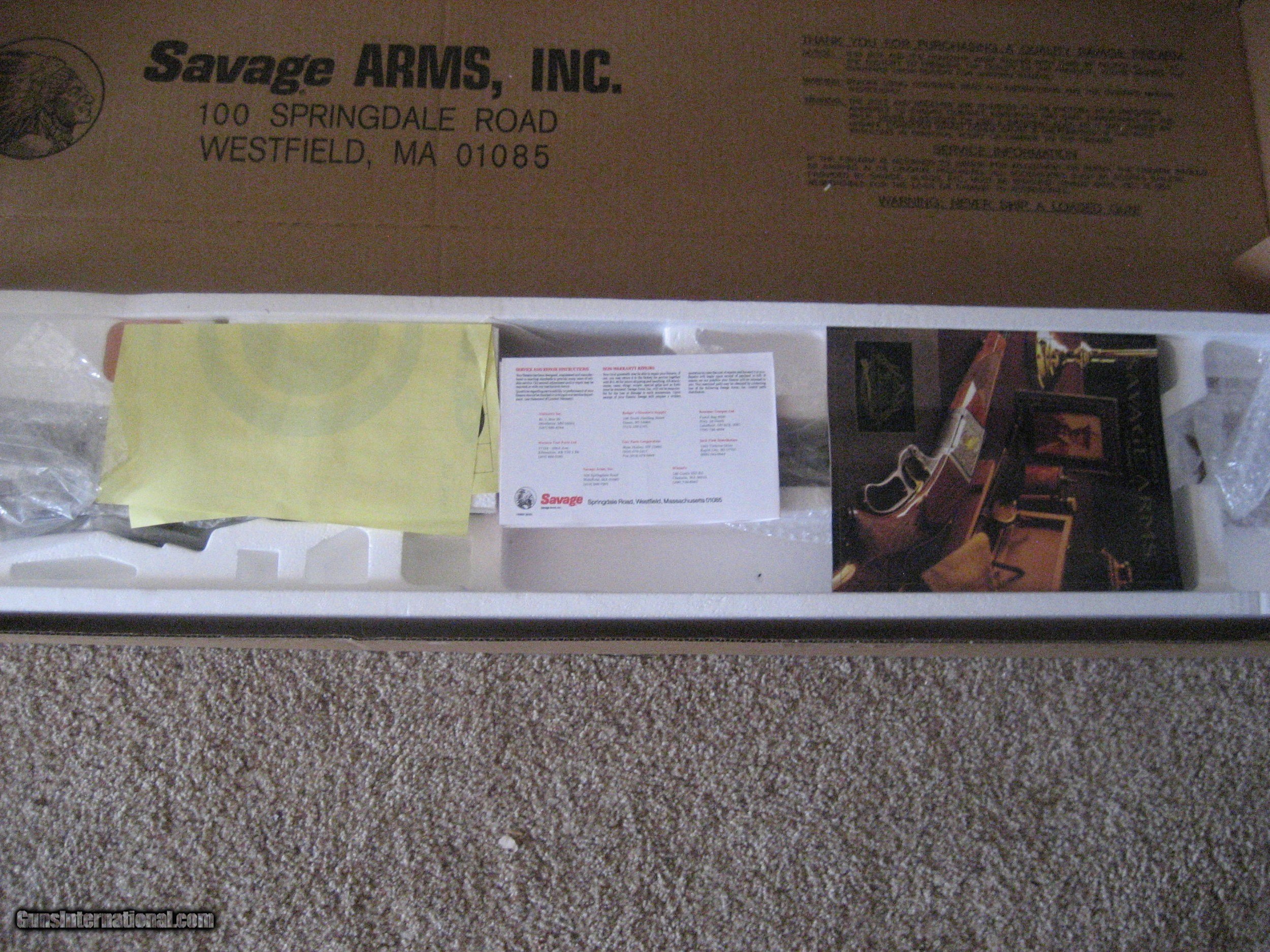 Description: Savage 99 new unfired with its wood case and all of the papaerwork including the correct original box. This was a limited adition rifle for the centennial and made in 300 Savage. Shipping $179.00 insured. SOLD Manufacturer: Savage Model: 99 Caliber Info: 300 Savage Bore: New Condition: New Metal Condition: New Wood Condition: New Bore Condition: New Barrels: 24 inches Action: Lever Engraving: Yes |