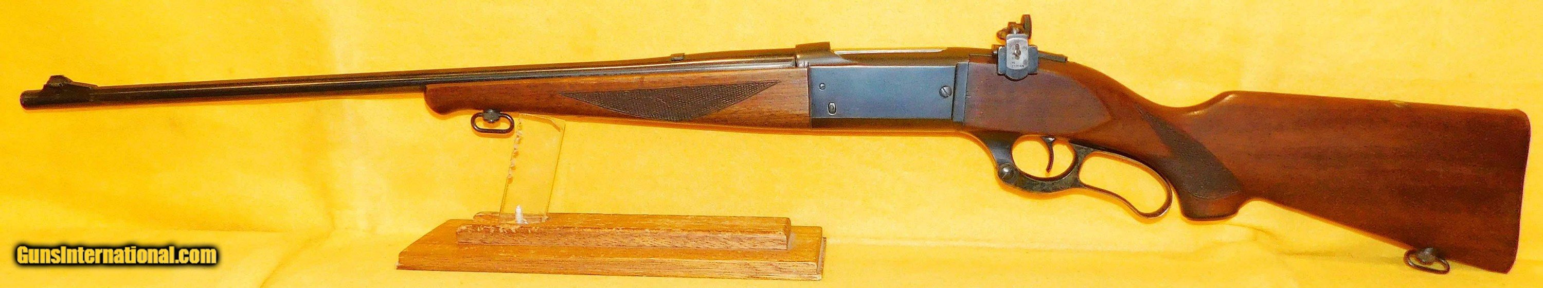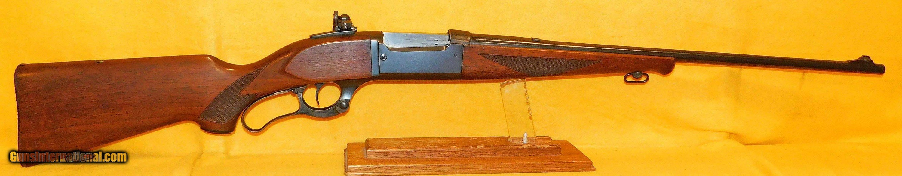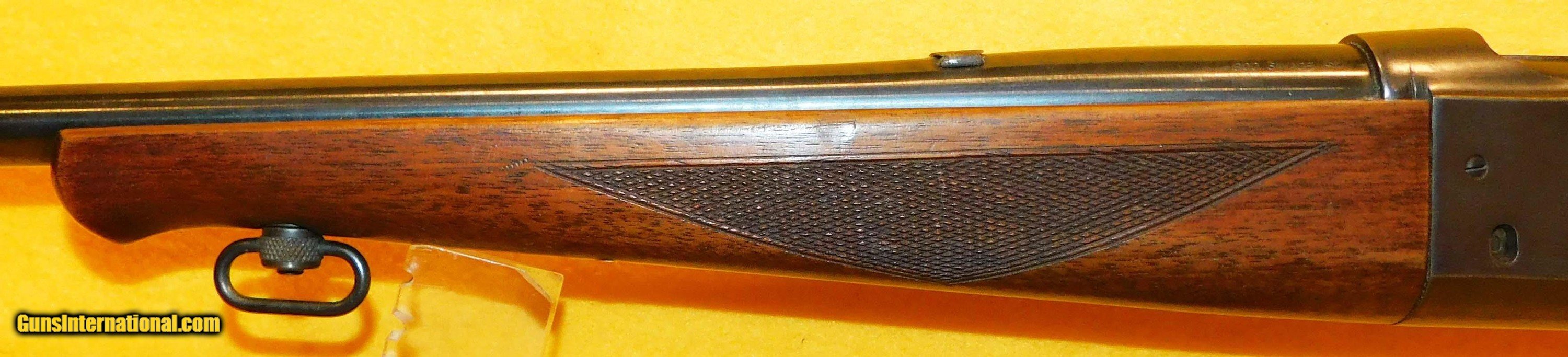 Description: SAVAGE 99-EG IN .300 SAVAGE CAL., WITH 24" BARREL. COLOR BLUE. CONDITION 95%. SERIAL NUMBER 598974. SAVAGE MODEL 99-EG IN .300 SAVAGE CALIBER, BRIGHT SHINY BORE, WALNUT CHECKERED STOCK AND FORE GRIP VERY GOOD TO EXCELLENT, BRASS CARTRIDGE COUNTER, LYMAN REAR PEEP SIGHT, BLOCKED REAR SIGHT, COMPASS PLACED IN STOCK CHEEK PIECE, 95% OVERALL CONDITION, OUR STOCK # D3325 SOLD |