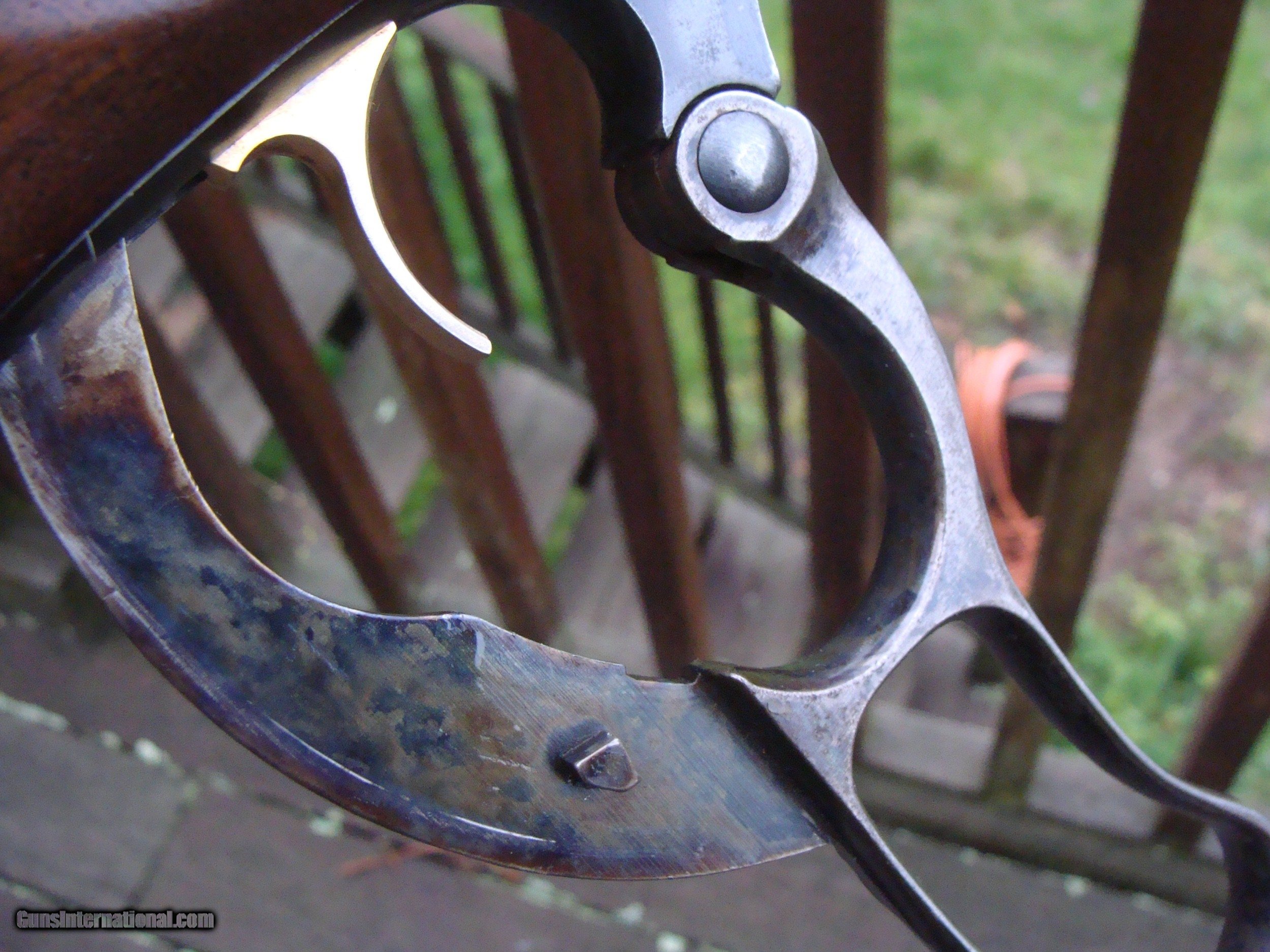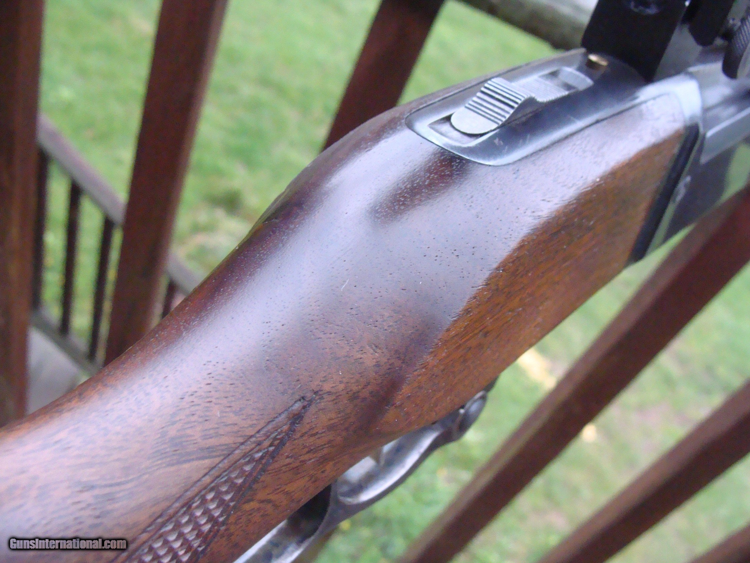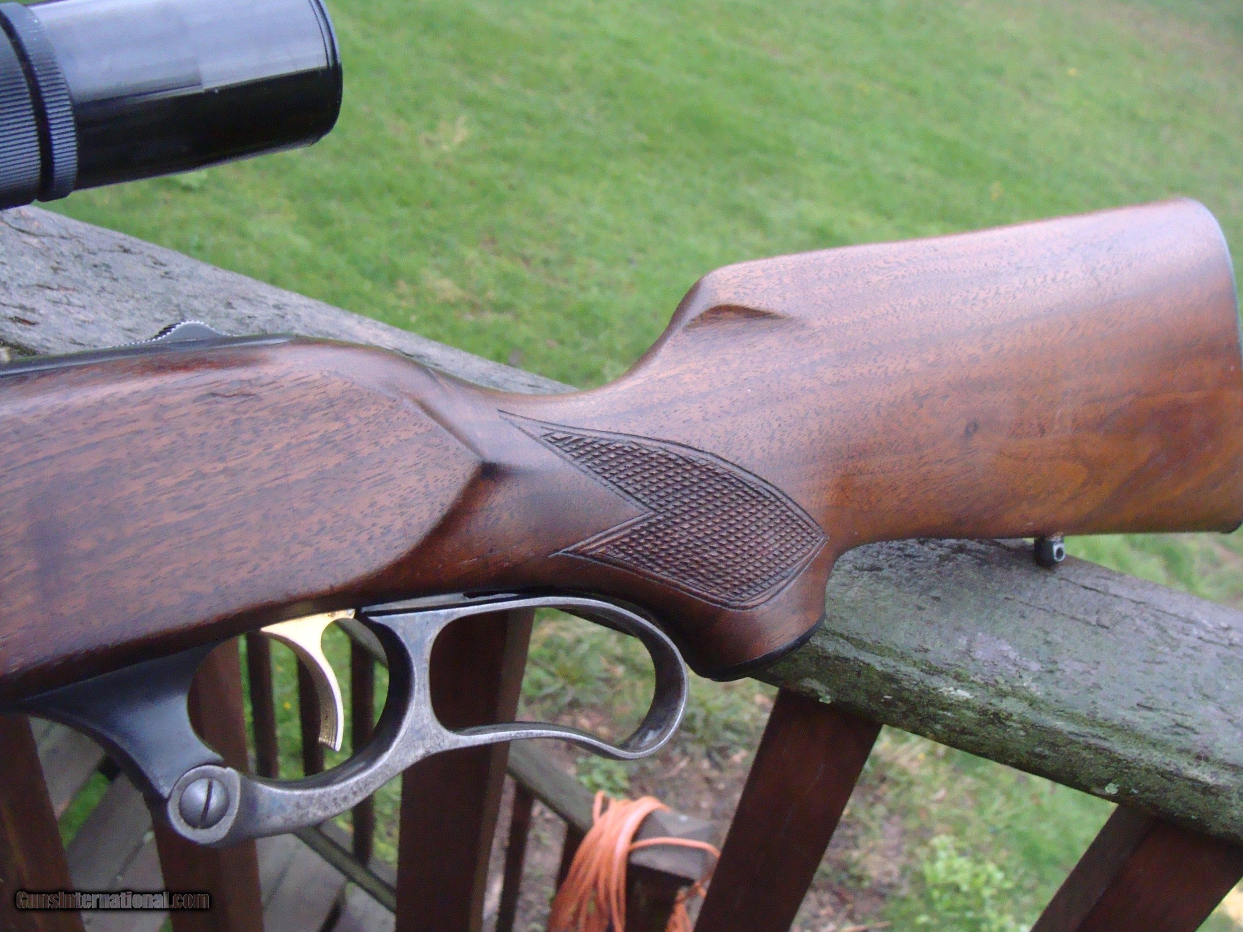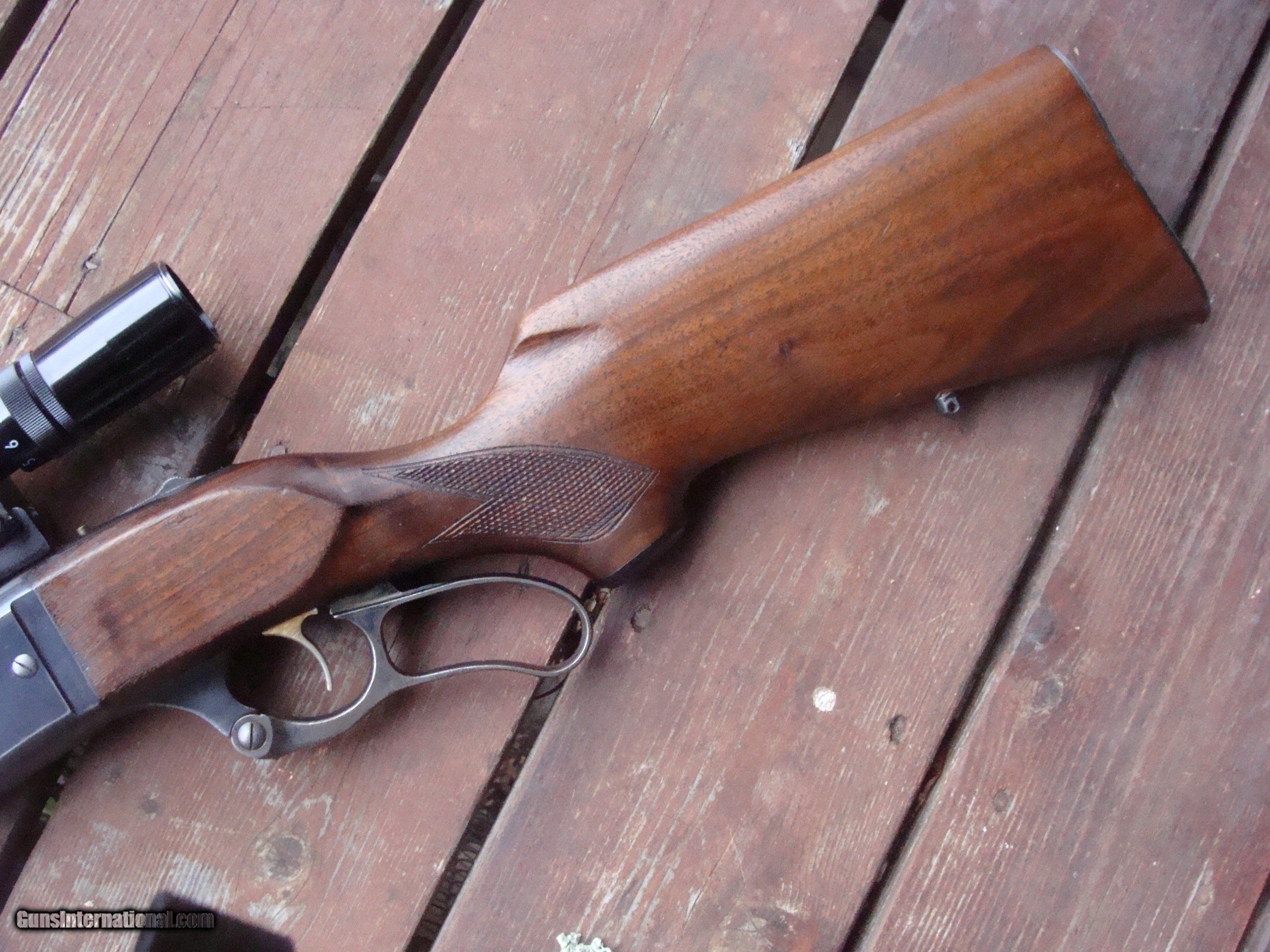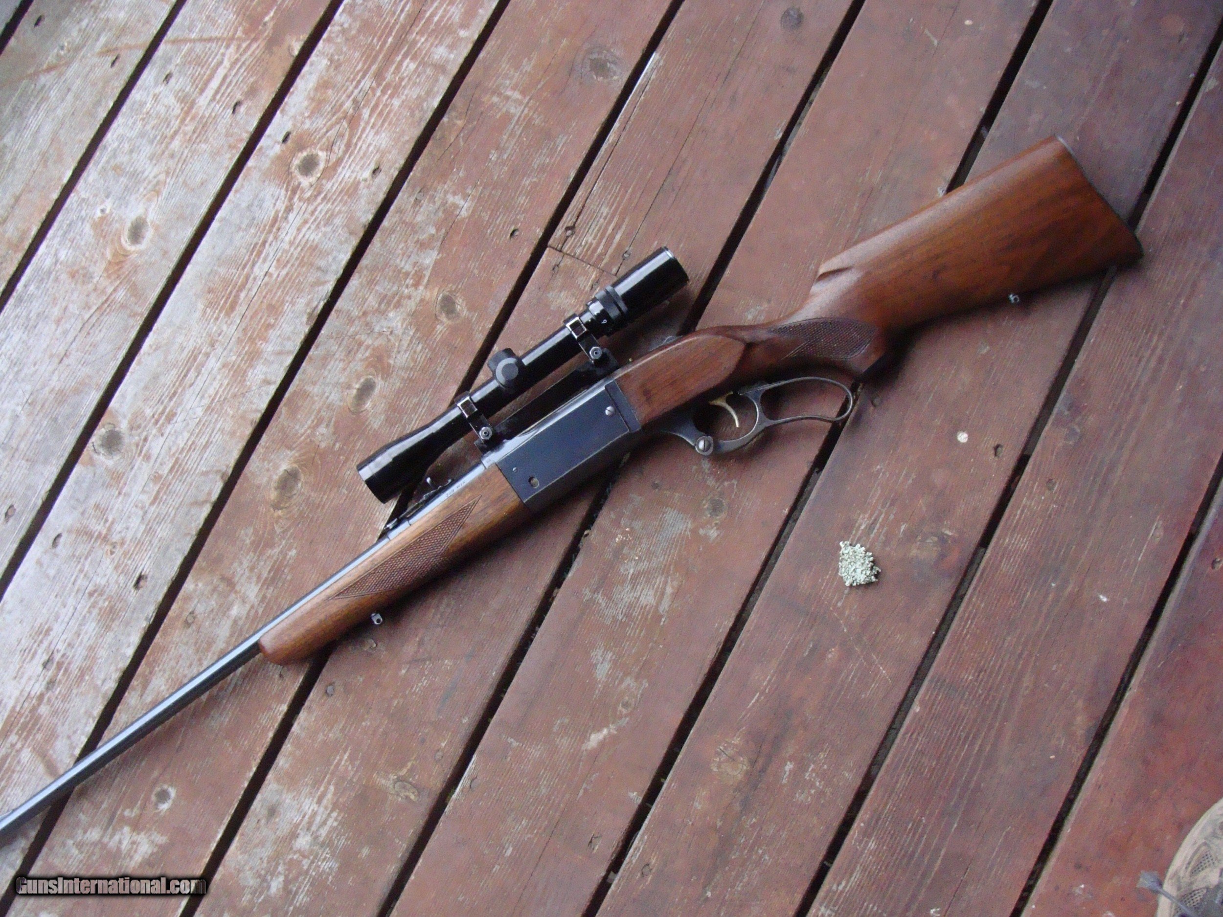 Description: Among the nicest looking of the many 99's by its unique stock design with a more full forend than E's and others. This is from a time when these incorporated both the best features of the older guns (steel butt plate, Handsome American Walnut stock set, the old style brass cartridge counter with cocking indicator and the improved location of safety from where it had previously been located on the lever to a tang mounted one. This DOES NOT HAVE. the crack behind the tang that is so common, bore is excellent, stock retains most of the original finish with no meanigful use marks and very good remaining blue at 85% or so with NO RUST OR PITTING. Checkering is sharp and lever retains some of the case colors. These are increaslingly hard to find in this combination ,configuration and condition Shipping is $ 50.00 to any location in the lower 48 States. SOLD Curio/Relic: Yes |