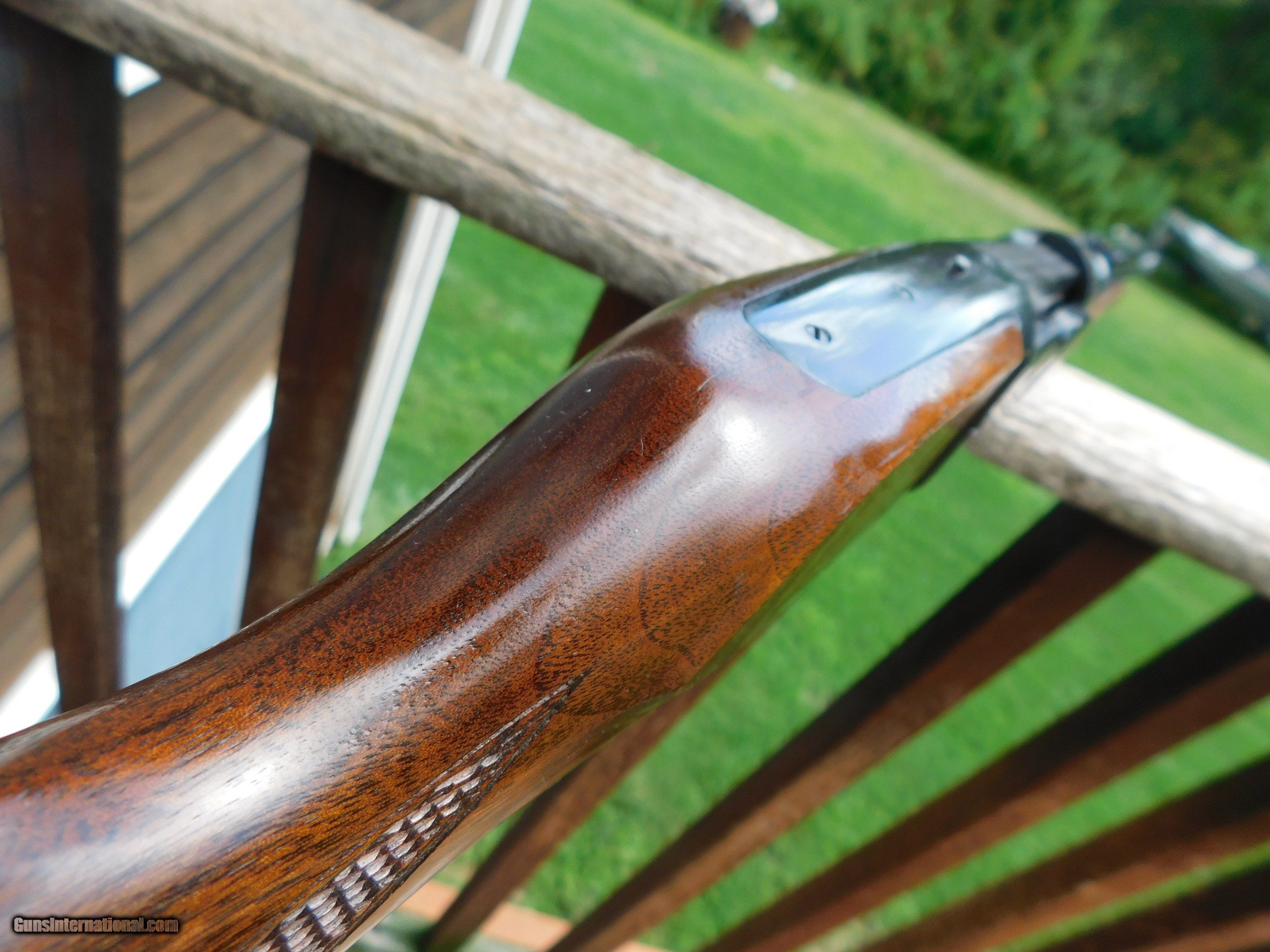 Description: Sale Pending Paul S Fl 8/16/23 This 1959 Beauty retains almost all original blue and stock finish and correct hand checkering to butt stock and forend. and is in truely excellent condition. it does NOT have the often encountered split behind the upper tang nor has it ever been reparied and nor is there any touch up or added finish. Checkering is sharp and crisp and original. Nice case color remains on the lever that is not exposed to the elements The stock was shortened at one time for a pad that was subsequenlty removed and an early Savage Steel butt plate was added (with the Savage indian at the toe) It may be used as it is or have a pad added to bring it back to factory lenght. We have an excellent stock man nearby who can add a pad...inquire about pricing. Shipping is $ 59.00 IF IT DOES NOT SAY ."SALE PENDING, UNDER DEPOSIT or ON HOLD"...IT IS AVAILABLE. WE DO NOT REPLY TO INQUIRIES THAT SAY "INTERESTED IN THIS GUN" OR "IS IT AVAILABLE" IF YOU WOULD LIKE TO BUY THIS OR ANY OF OUR GUNS WE SUGGEST YOU PHONE US; WE ARE OFTEN AVAIALABLE LONG HOURS. IF YOU ARE INTERSTED IN A GUN THAT IS UNDER DEPOSIT AND WOULD LIKE TO BE NOTIFIED IF A SIMILAR GUN COMES IN DROP US A LINE AND WE WILL MAKE EFFORTS TO CONTACT YOU WHEN ONE DOES COME IN. WE HAVE OVER 2000 SALES ON ALL SITES WITH AN A+ RATING ON ALL WE ALSO KEEP AN INVENTORY OF OLDER PERIOD CORRECT SCOPES; CALL WITH NEEDS WE MOSTLY PICK VERY CLEAN AND LIGHLTY USED GUNS. WE ARE HAPPY TO TAKE CONSIGNMENT GUNS AND COLLECTIONS OR WILL BUY YOURS OUTRIGHT. WE SOMETIMES ARE EMPLOYED FOR ESTATE PURPOSES AND VALUATIONS. AT THIS TIME WE ARE ONLY ACCEPTING US POSTAL MONEY ORDERS OR BANK CHECKS FOR PAYMENT IT IS THE BUYERS RESPONSIBILITY TO GET US A COPY OF YOUR RECEIVING FFL'S LIC AND A COPY OF YOUR PHOTO ID BEFORE THE GUN SHIPS YOU MUST CALL OR CONTACT YOUR FFL.WE DO NOT CALL FOR YOU UNLESS THEY RQUIRE IT. LAYAWAY PURCHASES NOT COMPLETED ON ANY RETURNED ITEM UNLESS NOT AS DESCRIBED OR DAMAGED ARE SUBJECT TO A 10% RELISTING/RESTOCKING FEE AND MUST BE RETURNED WITH NO NEW MARKS OR SCRATCHES, SENT BACK INSURED, PRIORITY SIGNATURE REQUIRED. ALL INFORMATION CONTAINED HEREIN IS BELIEVED TO BE ACCURATE BUT IS NOT GUARANTEED. WITH ANY OLDER OR USED GUN IT SHOULD BE INSPECTED BY A GUNSMITH PRIOR TO SHOOTING. SOLD |