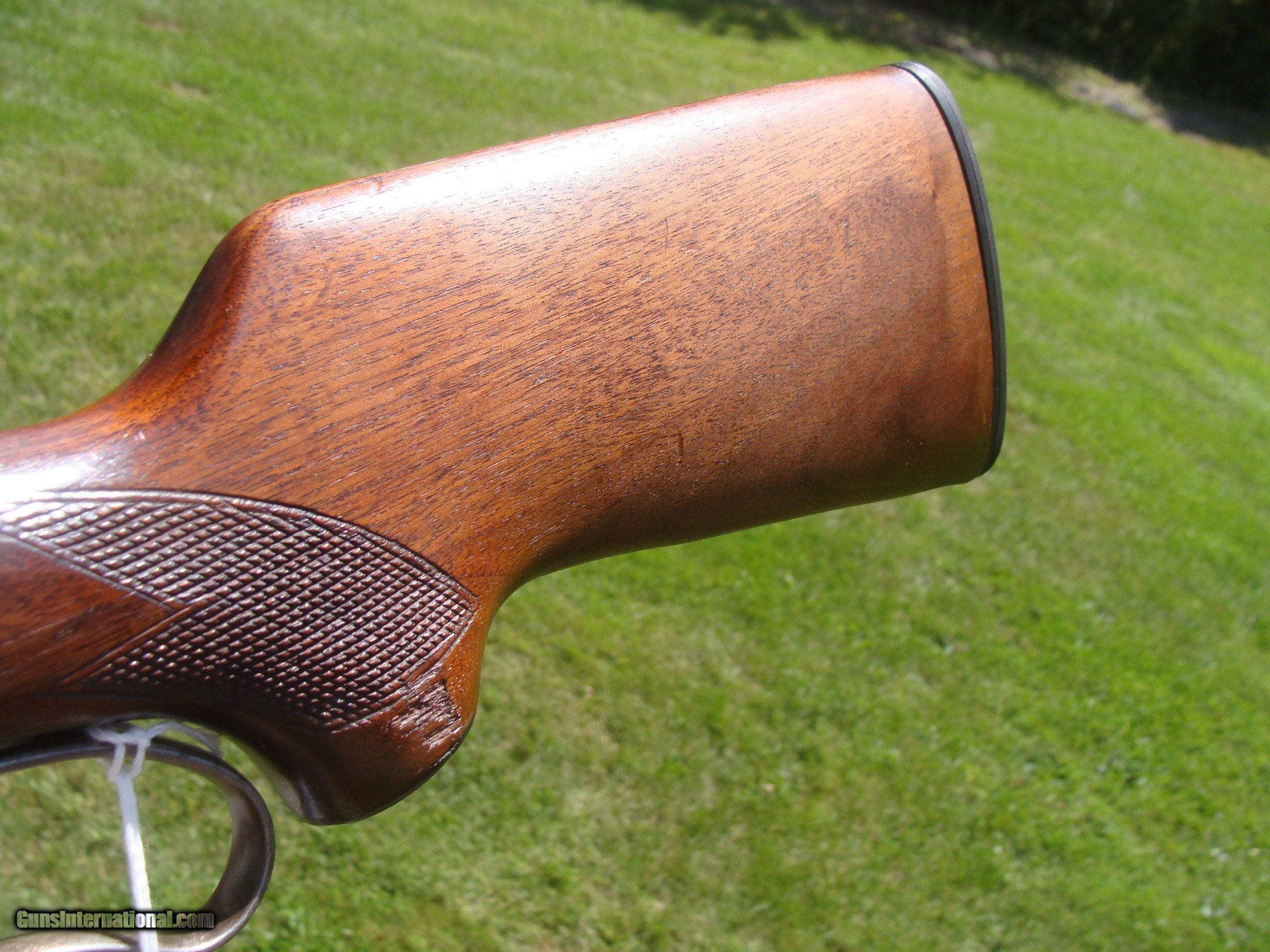 Description: This is an honest hunting gun but not in collector conditon. All blue is est 85% or better, NOT rusted or pitted. The engine turned bolt retains allmost all of the engine polishing. The butt stock has the typical split behind the upper tang that has been well repaired so this is not a weak point. The upper tang has been drilled for a tang sight that was not turned in with the gun so it will need filler screws. LOP to end of thin pad 13 1/2 Most desirable 99F in .308 for hunters offered based on cosmetic conditons described here but usually found for hundreds and sometimes as much as 1000.00 more. No returns based on cosmetic described here; if you need more pics to make your evaluation let us know. No guns are being shipped the week of 9/13/21 Shipping $ 45.00 PLEASE READ EVERYTHING BELOW IN BOLD: IF IT DOES NOT SAY NEXT TO THE PRICE..."SALE PENDING OR UNDER DEPOSIT"...IT IS AVAILABLE. WE DO NOT REPLY TO INQUIRIES THAT SAY "INTERESTED IN THIS GUN" OR "IS IT AVAILABLE" IF YOU WOULD LIKE TO BUY THIS OR ANY OF OUR GUNS WE SUGGEST YOU PHONE US; WE ARE OFTEN AVAIALABLE LONG HOURS. IF YOU ARE INTERSTED IN A GUN THAT IS UNDER DEPOSIT AND WOULD LIKE TO BE NOTIFIED IF A SIMILAR GUN COMES IN DROP US A LINE AND WE WILL MAKE EFFORTS TO CONTACT YOU WHEN ONE DOES COME IN. WE HAVE OVER 2000 SALES ON ALL SITES WITH AN A+ RATING ON ALL WE ALSO KEEP AN INVENTORY OF OLDER PERIOD CORRECT SCOPES; CALL WITH NEEDS WE MOSTLY PICK VERY CLEAN AND LIGHLTY USED GUNS. WE ARE HAPPY TO TAKE CONSIGNMENT GUNS AND COLLECTIONS OR WILL BUY YOURS OUTRIGHT. WE SOMETIMES ARE EMPLOYED FOR ESTATE PURPOSES AND VALUATIONS. CT RESIDENTS MUST CONTACT US TO UNDERSTAND OUR IN STATE TRANSFER POLICIES. PAYMENT USPS MONEY ORDER ONLY AT THIS TIME. ( WE CAN TAKE A DEPOSIT WITH A CARD BUT THE GUN MUST BE PAID WITH A USPS MONEY ORDER) IT IS THE BUYERS RESPONSIBILITY TO GET US A COPY OF YOUR RECEIVING FFL'S LIC AND A COPY OF YOUR PHOTO ID BEFORE THE GUN SHIPS YOU MUST CALL YOUR FFL.WE DO NOT CALL FOR YOU. LAYAWAY PURCHASES NOT COMPLETED OR ANY RETURNED ITEM UNLESS NOT AS DESCRIBED OR DAMAGED ARE SUBJECT TO A 10% RELISTING/RESTOCKING FEE AND MUST BE RETURNED WITH NO NEW MARKS OR SCRATCHES, SENT BACK INSURED, PRIORITY SIGNATURE REQUIRED. ALL INFORMATION CONTAINED HEREIN IS BELIEVED TO BE ACCURATE BUT IS NOT GUARANTEED. WITH ANY OLDER OR USED GUN IT SHOULD BE EXAMINED BY A GUNSMITH OR COMPETENT EXPERT PRIOR TO USE) SOLD |