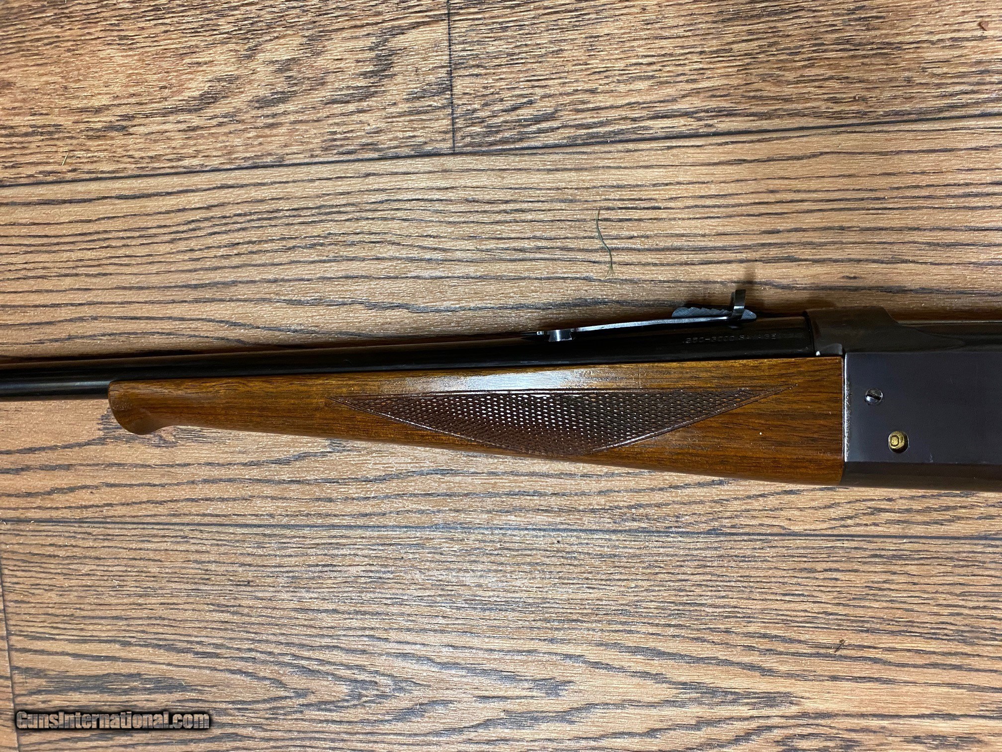 Description: 99% condition. Like new inside and out, except for the mark on the let side of the stock (see pics). This was manufactured in 1949. Code on lever frame is 26A. Fired very little, if at all. Vivid case color on lever. Brass rotor. this is the nicest early 99 in this caliber, I have seen this is the EG model tele number 570490 7848. DROPPED PRICE $200.00 TO $1750.00 SOLD PENDING FUNDS Shipping $60.00 Add $20.00 to ship in hard case SOLD Rifle Caliber: .250-3000 Savage Manufacturer: Savage Model: 99 Condition: Excellent |