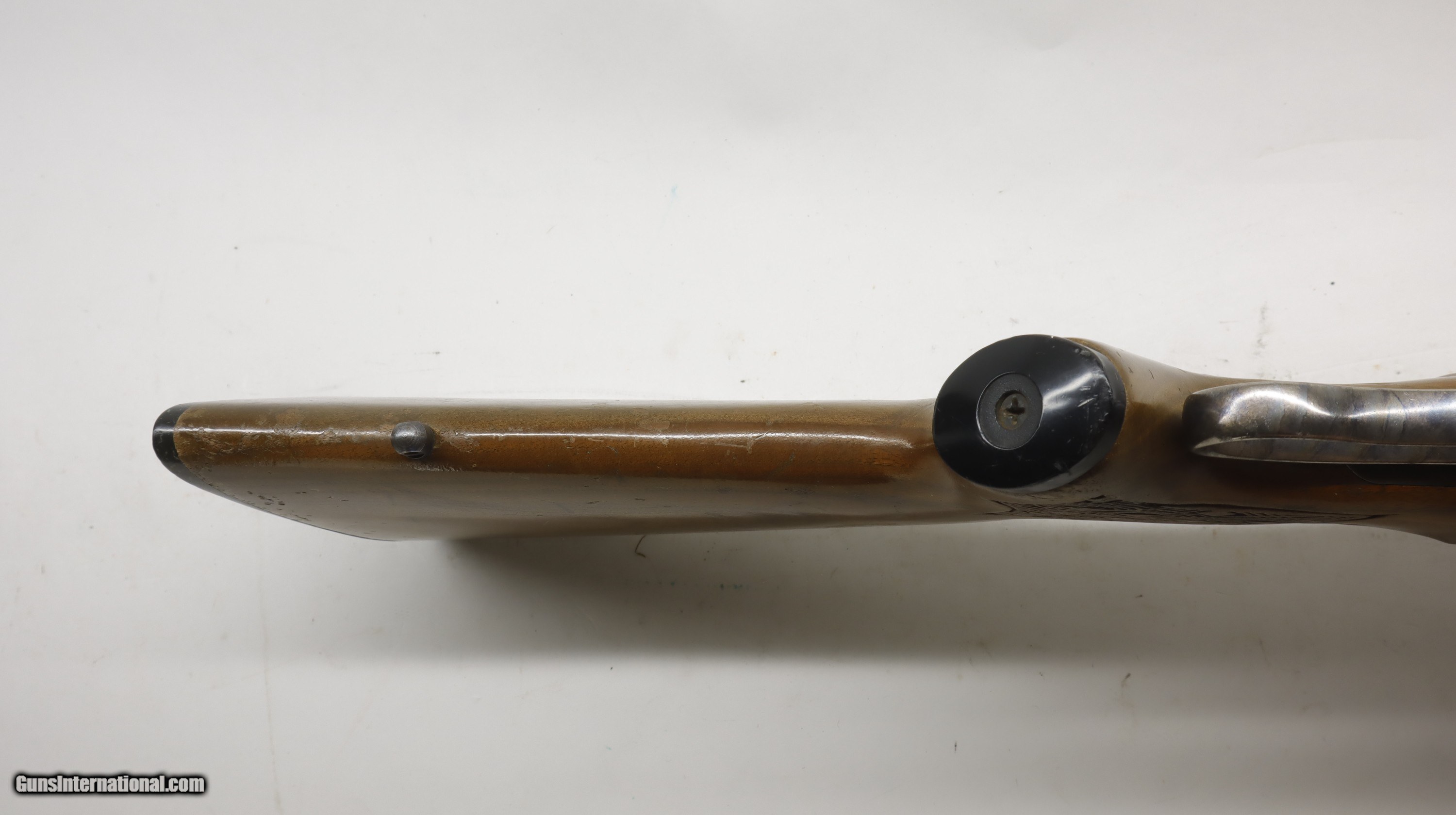 Description: Savage 99C, 22-250 Rem, 22" barrel. Factory open sights, factory drilled and tapped for a modern scope. SN is C6039xx, made in 1977. Factory factory finish on both wood and metal, factory butt plate. has a fixed crack in the stock, stock is rock solid. Nice classic hard to find gun! We will trade for silver and gold. All my guns (except Layaway) come with a non-firing, 3 day unconditional return privilege, from the day UPS delivers to your dealer. Buyer pays shipping both ways if the gun comes back. Please make sure to make it to your FFL to inspect within the 3 days. We accept personal check, any certified funds. We can also take your credit card, +3%. Email me if you would like these pictures sent to you, they will come through bigger and better than on the listing page here. We do offer Layaway. Our standard terms are 25% down, 90 days. Initial deposit is not refundable. Layaway guns do not have an inspection or return policy. Email me with any questions. Please check your local laws to confirm it is legal to own in your state! Buyer pays $60 shipping and insurance in a brand new PLANO hard case to your FFL in the lower 48. AK, HI or PR is extra. I will ship to California, as long as it is legal, NO PROBLEM! I am a licensed FFL, and will include a copy of my FFL with the gun for your dealer’s records. I will ship to a C&R if the gun is eligible. I will ship to California, but you need to confirm the gun is legal where you are, California or other. WE BUY AND CONSIGN GUNS AND GUN COLLECTIONS! We will travel to pick up collections! I am always looking for good clean, old original Winchesters to buy, consign, or trade, especially Pre '64's model 70's and model 54's. WE ALSO TRADE FOR CLASSIC CARS AND TRUCKS! We also trade for gold and silver. SOLD Rifle Caliber: .22-250 Remington Manufacturer: Savage Model: 99 Barrel Length: 22 Condition: used |