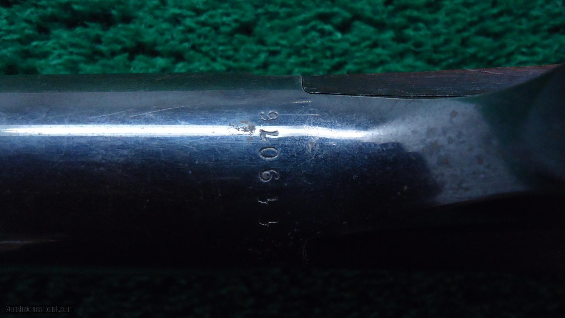 Description: Cal 303 Savage. 20" round bbl, grooved steel Savage buttplate and Schnabel forearm. Sights include brass bead front sight on ramp and Savage marked rear sight. Metal has a good amount of thinning blue. VG case colors on the lever. Wood is overall good condition. Nice little 99 takedown. Leroy Merz Antique Firearms specializes in antique and vintage Winchesters and other fine American firearms. Since 1965 Mr. Merz has taken part in the world of firearms and has been a contributor to many well known reference books. Just recently we mailed the 128th edition of our privately-published catalog. We have hundreds of additional guns in every price range at our home online. Search for Merz Antiques in google. SOLD Curio/Relic: Yes |