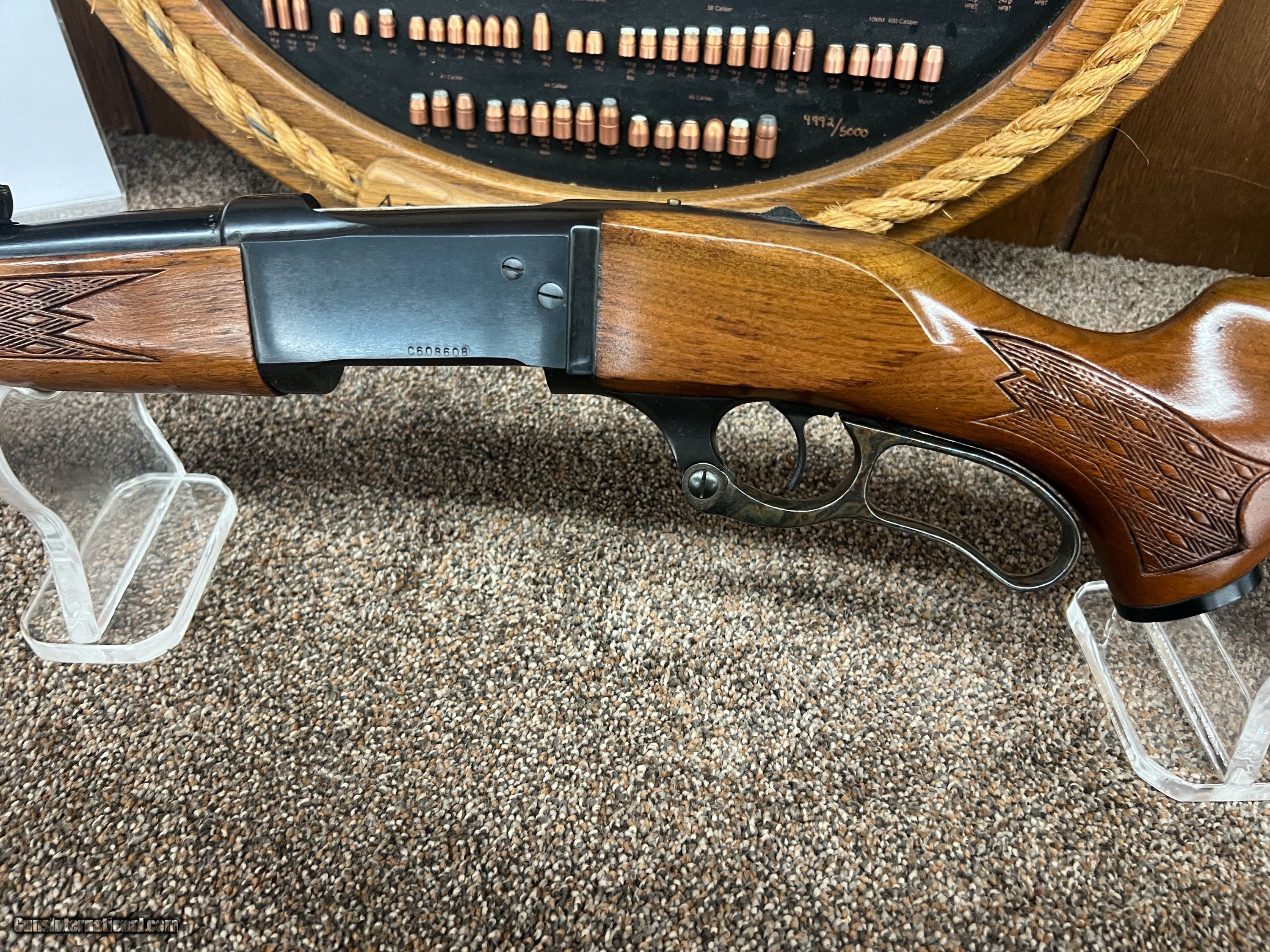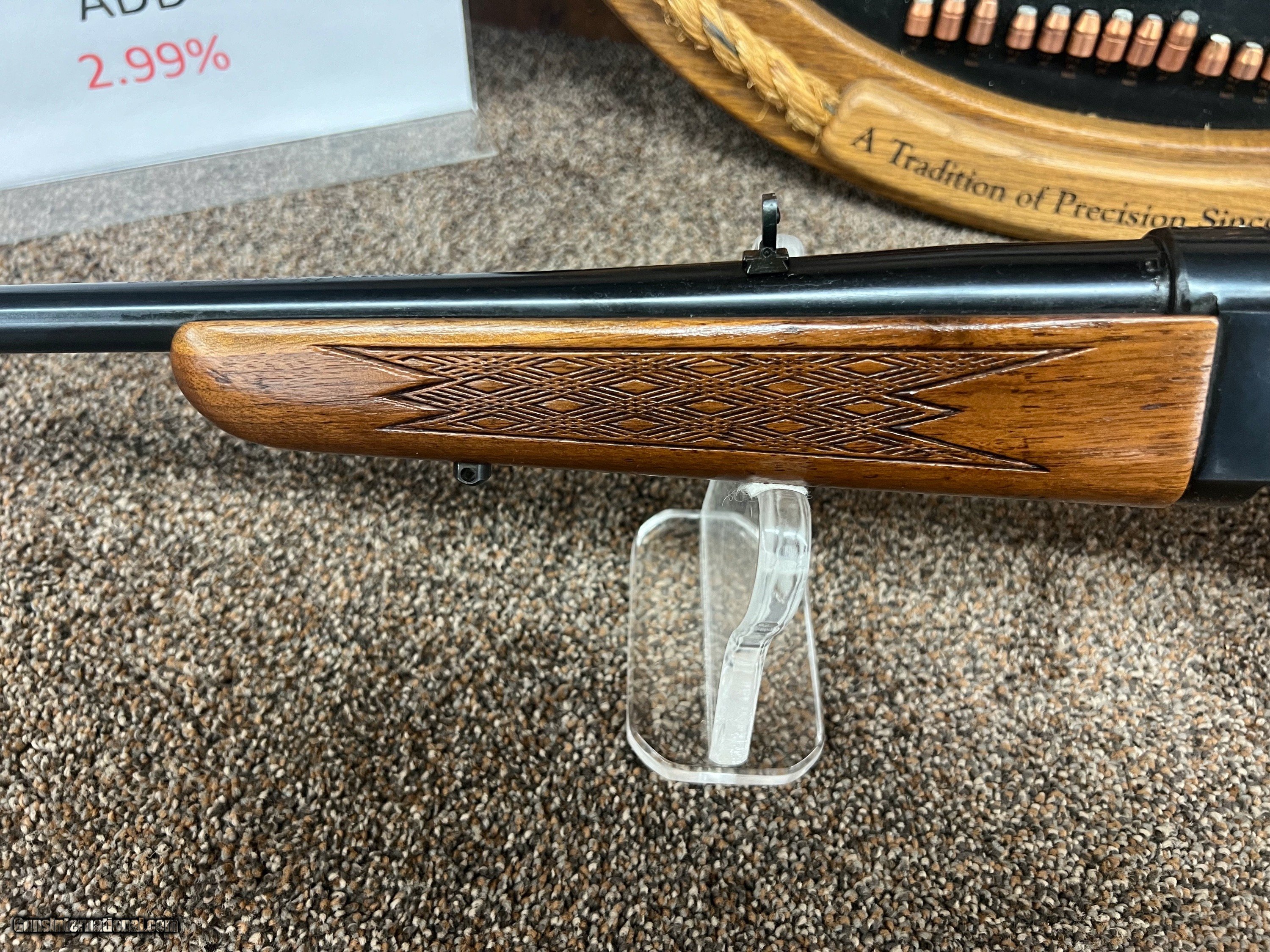 Description: Here's a nice lightly used Savage 99C series A 22-250, exc bore, 22" barrel, open sights, one magazine, impressed checkering, grip cap, plastic butt, some light marks nothing serious, a small crack at the bottom swivel stud as pictured, lots of case hardening on the lever still, top tang safety, a hard to find caliber! 50.00 shipping SOLD Rifle Caliber: .22-250 Remington |