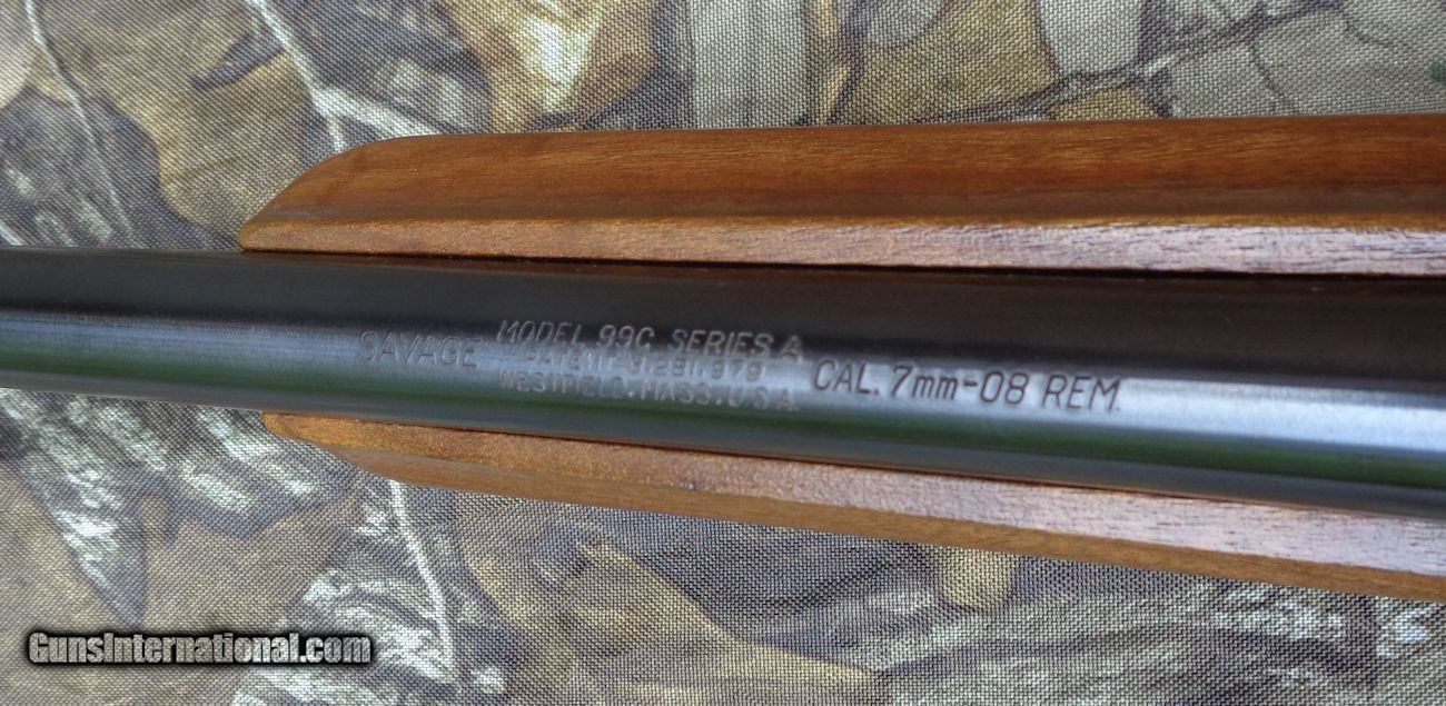 Description: *** SOLD *** SOLD *** "Collector grade" 1981 Savage 99C Series A clip model (serial # D725702) in the very desirable, difficult to find and very rarely seen 7mm-08 Remington caliber with a 22" straight tapered barrel, remaining in unfired, "just about mint" condition. Beautiful wood on this 99, excellent bluing and strong case colors on the lever makes this hardest to find and most desirable caliber even better. Look at the pictures! Don't miss your chance to put this 99 in your safe, it could be a long time before you find another 7mm-08 up for sale. $60 S&H to most of the lower 48. Eight far west states at $70 S&H. Post office money orders preferred for payment, with checks taking 2 or 3 days to clear. No warranty stated or implied by the seller. Consignment gun, no return. SOLD Rifle Caliber: 7mm-08 Remington Manufacturer: Savage Model: 99C Series A Serial Number: D725702 Metal Condition: excellent Wood Condition: excellent Bore Condition: excellent Action: lever Manufacture Date: 1981 Extras: rare caliber in the 99 |