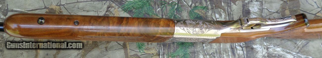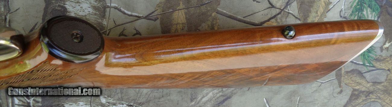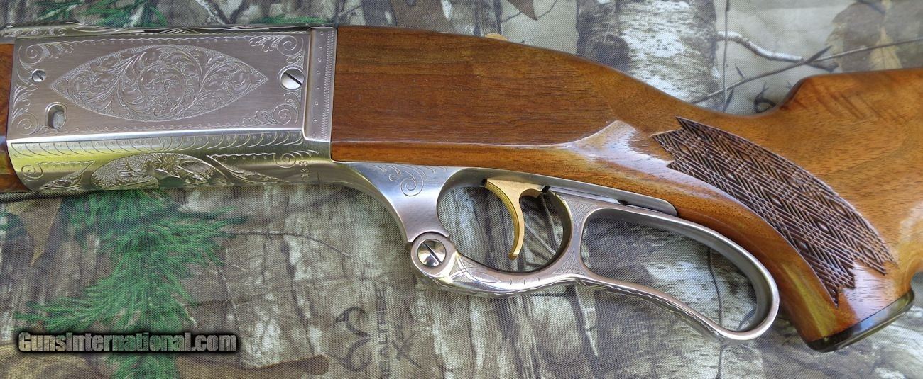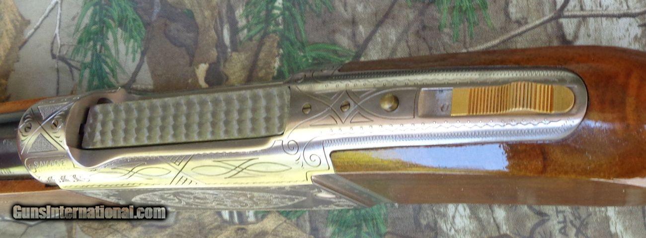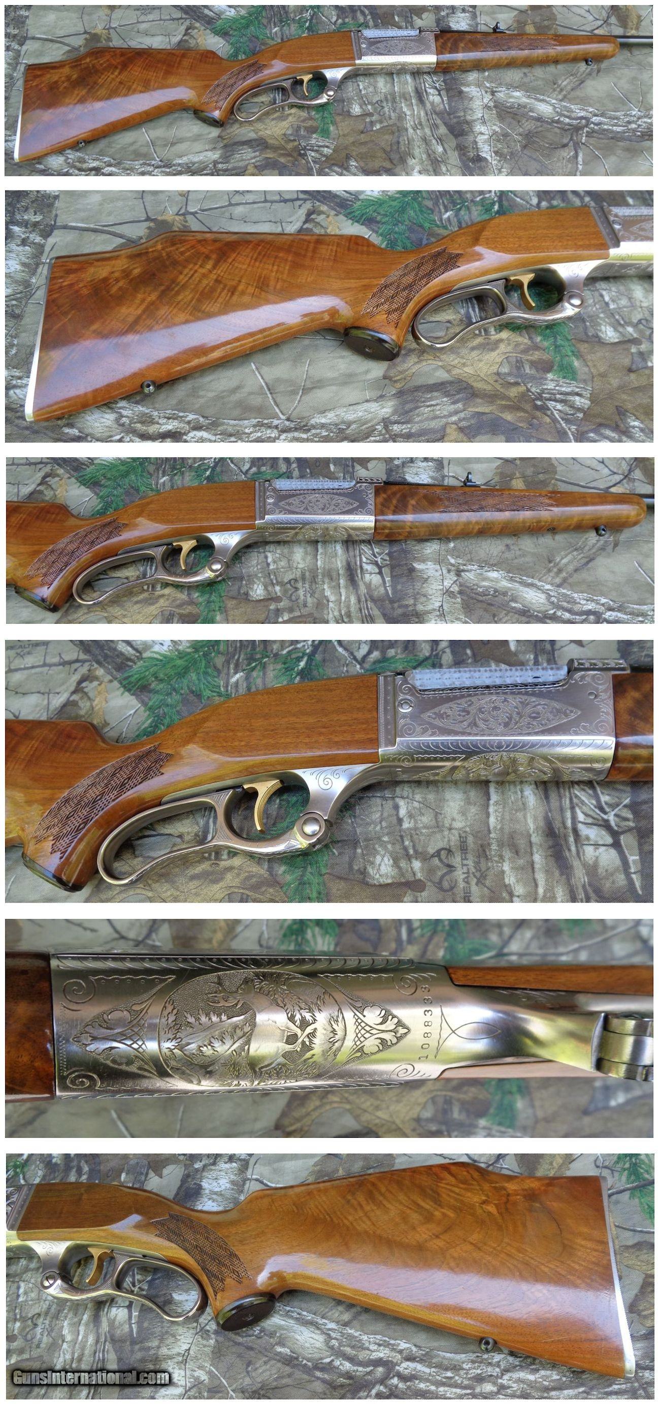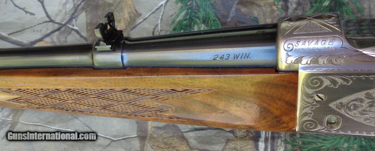 Description: *** SOLD *** SOLD *** "Collector grade" 1965 (first year of production) Savage 99DE Citation Grade (serial # 1088333) in the very desirable 243 Winchester with 22" barrel that remains in "just about mint" condition and unfired. Prized by many in the eastern part of the United States as the most desirable of of the CE, DE and PE series of 99s, because of the running whitetail buck engraved on the bottom of the receiver, that hunters and collectors in this part of the US can relate to. The 99DE does not come along very often and by far is the rarest of the CE, DE & PE series of engraved guns. Look at the pictures !! The DE was manufactured from 1965 to 1970 and was one of the first factory engraved guns since the 99K in 1940. The satin silver finished receiver has excellent coverage factory engraving with scroll on the left and the right side of the receiver and a running whitetail buck on the bottom. The Monte Carlo stock and forearm are made of highly figured American black walnut with fine hand cut checkering. This amazing Savage 99 DE can be yours if you call or e-mail. $90 S&H to most of the lower 48. Eight far west states at $100 S&H. Post office money orders are preferred for payment, with checks taking 2 or 3 days to clear. No warranty stated or implied by the seller. Consignment gun-no return. Lay-a-way is available! SOLD Curio/Relic: Yes Rifle Caliber: .243 Winchester Manufacturer: Savage Model: 99DE Citation Grade Serial Number: 1088333 Metal Condition: excellent Wood Condition: excellent Bore Condition: excellent Action: lever Manufacture Date: 1965 Engraving: yes, whitetail buck on receiver bottom Extras: very difficult to find |