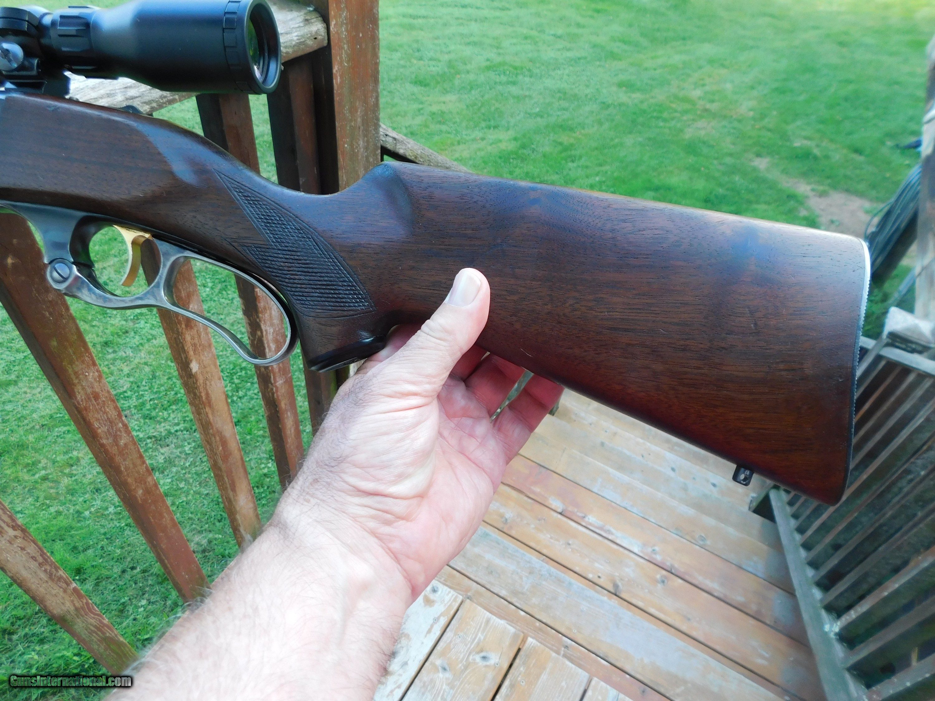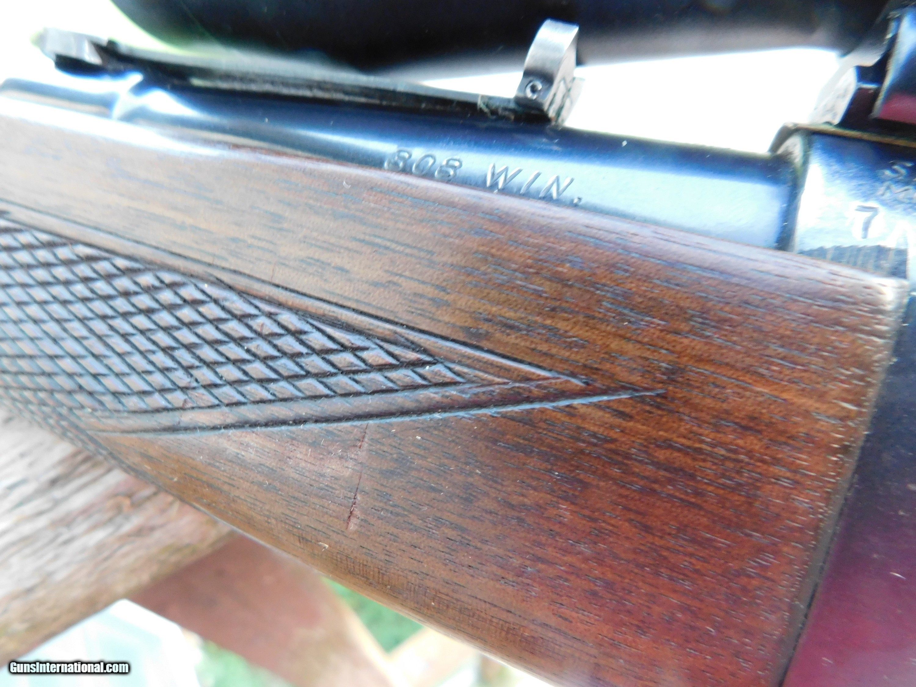 Description: SALE PENDING ROBT. W. GA 9/21/24 The quintesential New England and Upper Midwest Deer Rifle. Chambered in modern .308 Win with factory loadings at one time up to about 220 gr or more bullet wt. Good for game up to and including Moose and Elk in capable hands. There is some blue loss from carry on the receiver but ZERO pitting and no cracks or splits in the tang where these so often split .This is...just an honest 99 Featherweight that has been well used and well cared for. It is a 1961 gun and as such has the best of the old and the new:...In 1960 Savage changed from the lever to the more convenient tang safety yet still retains the classic hand checkering on the handsome American Walnut Stock set. There is abolutely no split at the tang where so many 99's did. It retains some case color on parts of the lever. In 1960 these had the nice damacented bolt, still had the brass rotoray mag, cartridge counter and cocking indicator. Still has the original steel butt plate and the stock is the correct factory lenght. Good original Savage 99 F (Featherweights") from the late 50's to mid 60's we be harder and harder to find as time goes on. Shipping is $ 59.00 F IT DOES NOT SAY ."SALE PENDING, UNDER DEPOSIT or ON HOLD"...IT IS AVAILABLE. WE DO NOT REPLY TO INQUIRIES THAT SAY "INTERESTED IN THIS GUN" OR "IS IT AVAILABLE" IF YOU WOULD LIKE TO BUY THIS OR ANY OF OUR GUNS WE SUGGEST YOU PHONE US; WE ARE OFTEN AVAIALABLE LONG HOURS. IF YOU ARE INTERSTED IN A GUN THAT IS UNDER DEPOSIT AND WOULD LIKE TO BE NOTIFIED IF A SIMILAR GUN COMES IN DROP US A LINE AND WE WILL MAKE EFFORTS TO CONTACT YOU WHEN ONE DOES COME IN. WE HAVE OVER 2000 SALES ON ALL SITES WITH AN A+ RATING ON ALL WE ALSO KEEP AN INVENTORY OF OLDER PERIOD CORRECT SCOPES; CALL WITH NEEDS WE MOSTLY PICK VERY CLEAN AND LIGHLTY USED GUNS. WE ARE HAPPY TO TAKE CONSIGNMENT GUNS AND COLLECTIONS OR WILL BUY YOURS OUTRIGHT. WE SOMETIMES ARE EMPLOYED FOR ESTATE PURPOSES AND VALUATIONS. AT THIS TIME WE ARE ONLY ACCEPTING US POSTAL MONEY ORDERS OR BANK CHECKS FOR PAYMENT IT IS THE BUYERS RESPONSIBILITY TO GET US A COPY OF YOUR RECEIVING FFL'S LIC AND A COPY OF YOUR PHOTO ID BEFORE THE GUN SHIPS YOU MUST CALL OR CONTACT YOUR FFL.WE DO NOT CALL FOR YOU UNLESS THEY RQUIRE IT. LAYAWAY PURCHASES NOT COMPLETED ON ANY RETURNED ITEM UNLESS NOT AS DESCRIBED OR DAMAGED ARE SUBJECT TO A 10% RELISTING/RESTOCKING FEE AND MUST BE RETURNED WITH NO NEW MARKS OR SCRATCHES, SENT BACK INSURED, PRIORITY SIGNATURE REQUIRED. ALL INFORMATION CONTAINED HEREIN IS BELIEVED TO BE ACCURATE BUT IS NOT GUARANTEED. WITH ANY OLDER OR USED GUN IT SHOULD BE INSPECTED BY A GUNSMITH PRIOR TO SHOOTING. SOLD |