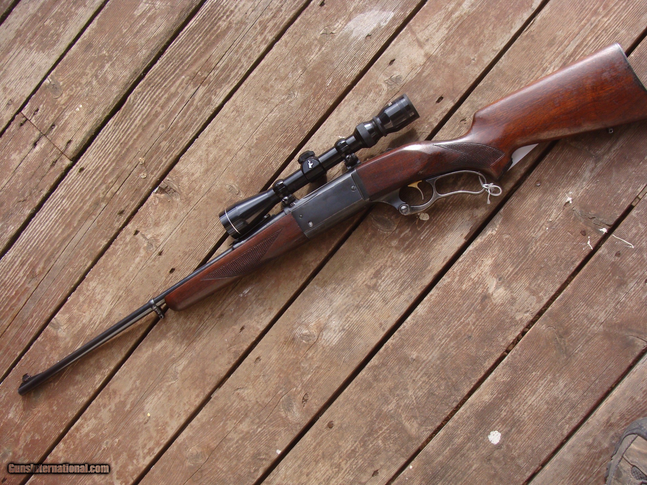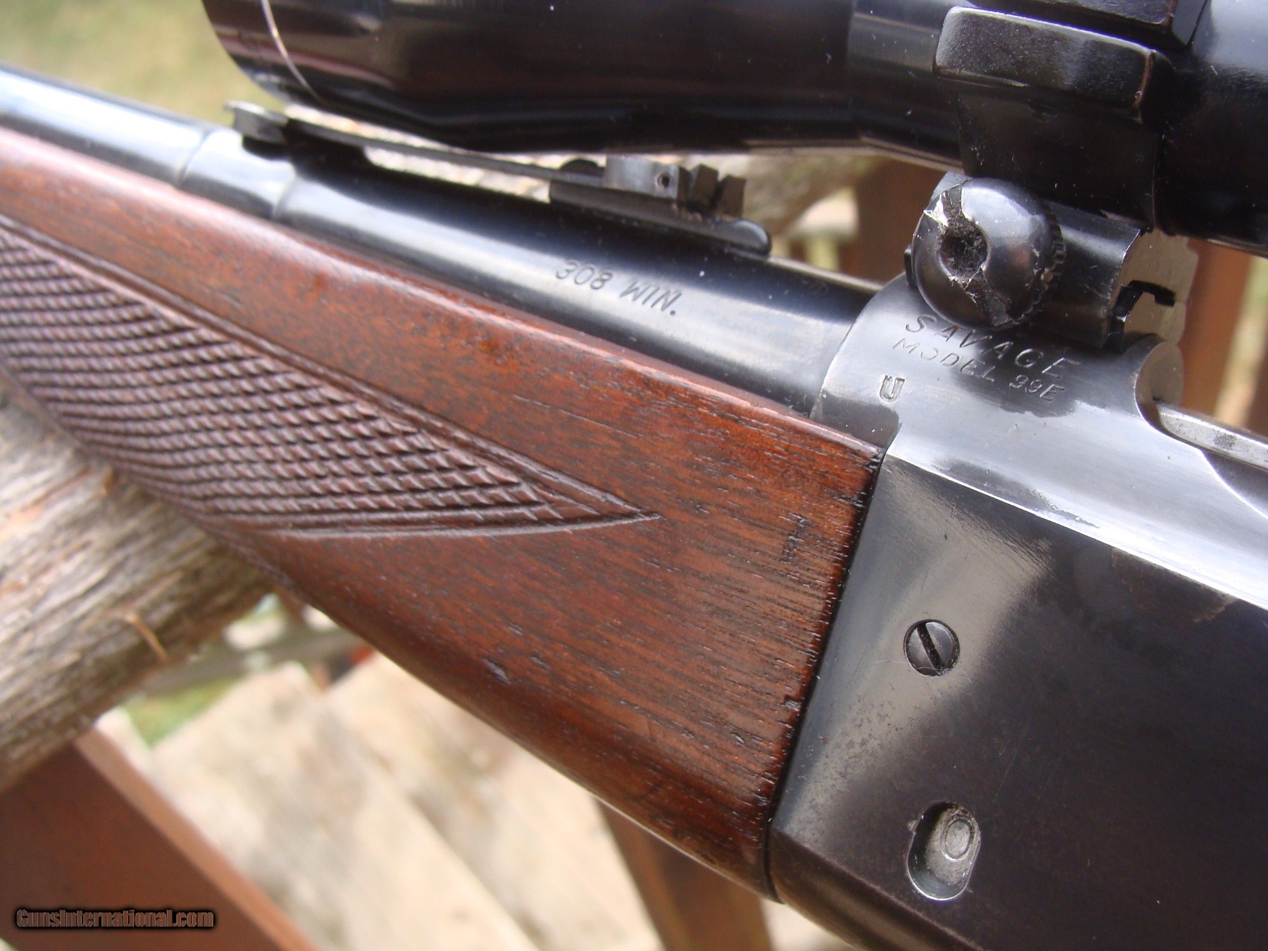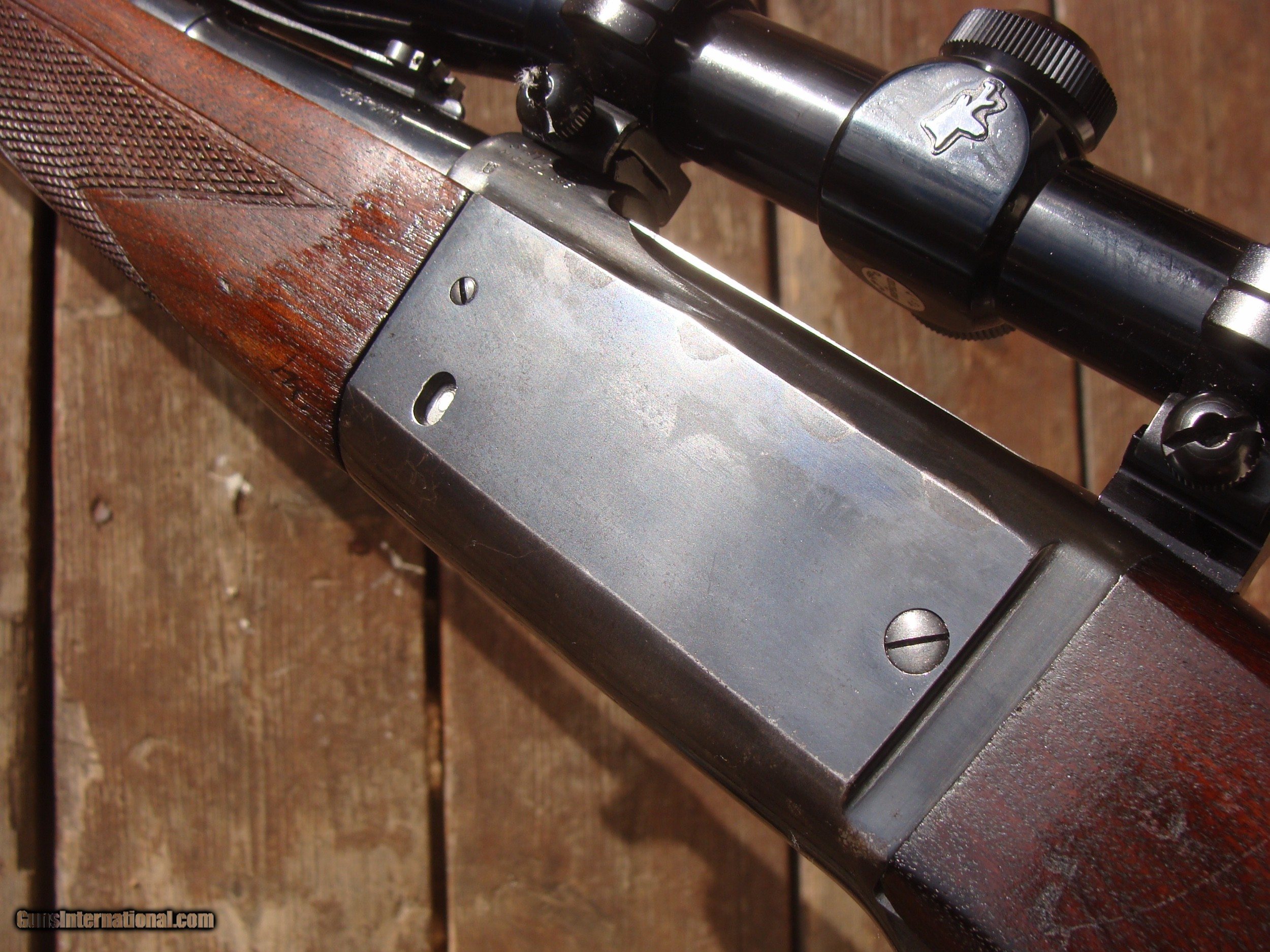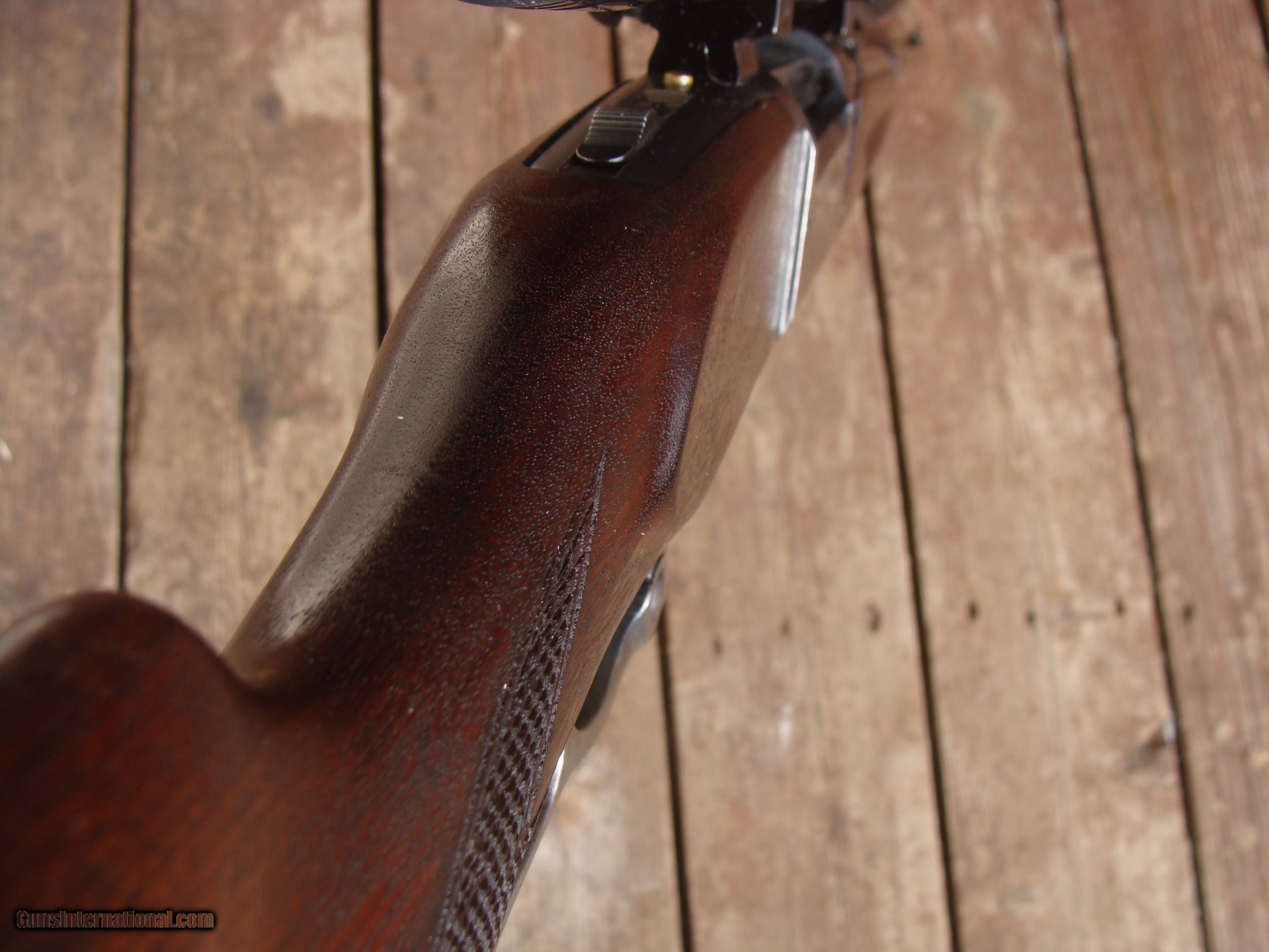 Description: This gun has all the best reatures of the older and semi modern 99's. In the desirable combination of 99F (Featherweight) chambered in .308 it has the more user friendly upper tang safety (vs the earlier lever safety), but still has the steel butt plate, the cartridge counter and cocking indicator. Handsome factory hand checkerd American Walnut Stock Set with near 90% of retained blue and stock finsihg with only modest handling and use marks. It is factory drilled for scope (it comes with an inexpensive but fully functional 3x9 duplex scope. It does NOT have the often found crack in the butt stock often found in the upper tang area and there have been no repairs. There are 4 small marks on the upper left side of the receiver. The correct factory butt plate has some crud but hese can usually be cleaned up nicely with a wire brush on a grinding wheel Please request additional pics if required to make your decision, the gun may not be returned for cosmetic issues unless not disclosed or shown in pics. We make every effort to present an accuart representation of the gun and its conditon Shipping is $ 55.00 IF IT DOES NOT SAY NEXT TO THE PRICE..."SALE PENDING OR UNDER DEPOSIT"...IT IS AVAILABLE. WE DO NOT REPLY TO INQUIRIES THAT SAY "INTERESTED IN THIS GUN" OR "IS IT AVAILABLE" IF YOU WOULD LIKE TO BUY THIS OR ANY OF OUR GUNS WE SUGGEST YOU PHONE US; WE ARE OFTEN AVAIALABLE LONG HOURS. IF YOU ARE INTERSTED IN A GUN THAT IS UNDER DEPOSIT AND WOULD LIKE TO BE NOTIFIED IF A SIMILAR GUN COMES IN DROP US A LINE AND WE WILL MAKE EFFORTS TO CONTACT YOU WHEN ONE DOES COME IN. WE HAVE OVER 2000 SALES ON ALL SITES WITH AN A+ RATING ON ALL WE ALSO KEEP AN INVENTORY OF OLDER PERIOD CORRECT SCOPES; CALL WITH NEEDS WE MOSTLY PICK VERY CLEAN AND LIGHLTY USED GUNS. WE ARE HAPPY TO TAKE CONSIGNMENT GUNS AND COLLECTIONS OR WILL BUY YOURS OUTRIGHT. WE SOMETIMES ARE EMPLOYED FOR ESTATE PURPOSES AND VALUATIONS. CT RESIDENTS MUST CONTACT US TO UNDERSTAND OUR IN STATE TRANSFER POLICIES. PAYMENT USPS MONEY ORDER ONLY AT THIS TIME. ( WE CAN TAKE A DEPOSIT WITH A CARD BUT THE GUN MUST BE PAID WITH A USPS MONEY ORDER) SOME EXCEPTIONS ARE AVAIL. IT IS THE BUYERS RESPONSIBILITY TO GET US A COPY OF YOUR RECEIVING FFL'S LIC AND A COPY OF YOUR PHOTO ID BEFORE THE GUN SHIPS YOU MUST CALL YOUR FFL.WE DO NOT CALL FOR YOU. LAYAWAY PURCHASES NOT COMPLETED OR ANY RETURNED ITEM UNLESS NOT AS DESCRIBED OR DAMAGED ARE SUBJECT TO A 10% RELISTING/RESTOCKING FEE AND MUST BE RETURNED WITH NO NEW MARKS OR SCRATCHES, SENT BACK INSURED, PRIORITY SIGNATURE REQUIRED. ALL INFORMATION CONTAINED HEREIN IS BELIEVED TO BE ACCURATE BUT IS NOT GUARANTEED. WITH ANY OLDER OR USED GUN IT SHOULD BE EXAMINED BY A GUNSMITH OR COMPETENT EXPERT PRIOR TO USE) SOLD |