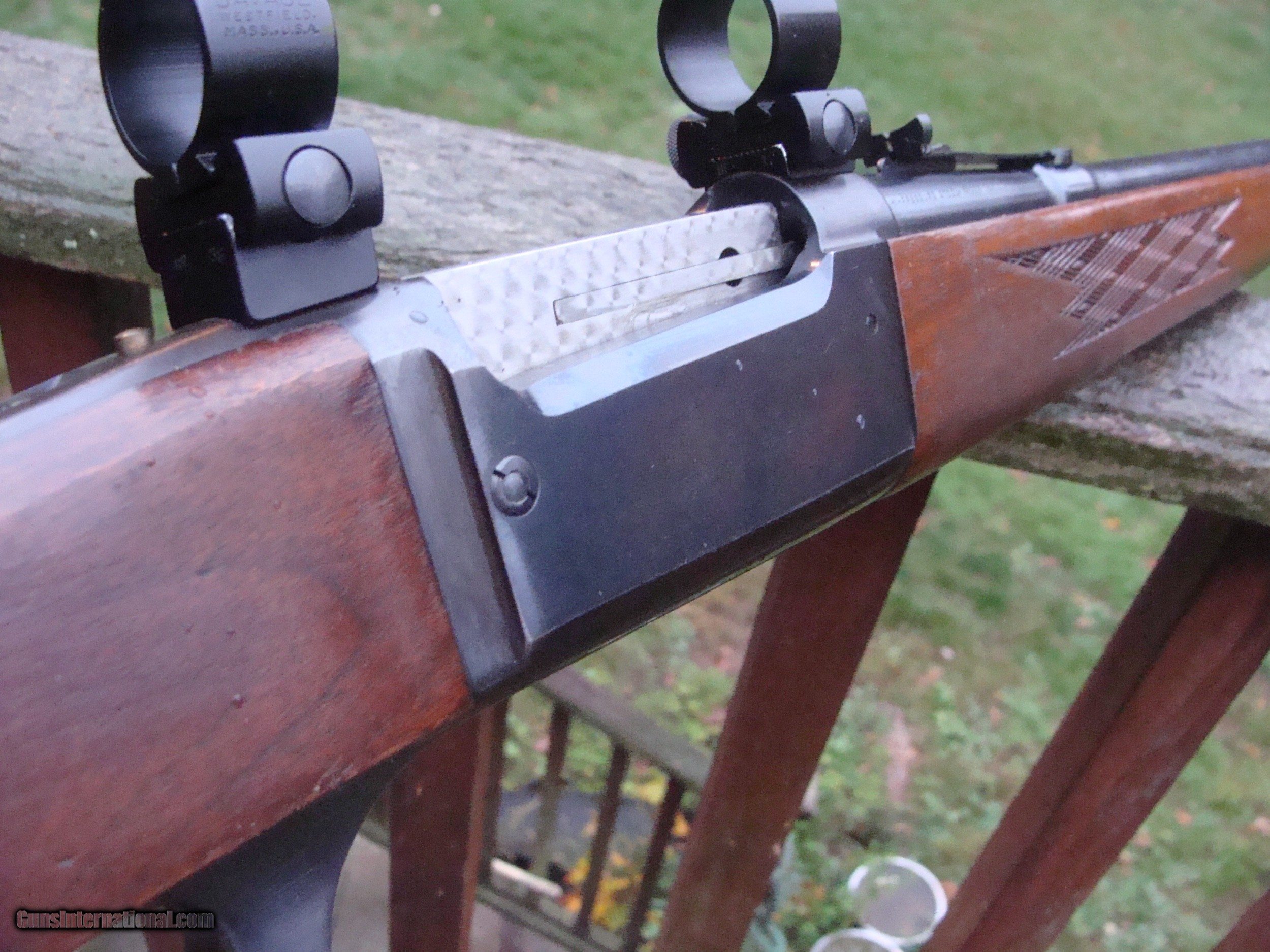 Description: This fine old 99 (1967) F Featherweight is in the most sought after combination: F in .308. This is a later gun employing some of the best of early and later features: very nice factory engine turned bolt showing almost no wear, with the better tang safety vs the earlier combersom lever safety. Most of the case color on the lever remains, the blue on barrel and receiver are in almost new conditon with little sign of handling or use. The walnut stock set has a few modest scratches and a little finish wear. The correct corregated steel butt plate has a little crud but should clean up very nicely. Hard to find F models n 308 esp near hunting seasons. Unique to this gun is a set of Savage Rings ! It did not come with a scope but we have in stock many older perod correct US Made Weavers and Redfields that should go nicely with this gun. Sling swivel studs have been removed for some reason but are easly replaced for a few dollars. This gun does NOT have the characteristic crack at the upper tang found on so many 99's Shipping is $ 55.00 WE HAVE OVER 2000 SALES ON ALL SITES WITH AN A+ RATING ON ALL (WE ALSO KEEP AN INVENTORY OF OLDER PERIOD CORRECT SCOPES; CALL WITH NEEDS) WE MOSTLY PICK VERY CLEAN AND LIGHLTY USED GUNS. WE ARE HAPPY TO TAKE CONSIGNMENT GUNS AND COLLECTIONS OR WILL BUY YOURS OUTRIGHT. WE SOMETIMES ARE EMPLOYED FOR ESTATE PURPOSES AND VALUATIONS. CT RESIDENTS MUST CONTACT US TO UNDERSTAND OUR IN STATE TRANSFER POLICIES. WE CAN TAKE A CREDIT CARD HOWEVER THERE IS A 3% ADD ON BASED ON THE TOTAL FOR USE OF A CARD. IT IS ALWAYS THE BUYERS RESPONSIBILITY TO GET US A COPY OF YOUR RECEIVING FFL'S LIC AND WE REQUIRE A COPY OF YOUR PHOTO ID BEFORE THE GUN SHIPS YOU MUST CALL YOUR FFL.WE DO NOT CALL FOR YOU. LAYAWAY PURCHASES NOT COMPLETED OR ANY RETURNED ITEM UNLESS NOT AS DESCRIBED ARE SUBJECT TO A 10% RELISTING/RESTOCKING FEE AND MUST BE RETURNED WITH NO MARKS OR SCRATCHES, SENT BACK INSURED, PRIORITY SIGNATURE REQUIRED WE DO NOT OFFER AN INSPECTION PERIOD PER SE HOWEVER GUNS MAY BE RETURNED IF NOT EXACTLY AS DESCRIBED UNDER NO CIRCUMSTANCE MAY ANY GUN TO BE RETURNED HAVE BEEN REMOVED AT ANY TIME FROM RECEIVING FFL DEALERS PREMISIS AND RETURNS MUST 1ST BE APPROVED BY US IN WRITING. SOLD |