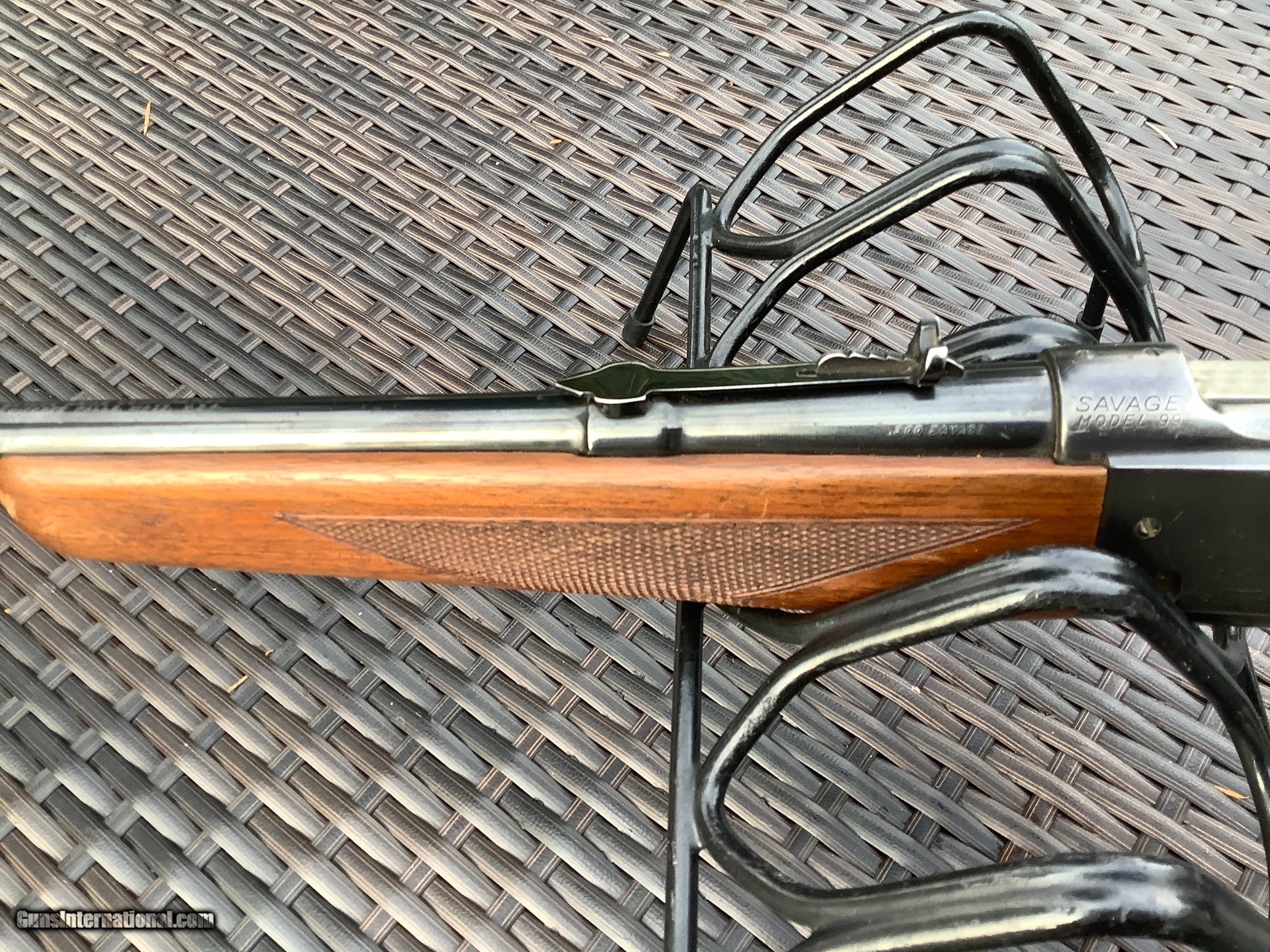 Description: Very nice 99F Featherweight rifle chambered in 300 Savage. Manufactured in 1956. 22" tattered barrel, and color case hardened lever. A few scratches and dings are evident in the pictures. Asking price includes shipping to FFL or C&R licensee. SOLD Curio/Relic: Yes Rifle Caliber: .300 Savage Manufacturer: Savage Model: 99F Serial Number: 776486 Barrel Length: 22” Condition: Very Good Metal Condition: Very Good Bore Condition: Bright |