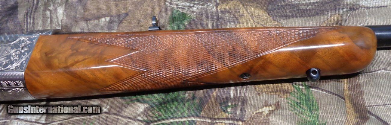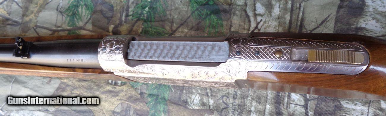 Description: *** SOLD *** SOLD *** "Collector grade" 1967 Savage 99PE Presentation Grade (serial # 1157009) in the very desirable and very elusive 243 Winchester with 22" barrel remaining in "just about mint" condition, unfired with factory box, hang tag and other paperwork. The 243 Winchester is one of the most sought after of the three calibers that were offered, 308,284 & 243, in the 99PE and hardest to find, as far as I'm concerned. I have had nine PEs come through my shop over the last three years or so, six were in the 308 Winchester, two were 284 and finally this 243 Winchester. It comes with knock-out wood and full of beautiful grain end to end. Look at the pictures ! The PE was manufactured from 1965 to 1970 and was one of the first factory engraved guns since the 99K in 1940. The satin silver finished receiver has full coverage, factory engraving with a mountain lion on the right receiver and a bull elk on the left receiver. The Monte Carlo stock and forearm are made of highly figured American black walnut with fine hand cut checkering. This amazing Savage 99 PE can be yours if you call or e-mail. $100 S&H to most of the lower 48. Eight far west states at $120 S&H. Post office money orders are preferred for payment, with checks taking 2 or 3 days to clear. No warranty stated or implied by the seller. Consignment gun-no return. Lay-a-way is available! SOLD Rifle Caliber: .243 Winchester Manufacturer: Savage Model: 99PE Presentation Serial Number: 1157009 Metal Condition: excellent Wood Condition: excellent Bore Condition: excellent Action: lever Manufacture Date: 1967 Engraving: PE Presentation engraving Extras: hard to find 243 Winchester in the 99PE |