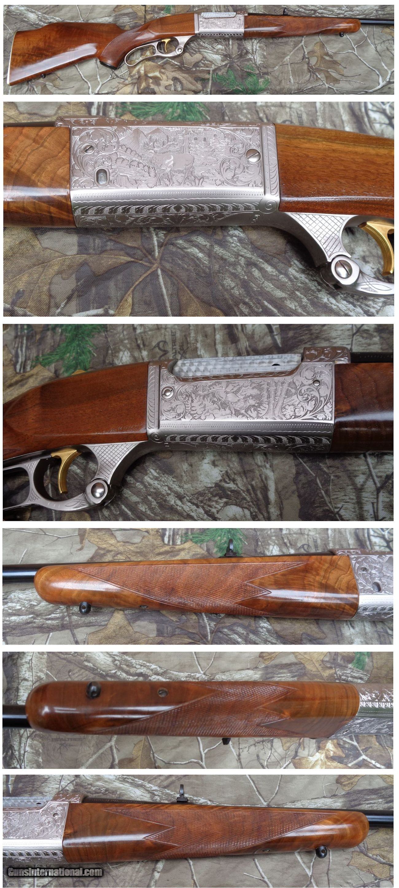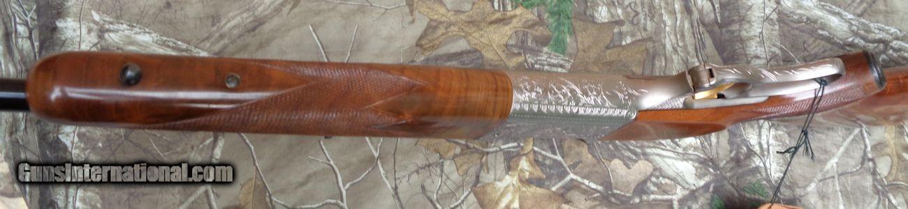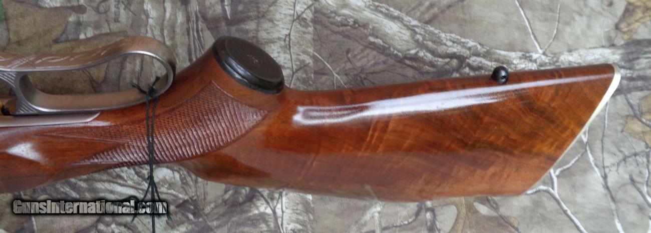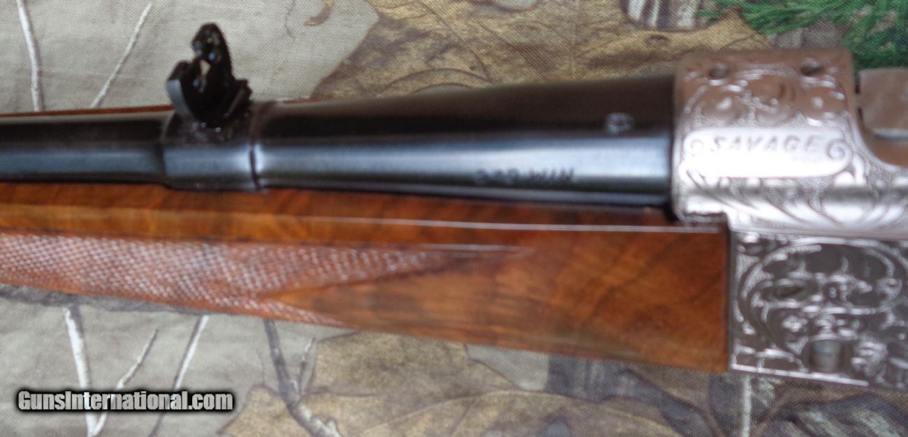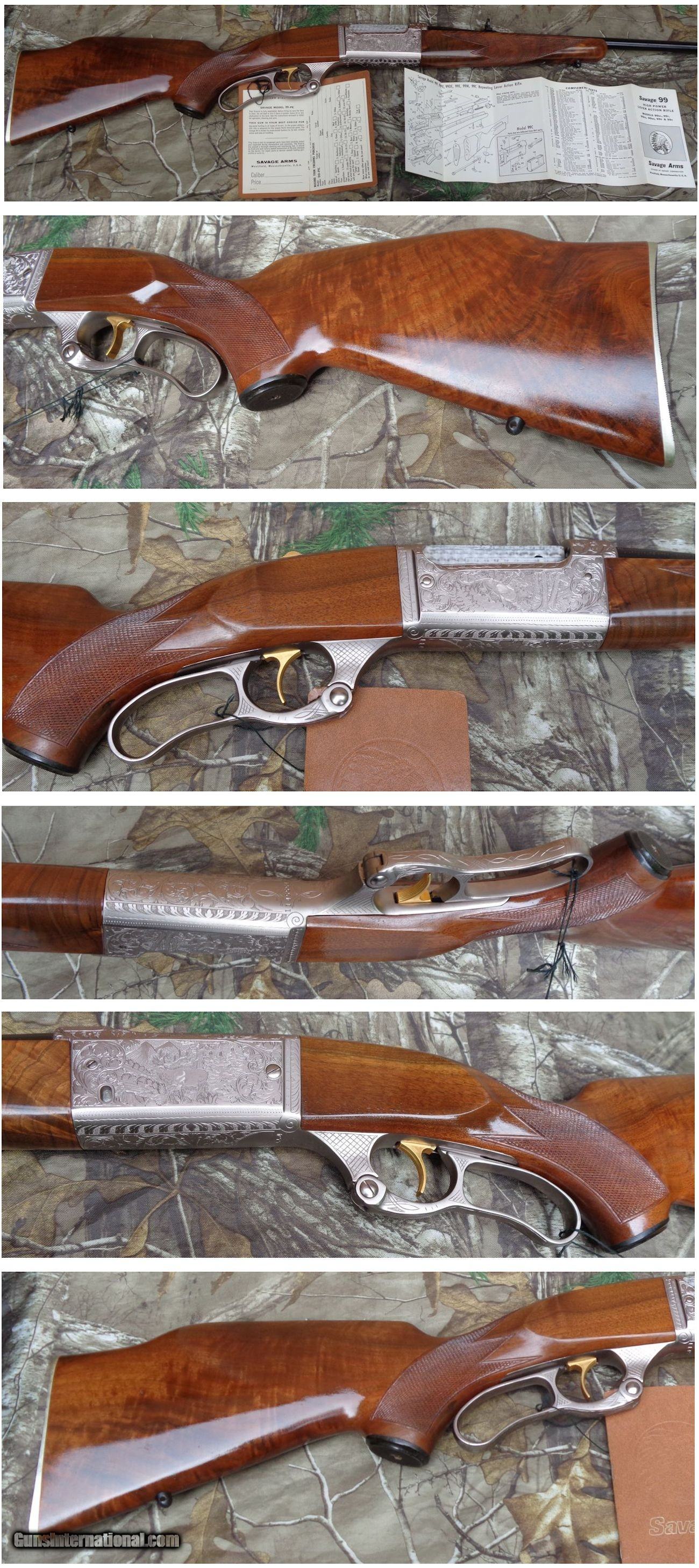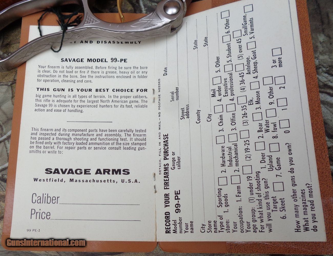 Description: *** SOLD *** SOLD *** "Collector grade" 1967 Savage 99PE Presentation Grade (serial # 1145554) in the very desirable and very elusive 243 Winchester with 22" barrel remaining in "just about mint" condition and unfired, hang tag with parts schematic. The 243 Winchester is one of the most sought after of the three calibers that were offered, 308,284 & 243, in the 99PE and one of the hardest to find. I have had ten PEs come through my shop over the last three years or so, six were in the 308 Winchester, two were 284 and this is only my second PE in the 243 Winchester. It comes with just killer wood and full of beautiful grain, forearm to butt plate. Look at the pictures ! The PE was manufactured from 1965 to 1970 and was one of the first factory engraved guns since the 99K in 1940. The satin silver finished receiver has full coverage, factory engraving with a mountain lion on the right receiver and a bull elk on the left receiver. The Monte Carlo stock and forearm are made of highly figured American black walnut with fine hand cut checkering. This amazing Savage 99 PE can be yours if you call or e-mail. $100 S&H to most of the lower 48. Eight far west states at $120 S&H. Post office money orders are preferred for payment, with checks taking 2 or 3 days to clear. No warranty stated or implied by the seller. Consignment gun-no return. Lay-a-way is available! SOLD Curio/Relic: Yes Rifle Caliber: .243 Winchester Manufacturer: Savage Model: 99PE Presentation Grade Serial Number: 1145554 Metal Condition: excellent Wood Condition: excellent Bore Condition: excellent Barrel Type: lightweight Action: lever Manufacture Date: 1967 Extras: hang tag |