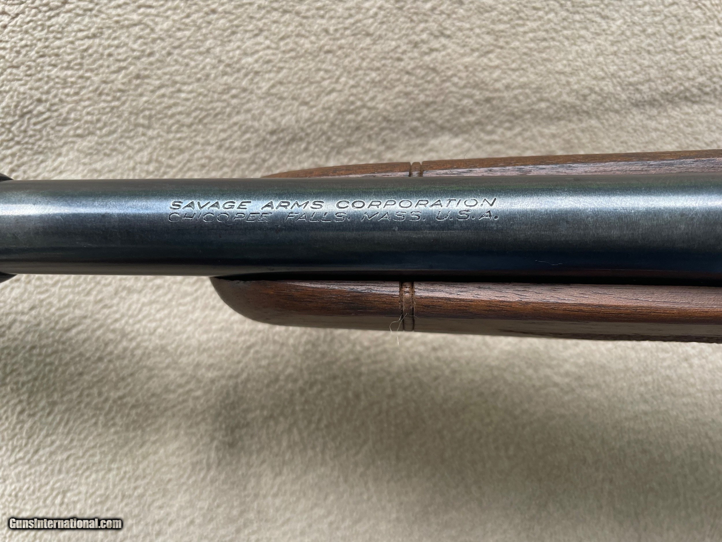 Description: Savage 99R 22" barrel chambered for 250-3000 Savage. Bore is good. Has been drilled and tapped. Base included. Wood and metal have usual marks from use. Barrel band installed for a sling. Case remains on lever. Overall a good using gun. $40 shipping. SOLD Rifle Caliber: .250-3000 Savage Barrel Length: 22” Condition: Good |