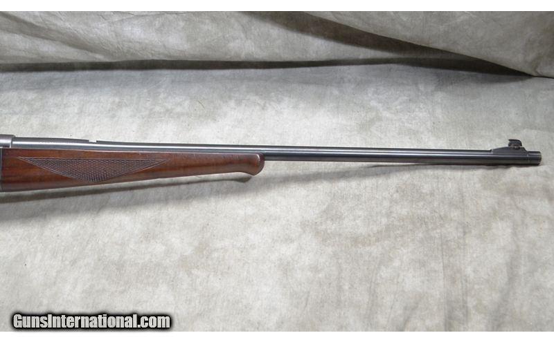 Description: Good workhorse Model 99 from 1950. The rear sight has been removed to accommodate the use of the Williams peep. Wood has nice grain and metal is in good shape. .300 Savage SOLD Curio/Relic: Yes Chambers: 6 Metal Condition: Good. Blue wear around the muzzle and some scattered shallow pits on the receiver. Wood Condition: Good. Nice grain and stands proud of the metal. There are a number of shallow scratches on all surfaces. One bad one on the left side of the forearm. Bore Condition: Shiny and bright with good rifling. Barrels: 24 inch. Triggers: Factory trigger. Stock Dimensions: 13-1/8 inch LOP. Fore End: Schnabel. Butt Pad: Steel plate. Weight: 7 lb - 8 oz Sights: Gold bead and Williams peep sight. Item Location: Rogers |