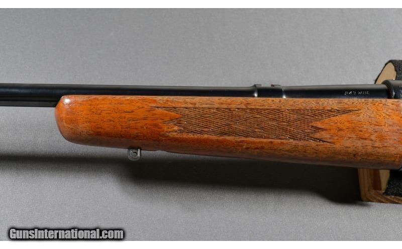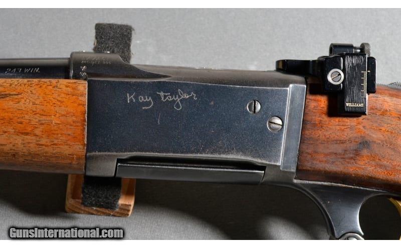 Description: The Savage Model 99C, Model 1899 is a hammerless lever action rifle created by the Savage Arms Company in Utica, New York. The Model 99 family featured a unique rotary magazine. Eventually releasing a box magazine variant the 99C , this is one of those rifles. The serial number putting this rifle as a possible manufacture of 1966. Fixed with a recoil pad, a Williams peep sight, and a rear tang safety. The metals look good and the wood's varnish is lacking with most of the original varnish and color gone from being exposed to the elements. A previous owner stippled "Kay Taylor" into the right side of the receiver, possibly their name or the name of a family member. .243 Winchester SOLD Barrels: 22 inches Item Location: Lacey, WA |