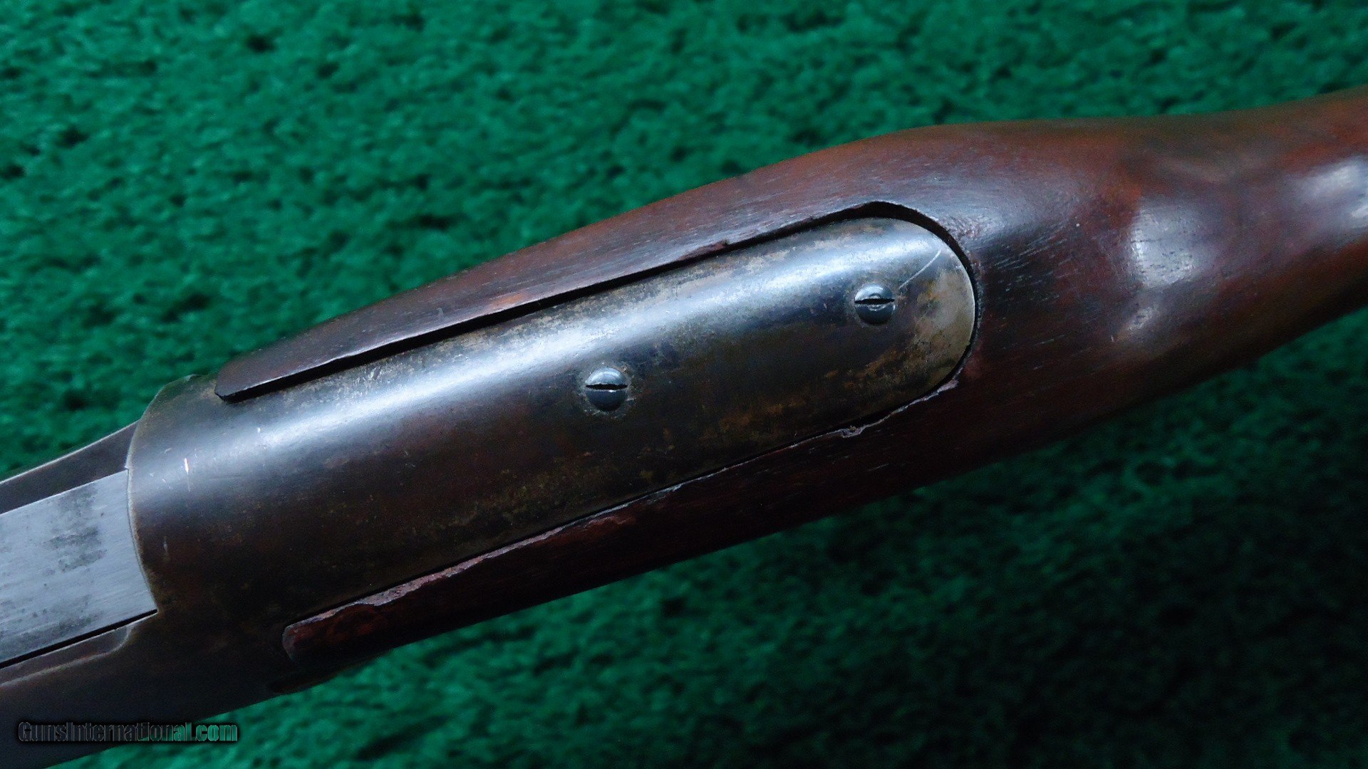 Description: Gun has a 26 inch round barrel. Features of the period buckhorn rear sight and blade insert front sight. Over all metal is in fair condition with what appears to be some cold blue added in areas. Traces of original blue. Stock includes a rifle style shotgun but and hard rubber buttplate. Not a bad old gun with a good shootable bore. Leroy Merz Antique Firearms specializes in antique and vintage Winchesters and other fine American firearms. Since 1965 Mr. Merz has taken part in the world of firearms and has been a contributor to many well known reference books. We have hundreds of additional guns in every price range at our home online. Search for Merz Antiques in google. SOLD Curio/Relic: Yes |
