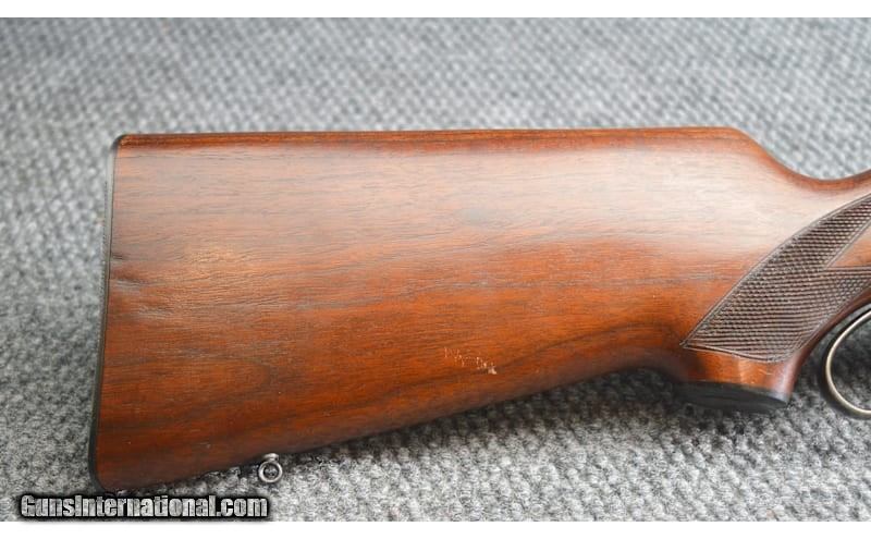 Description: One of the most unique hunting rifles ever made, the Savage Model 99 is a full-rifle caliber lever action rifle that is fed via a 5-round rotary magazine. The rifle sports a 24" barrel with a full length of 44", weight of 6 lbs, and is built with American walnut furniture. This model is built with a Redfield peep rear sight, and has remained in excellent condition overall. A few scratch marks can be seen on the stock, most notably around the handguard, however, the original bluing has remained in excellent shape with some patina on the lever and end of the muzzle. No extras are included. Chambered in .300 Savage. .300 Savage Metal Condition: "Original bluing, slight patina on lever Wood Condition: "A few scratches to stock, original varnish and checkering Bore Condition: "Strong rifling, intact bore Barrels: Rifled Triggers: Single Fore End: "Wood, excellent condition Butt Pad: "Metal buttpad, excellent condition Weight: 6 lbs Sights: "Iron Sights, Redfield rear peepsight Item Location: Gainesville, VA Price: $829.99 Contact Seller |