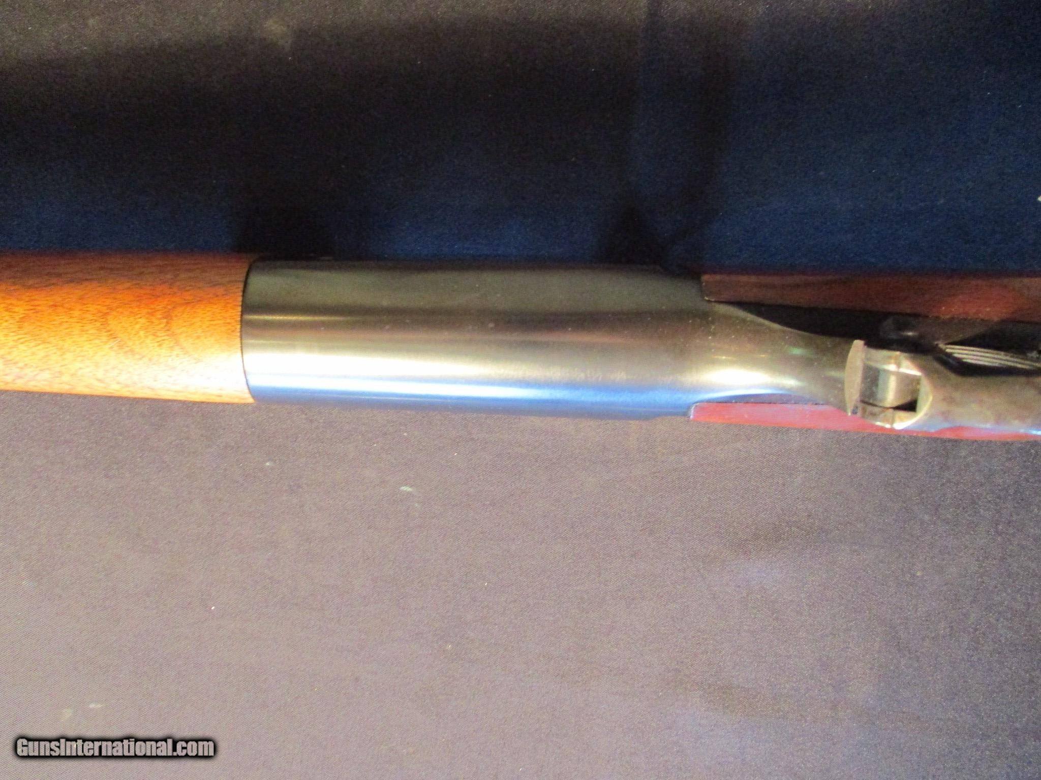 Description: Savage Model 99A, 308 Winchester, 20" barrel. Factory drilled and tapped, comes with the bases as shown. Factory finish on both wood and metal, nice clean all original gun. SN is A6816xx. Email me if you would like these pics sent to you, they will come through bigger and better than on the listing page here. We do offer Lay-A-Way. Our standard terms are 25% down, 90 days. Initial deposit is not refundable. Email me with any questions. I am a store front dealer, and I will close s if the gun sells locally. Once it has aI will pull it from my shelves. Please check your local laws to confirm it is legal to own in your state! Buyer pays $25 shipping and insurance to your FFL in the lower 48. AK, HI or PR is extra. I will ship to California, NO PROBLEM! All my guns come with a non firing, 3 day unconditional return privilege, from the day UPS delivers to your dealer. Buyer pays shipping both ways if the gun comes back. I can add a new hard case by PLANO for secure shipping for $25 if the buyer wishes (highly recommended, cheap insurance, really helps keep the UPS monster from eating my guns!). No sales tax on guns ship out of Kansas, guns sold in Kansas are subject to Kansas sales tax. I am a licensed FFL, and will include a copy of my FFL with the gun for your dealers records. I will ship to a C&R if the gun is eligible. I will ship to California, but you need to confirm the gun is legal where you are, California or other. I am always looking for good clean, old original Winchesters to buy, consign, or trade, especially pre '64's model 70's and model 54's. WE ALSO TRADE FOR CLASSIC CARS AND TRUCKS! Email me with any questions, and good luck! SOLD |