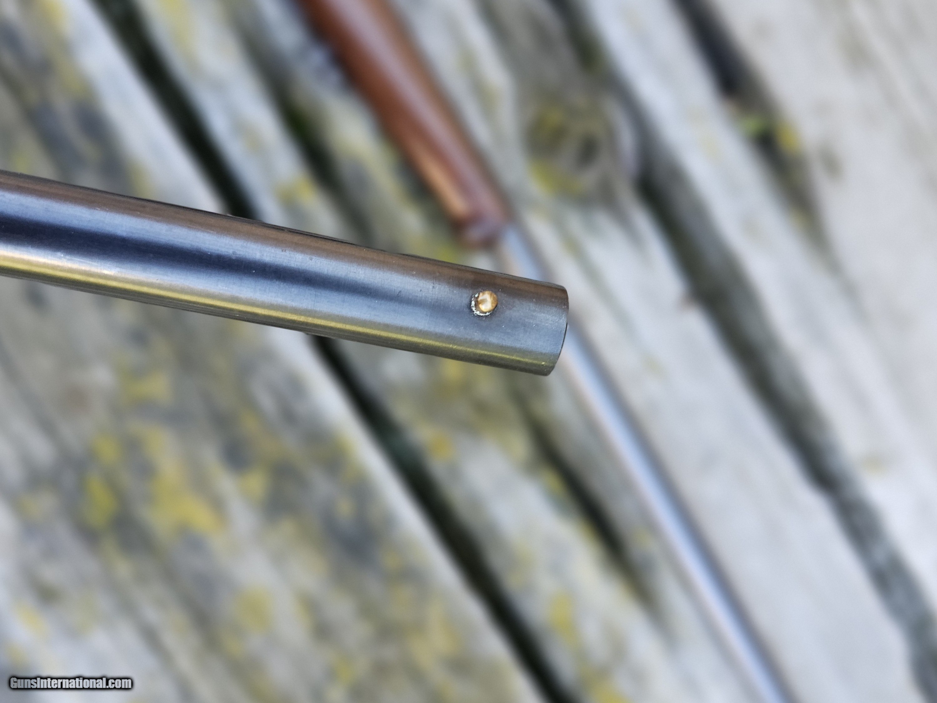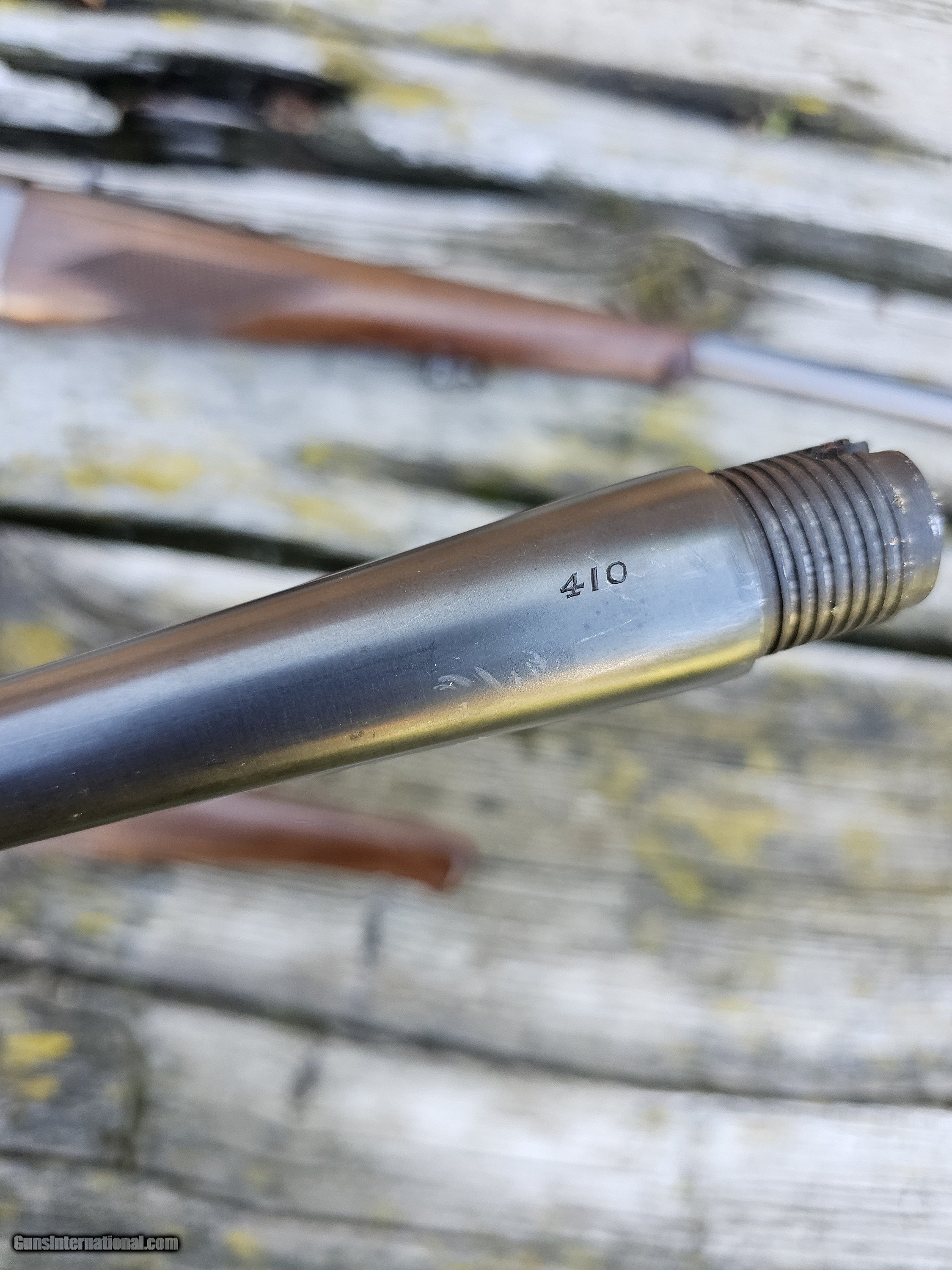 Description: Here is a fine Model 99 take-down in .300 Savage with an extra .410 barrel, built in 1941. The rifle barrel is 24" with an excellent bore. The shotgun barrel is 24" with a 2 1/2" chamber and also has an excellent bore, and a fore-end numbered to the gun. The walnut stocks are in very good condition with no cracks. The rear sling swivel is missing. The length of pull is 13 1/4" over a grooved steel butt-plate with a Savage logo. A wonderful Savage two-barrel set for the collector or shooter. Curio/Relic: Yes Rifle Caliber: .300 Savage Price: $1,950.00 Contact Seller |