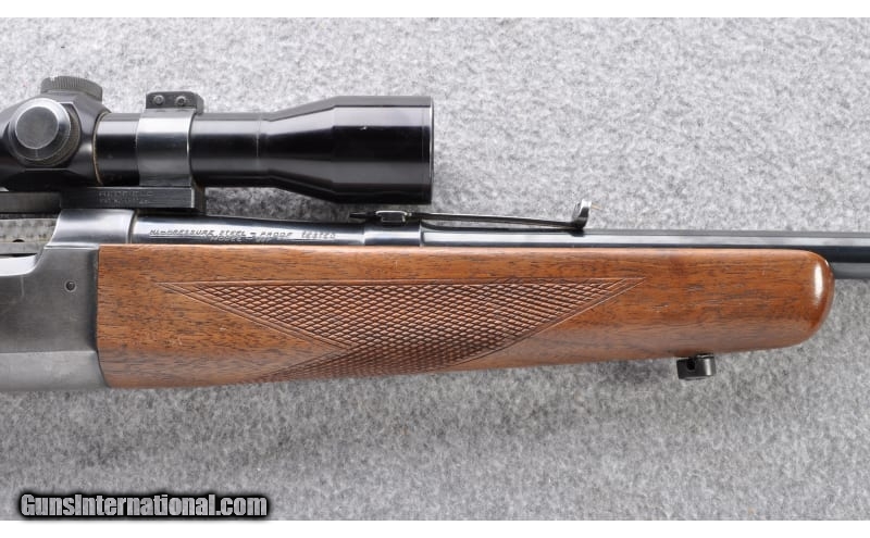 Description: The Savage 99 was well ahead of its time in design and technical aspects. The rifle presented here was manufactured about 1957. The .250-3000 Savage cartridge was the first commercial ammunition that reached or exceeded the 3000 feet per second mark. .250-3000 Savage SOLD Chambers: .250-3000 Savage in a five round internal rotary magazine Metal Condition: "Good, showing a fair amount of blue loss at the carry points, lever and muzzle Wood Condition: "Good, with a few scratches and flattened areas in the checkering Bore Condition: The bore is bright with crisp rifling Barrels: 22 Stock Dimensions: 13" LOP Fore End: Checkered walnut with sling stud Butt Pad: Metal serrated Weight: 7 Lbs. 14 Oz. Sights: "Ramped front, sporting leaf rear & a Lyman All-American 4X scope on Redfield base & rings Item Location: Grand Junction, CO |