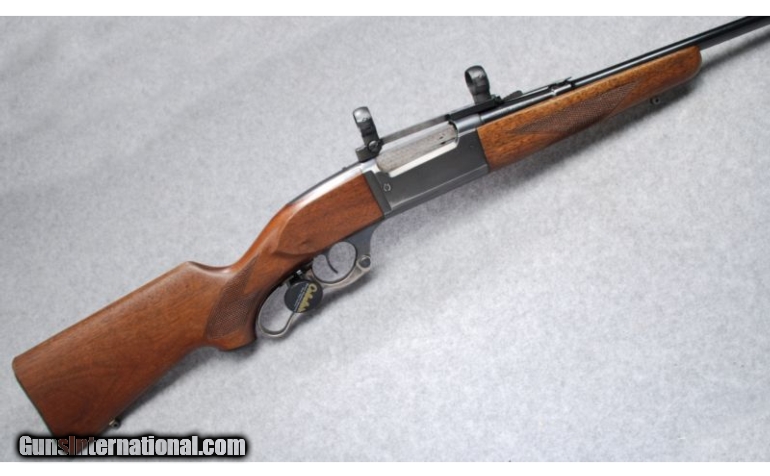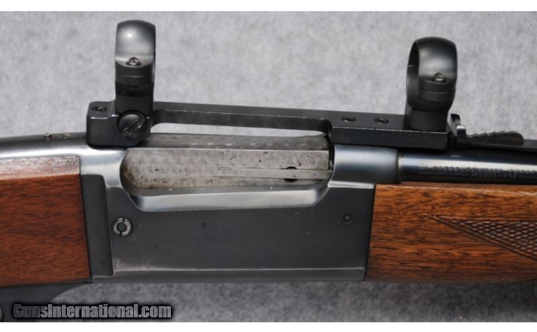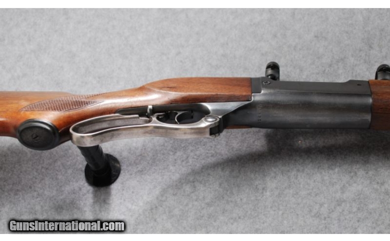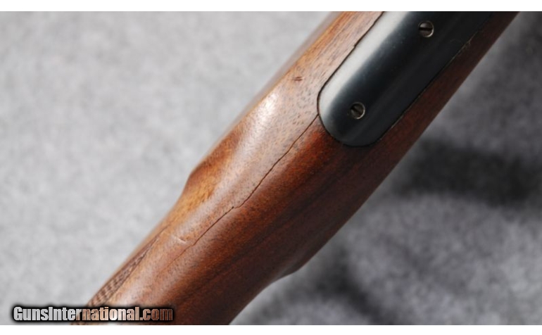Description: SOLD Manufacturer: 1956. Caliber Info: .300 Savage Metal Condition: There are scattered handling marks and light scratching to the bluing on both the barrel and receiver. There is a bit more bluing wear to the sharp edges and bottom of the receiver, more than likely from being carried. Almost all of the case color finish Wood Condition: There is a large crack behind the top tang (see picture). There are impressions, handling marks and light scratches scattered on both the fore end and stock. However, there are no major marks (other than the listed crack). Bore Condition: The bore is bright and shiny, with strong, sharp rifling. Barrels: 22 Stock: Checkered pistol grip stock. Stock Dimensions: 13" LOP Fore End: Checkered feild style fore end. Butt Pad: Serrated metal plate. Weight: 7 lbs. 4 oz. as pictured. Sights: Drilled and tapped for scope mounts and comes with Leupold mounts and rings. Also has open iron sights with elevation adjustable rear and post front that was painted orange at one time (see picture). Extras: None. Item Location: East Hartford, CT |