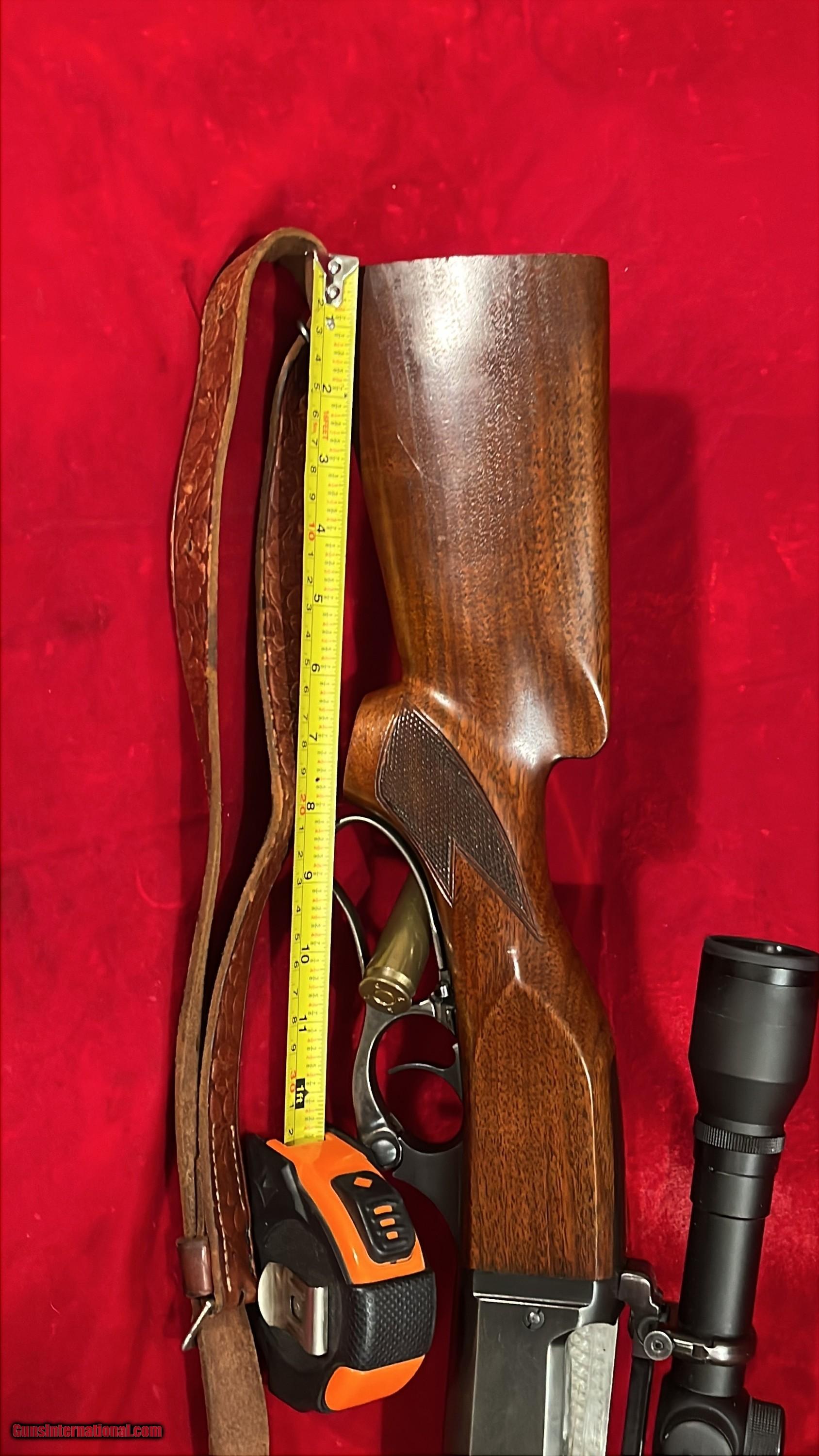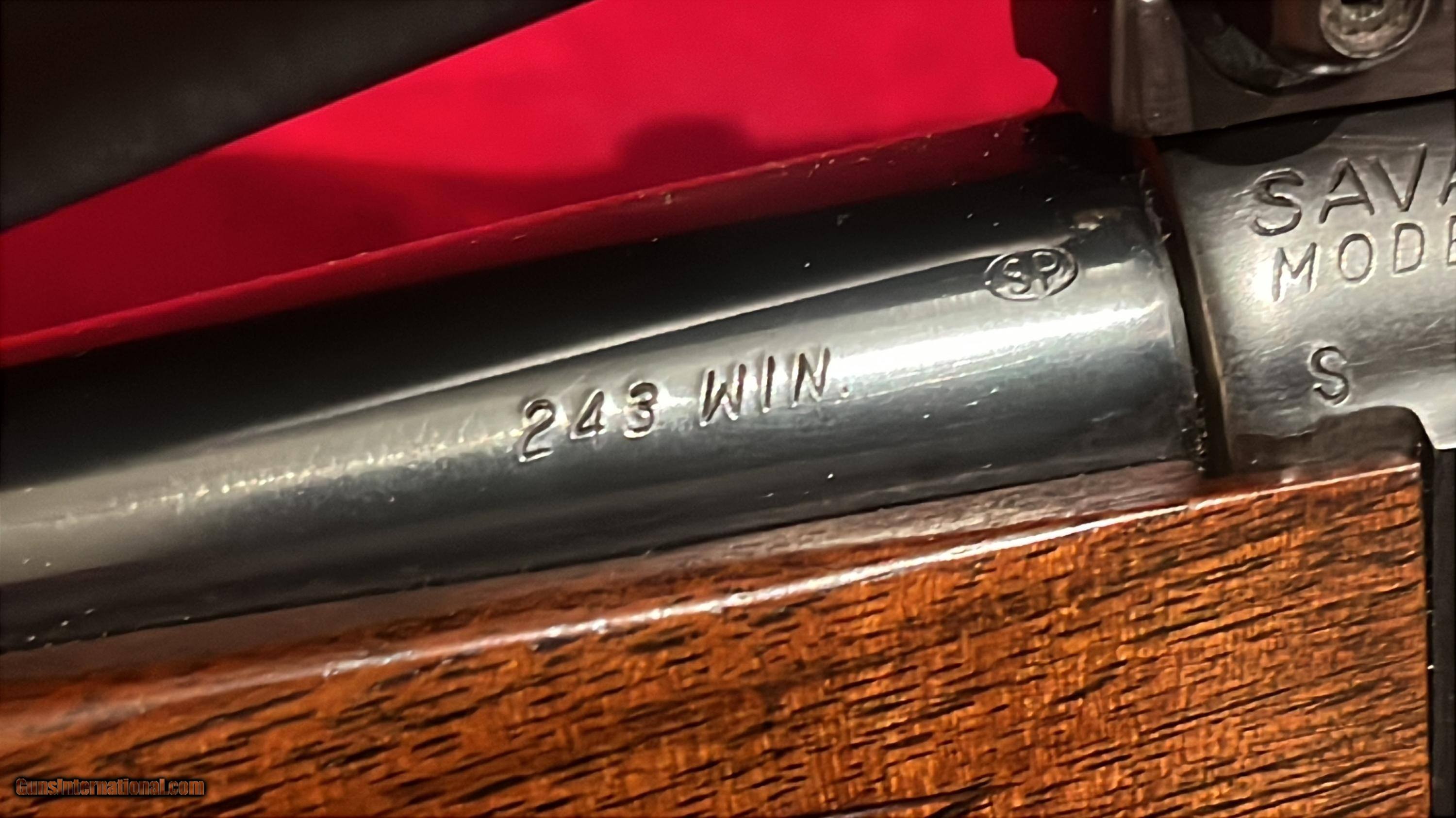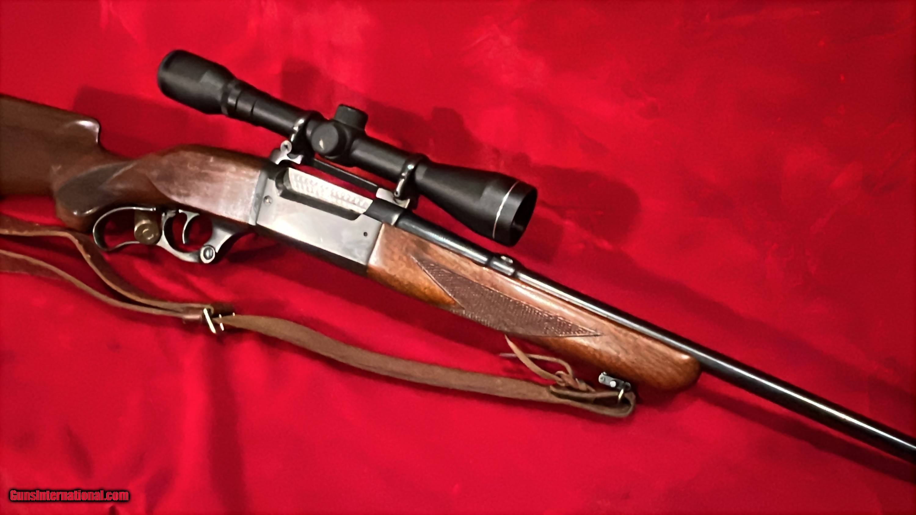 Up for sale we have a Savage Model 99F Lever-Action Rifle in the .243 Winchester caliber. This rifle maintains a very high percentage of its finish, above 90%. This rifle has a 22 inch barrel with a 13clean bore. This rifle is fitted with the original stock and sights. The action is smooth and functions as it should. The triggerpull is crisp. It is missing both the recioil pad and grip cap as shown. With no reecoil plate or pad the stock LOP measures twelve point 5 i (12,.5) nches so a nice pad would get you to 13.5 which factory or standard sized.
