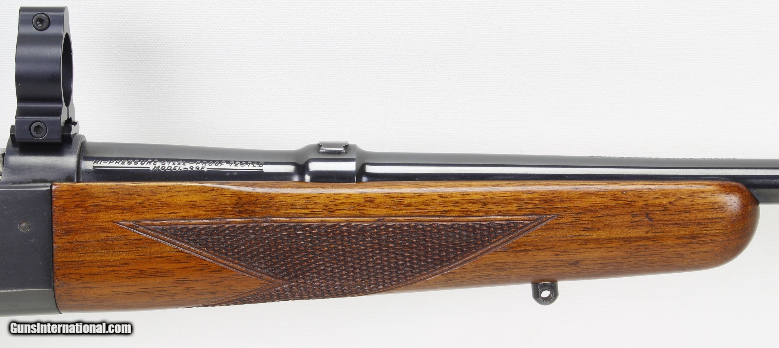 Description: Savage Model 99H Rifle in .358 Win. SN #918674. Mfg. in 1956. LOP 12 5/8". 22" barrel with an excellent bore. Blued barrel and receiver are in very good condition, rated at 90%-95% with some light handling marks and wear. The lever still shows some of the original Case Coloring. The checkered pistol grip stock and forend have been re-finished at some point and is in excellent condition. Front and rear sights have been removed. Includes 1" rings and bases for a scope. Round counter. Cocking indicator. Jeweled bolt. Noshoc rubber recoil pad. SOLD Curio/Relic: Yes Manufacturer: Savage Model: 99H Serial Number: 918674 Barrel Length: 22 Caliber Info: .358 Win. Condition: VG Metal Condition: VG Wood Condition: Excellent Bore Condition: Excellent Action: Lever LOP: 12 5/8 Finish: Blue / Case Manufacture Date: 1956 |