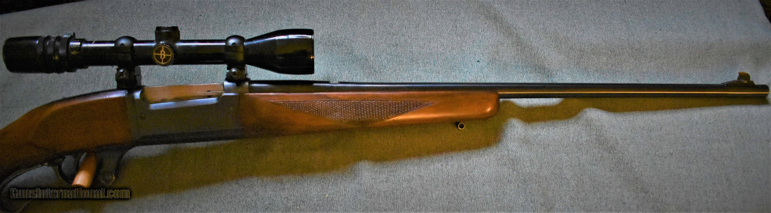 Description: Savage model 99R in the hard to find 250-3000 Savage. Built in 1955, this rifle is factory drilled and tapped for scope mounting or tang sight mounting. Other features include a lever safety, cartridge counter,hand checkered walnut stock and forend, jeweled bolt,and steel buttplate. The 24" barrel has a mint bore. The rifle has a unique Bushnell Scopechief 3x9 scope with a dual reticle that has crosshairs and a pop up European style post.The rifle is in excellent condiiton retaining 98% of the original wood and blue finishes. The stock is sound with no cracks or damage. This is a classic 99 in a great caliber for deer or antelope. C&R eligible. SOLD Curio/Relic: Yes Rifle Caliber: .250-3000 Savage Manufacturer: Savage Model: 99R Serial Number: 859368 Barrel Length: 24 Condition: Excellent Metal Condition: Excellent Wood Condition: Excellent Bore Condition: mint Barrel Type: Savage Hi Pressure Steel Action: Lever Butt Pad: FFactory Steel Buttplate Manufacture Date: 1855 |